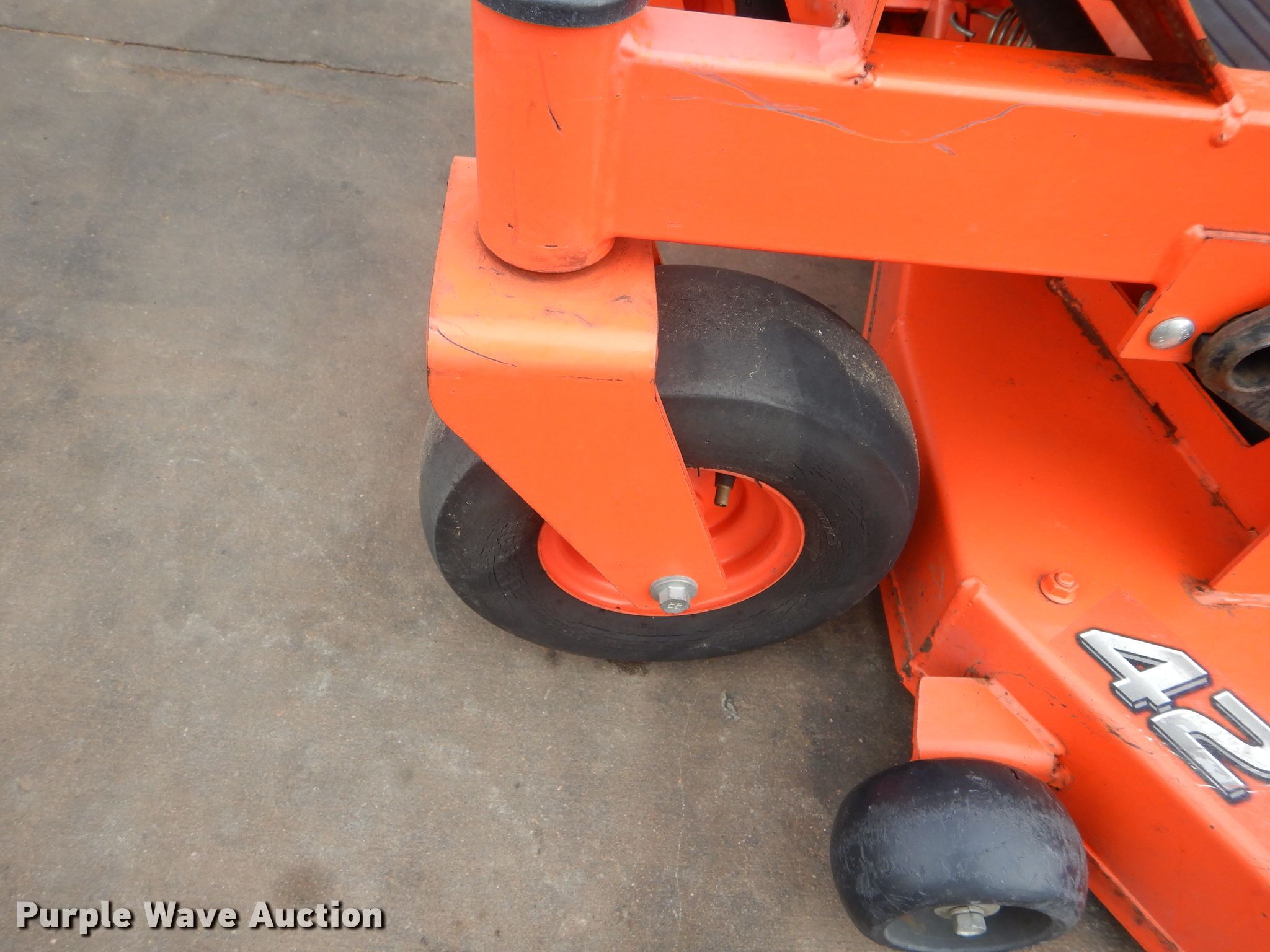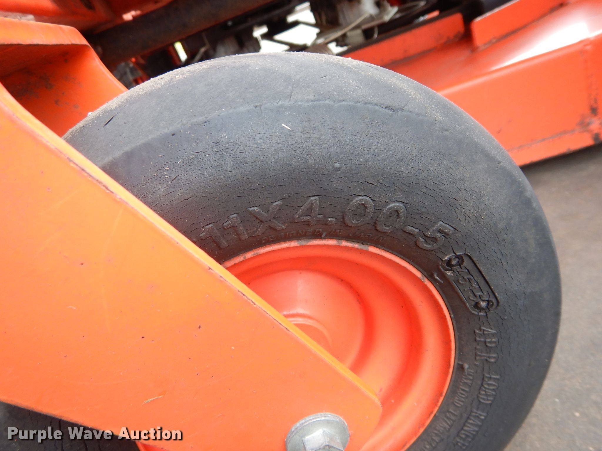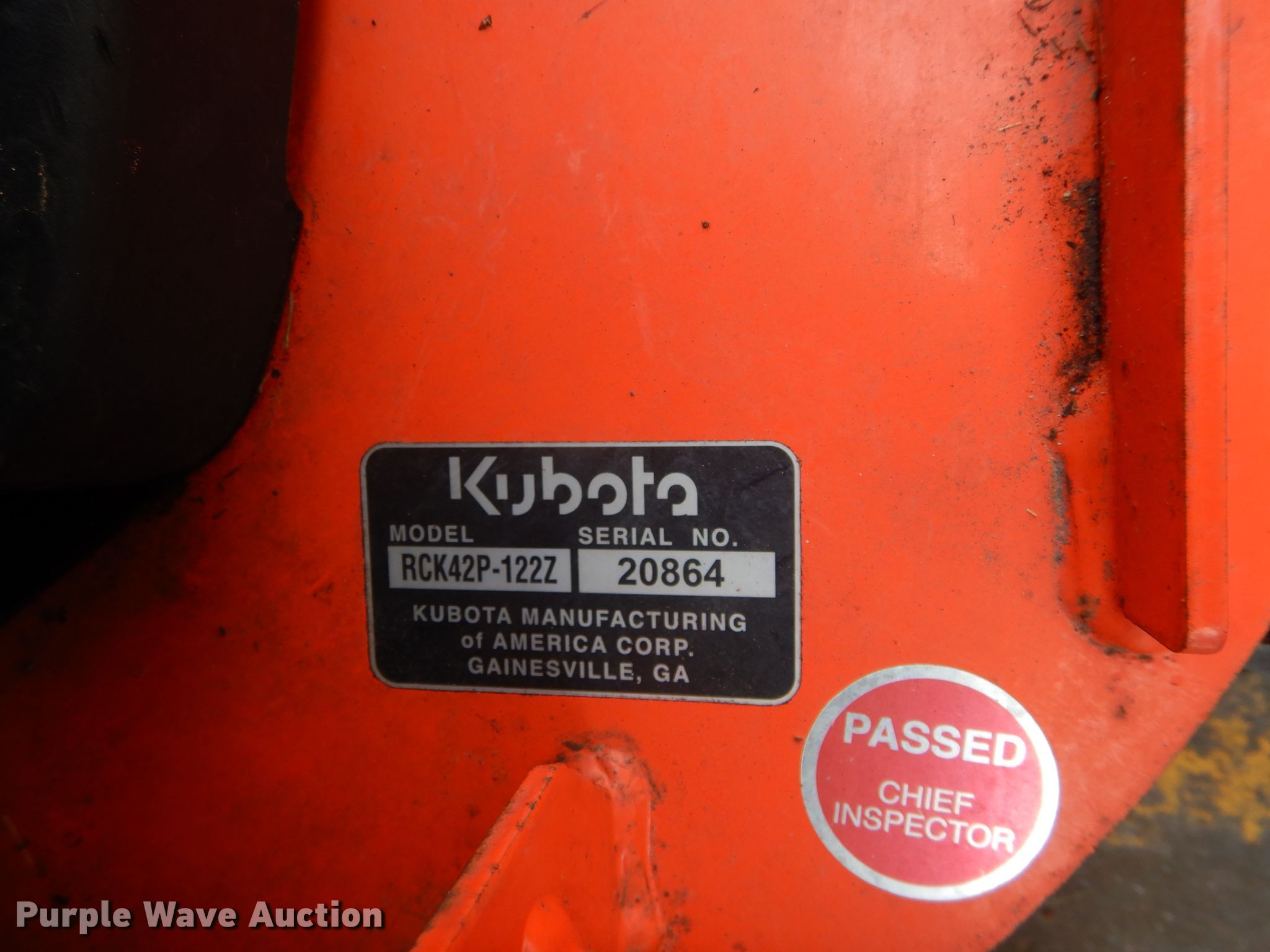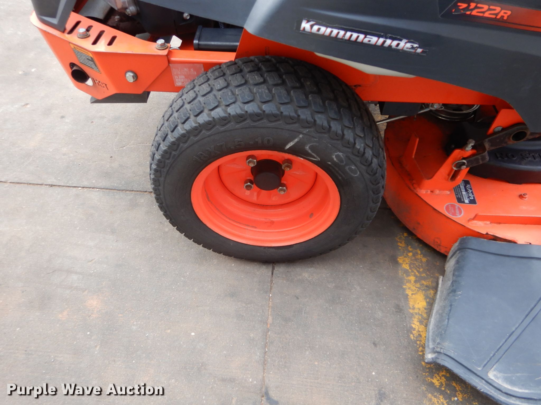 Purple Wave is selling a used Lawn Mower in Oklahoma. This item is a Kubota Z122RKW ZTR lawn mower with the following: 42" cut, Kawasaki FR651V two cylinder gas engine, 21.5 HP, Hydrostatic transmission, ROPS, Kubota RCK42P-122Z mower deck, Serial 20864, 11x4.00-5 front tires, 18x7.50-10 rear tires, Serial 20099