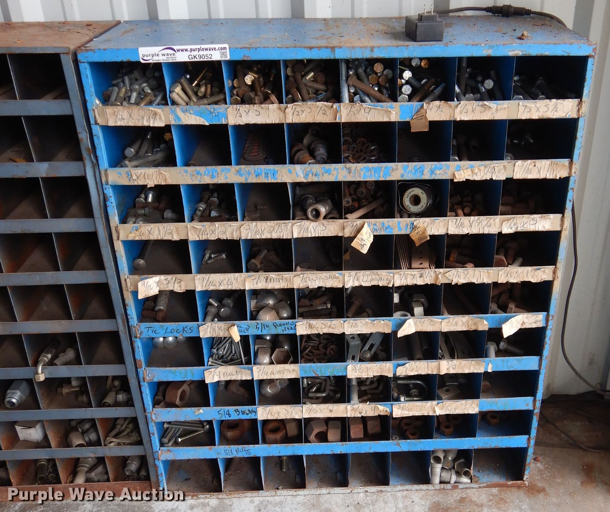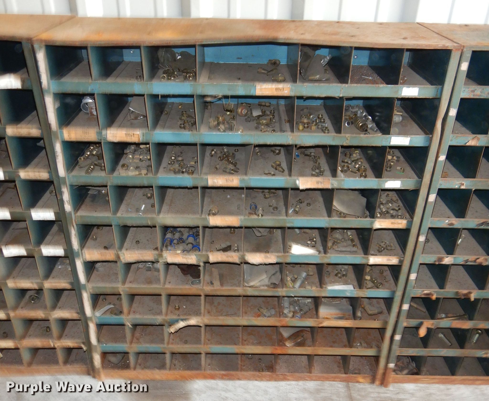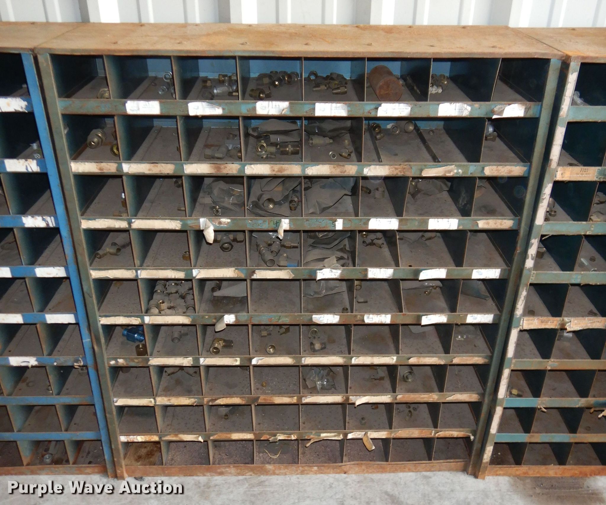 Purple Wave is selling a used Shelving and Storage in Oklahoma. This item is a Approximately 10 bolt bins with the following: 25"W x 12"D x 42"H, Contents included