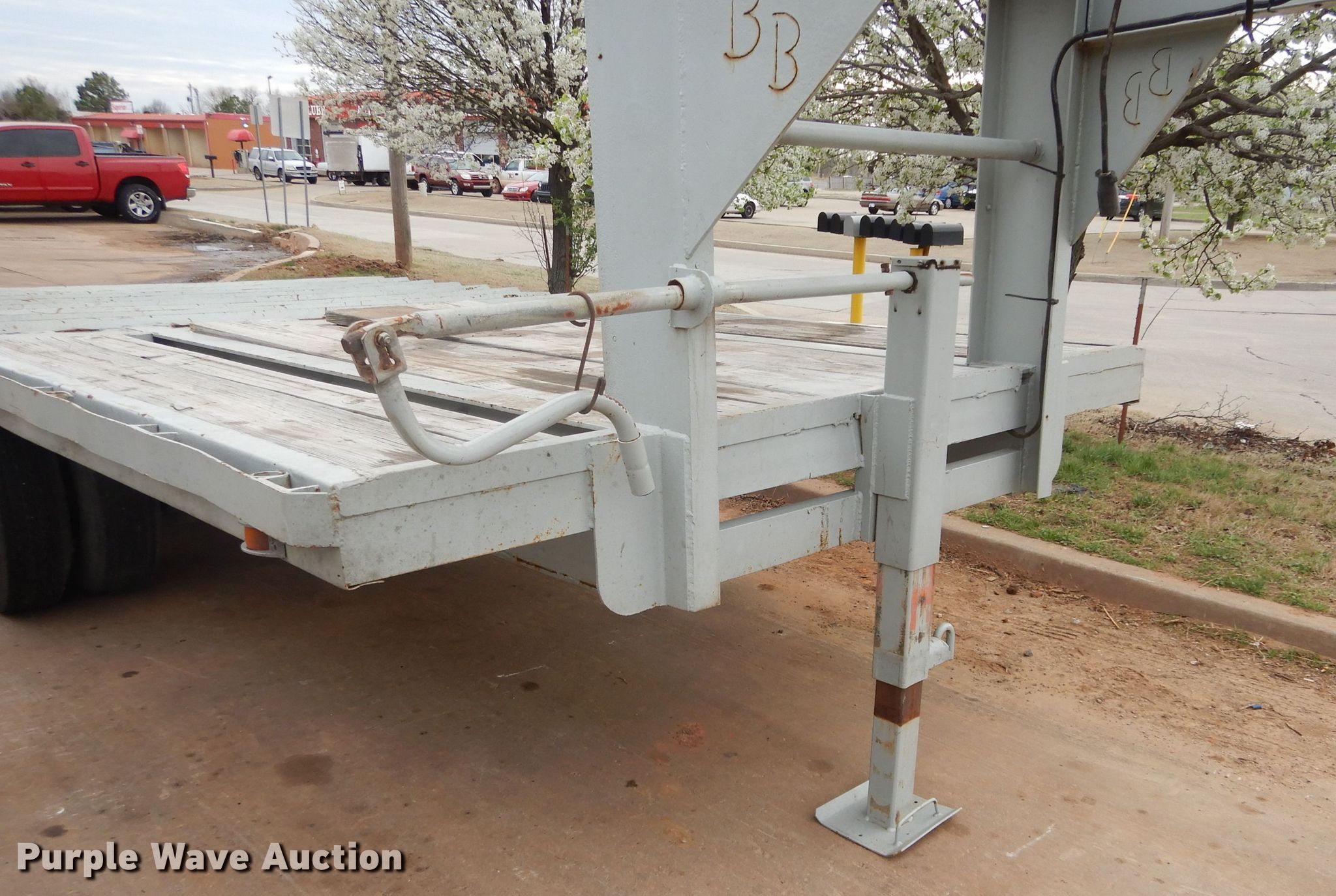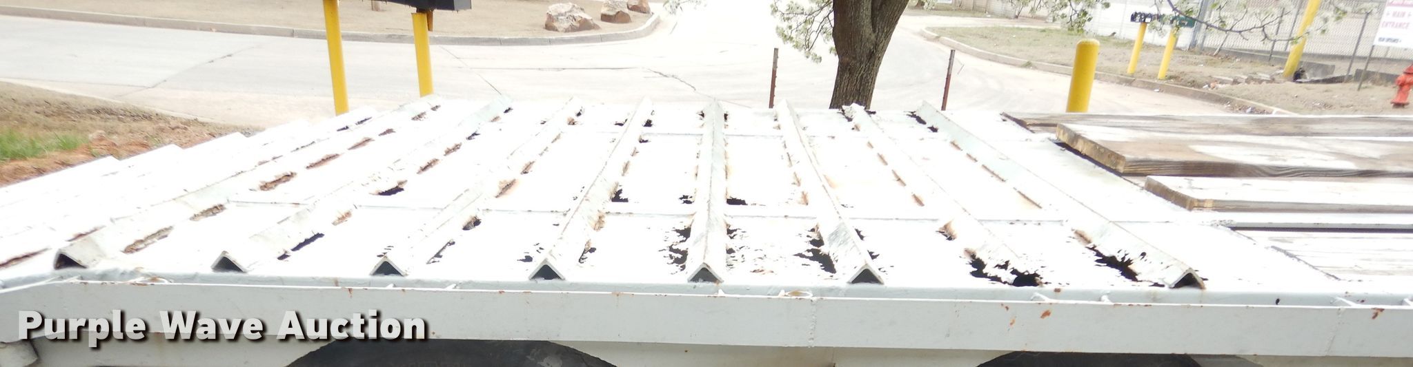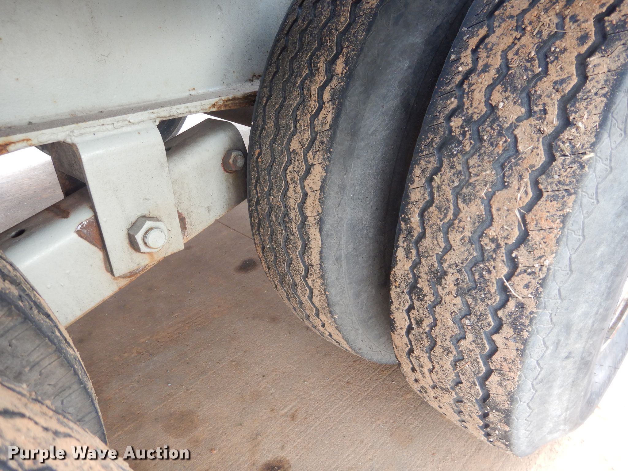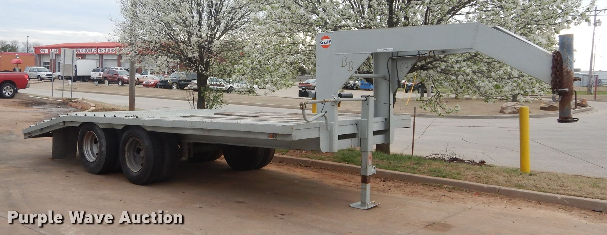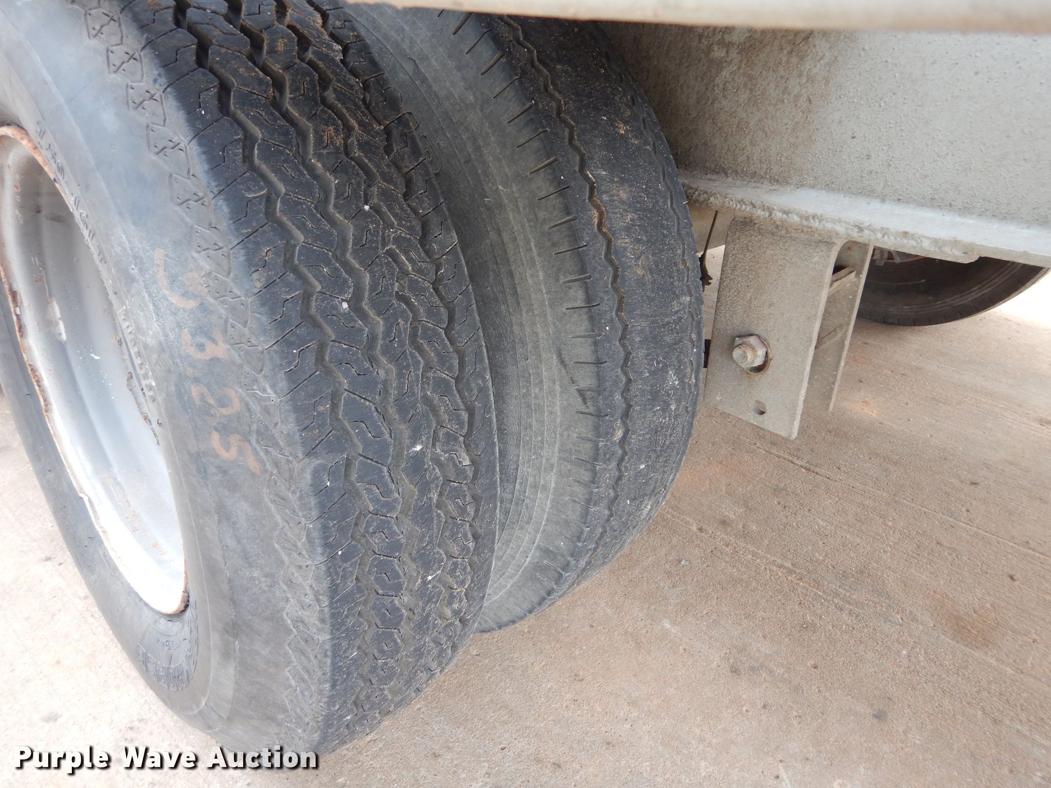 Purple Wave is selling a used Equip. Trailer in Oklahoma. This item is a Ranco equipment trailer with the following: 26'L x 94"W overall, 19'L x 94"W deck, 5' tail length, Steel and wood deck, Single leg landing gear, Spring suspension, Electric brakes, Tandem axle, 7.50-16LT tires