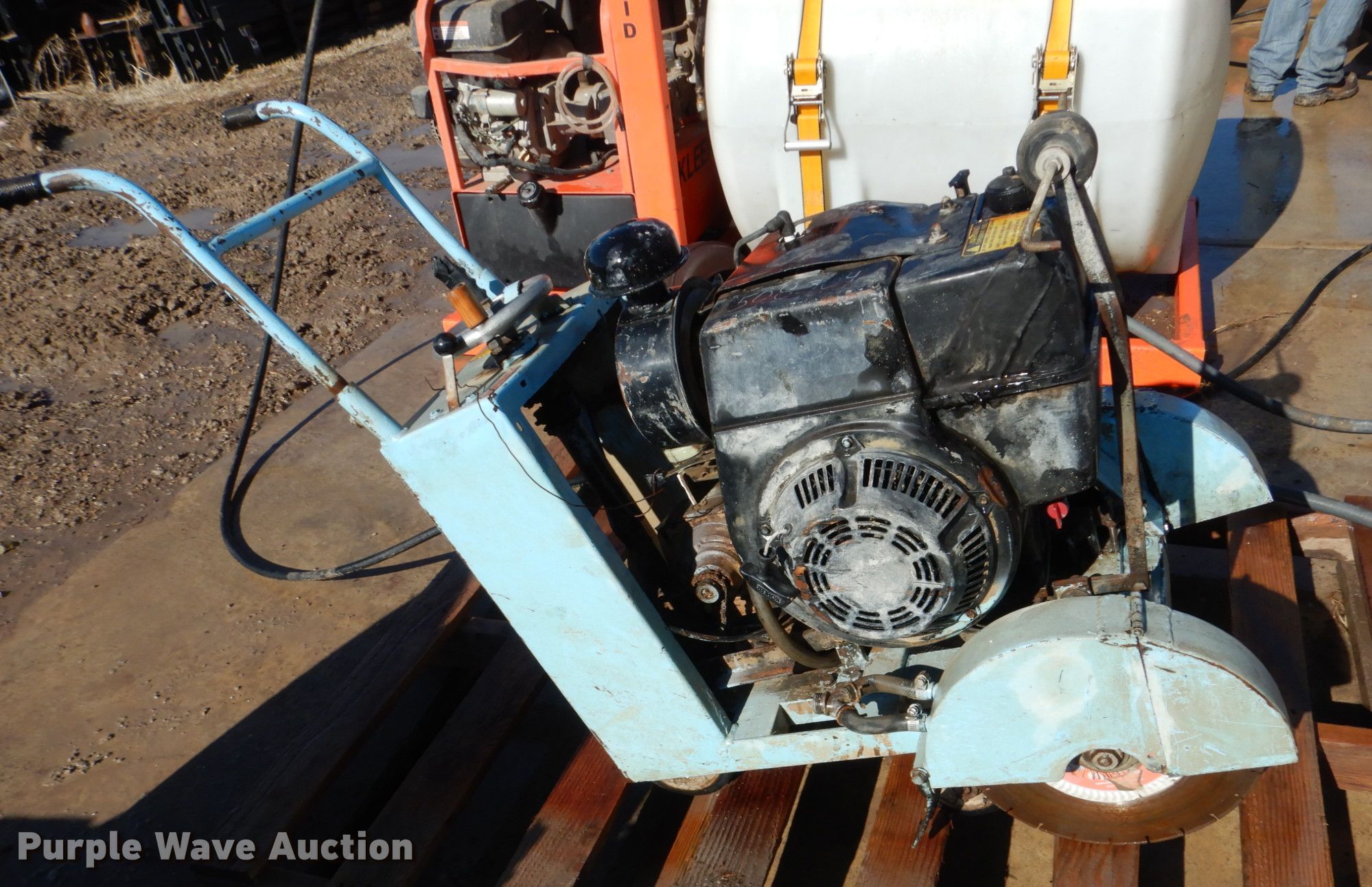 Purple Wave is selling a used Concrete Equip. or Acces. in Kansas. This item is a Target PAC II 145DM concrete saw with the following: Kohler gas engine, 14" blade, Water hookups