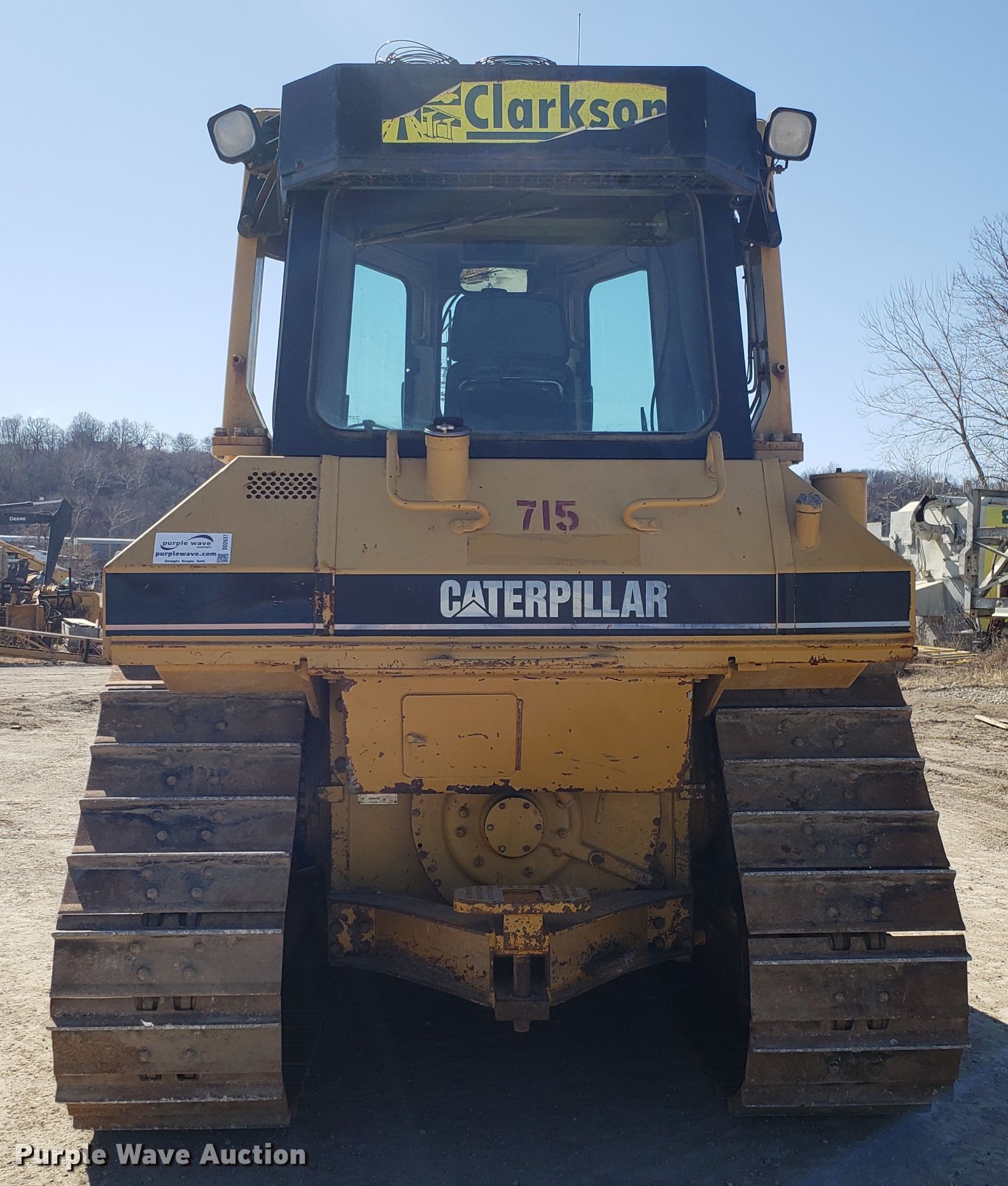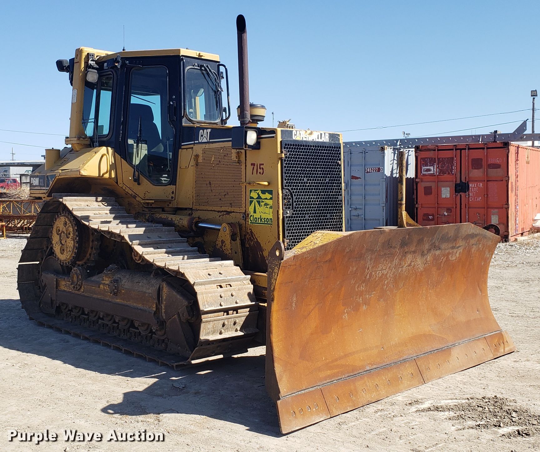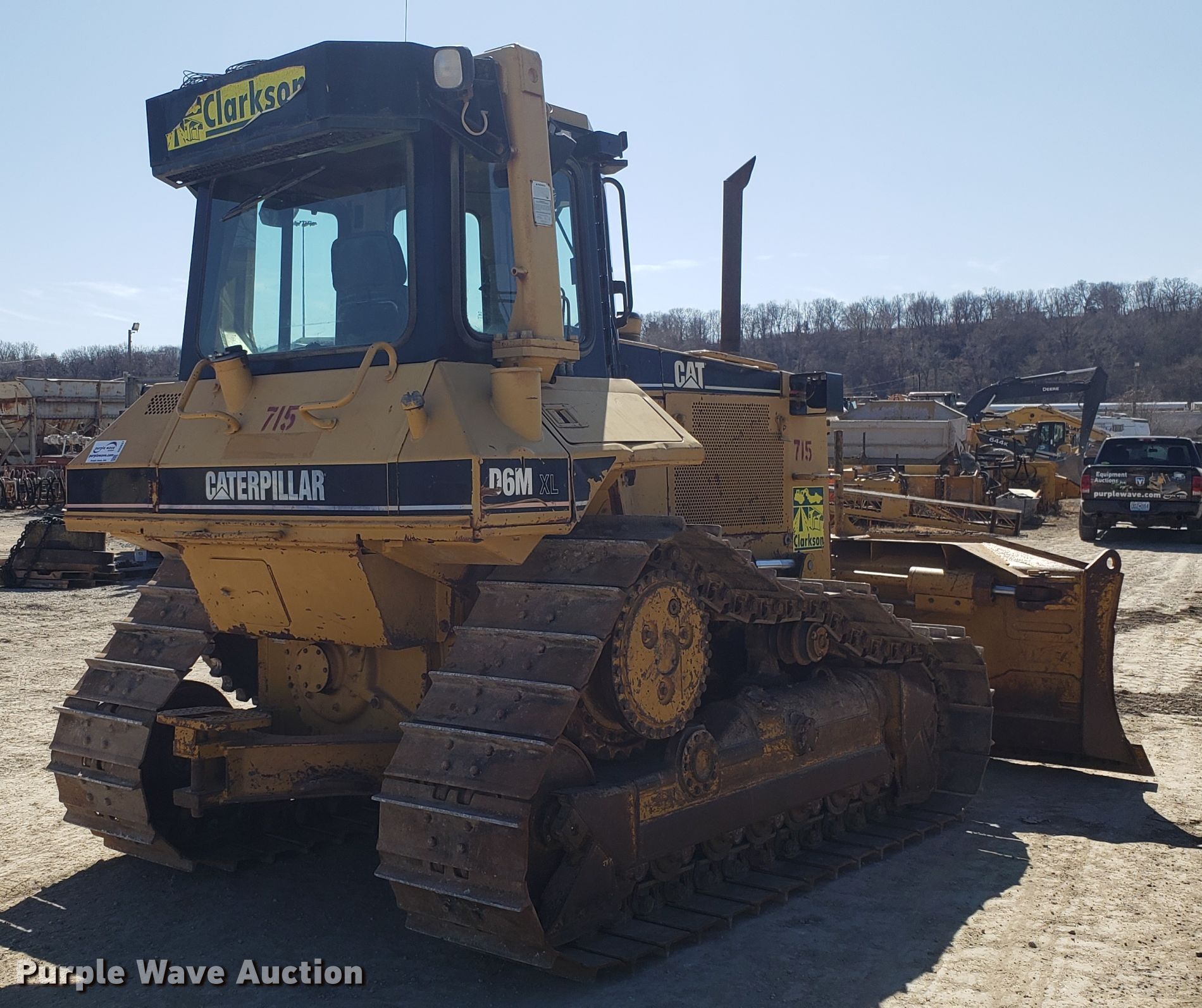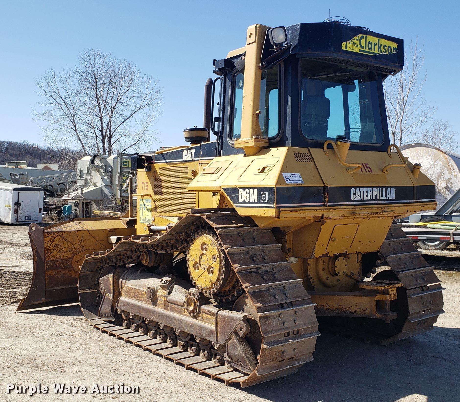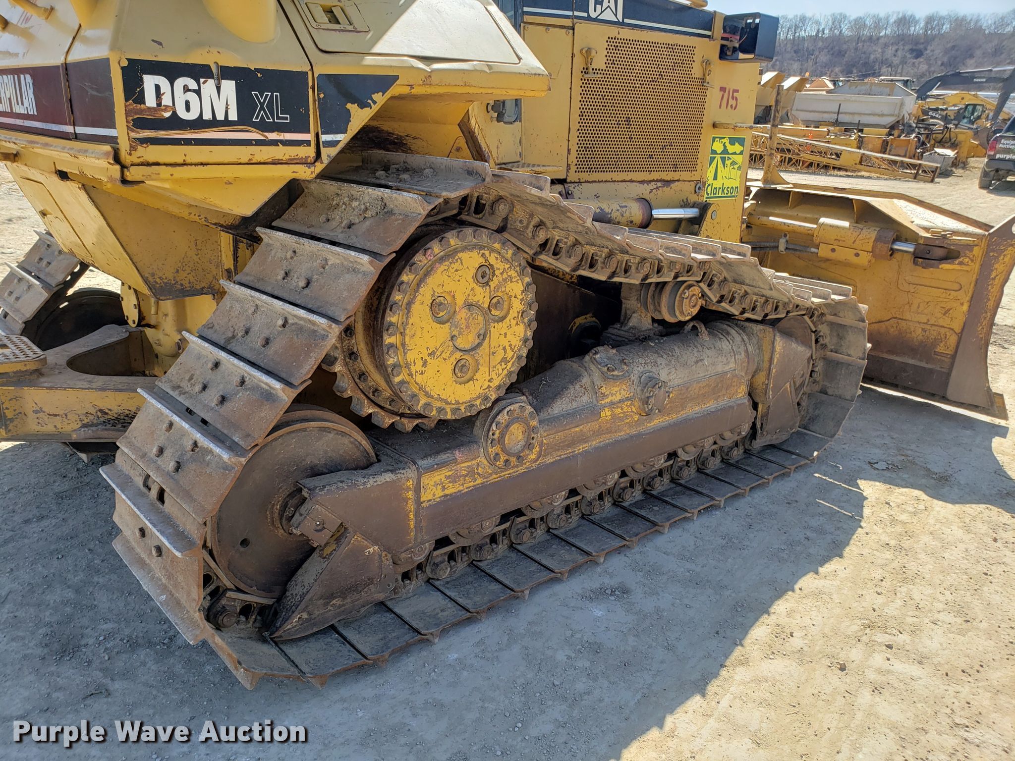 1999 Caterpillar D6M XL dozer. 19,107 hours on meter, Caterpillar six cylinder diesel engine, Powershift transmission 3F-3R gears, EROPS AC and heat, TopCon GPS wiring, 129"W six-way dozer blade, Hydraulic ripper control valve, Seven bottom rollers, 24"W single grouser track pads, View oil sample report , Serial 3WN01727, Unit# 715. Clarkson Construction Co.. 4133 Gardner Ave. Kansas City, MO 64120