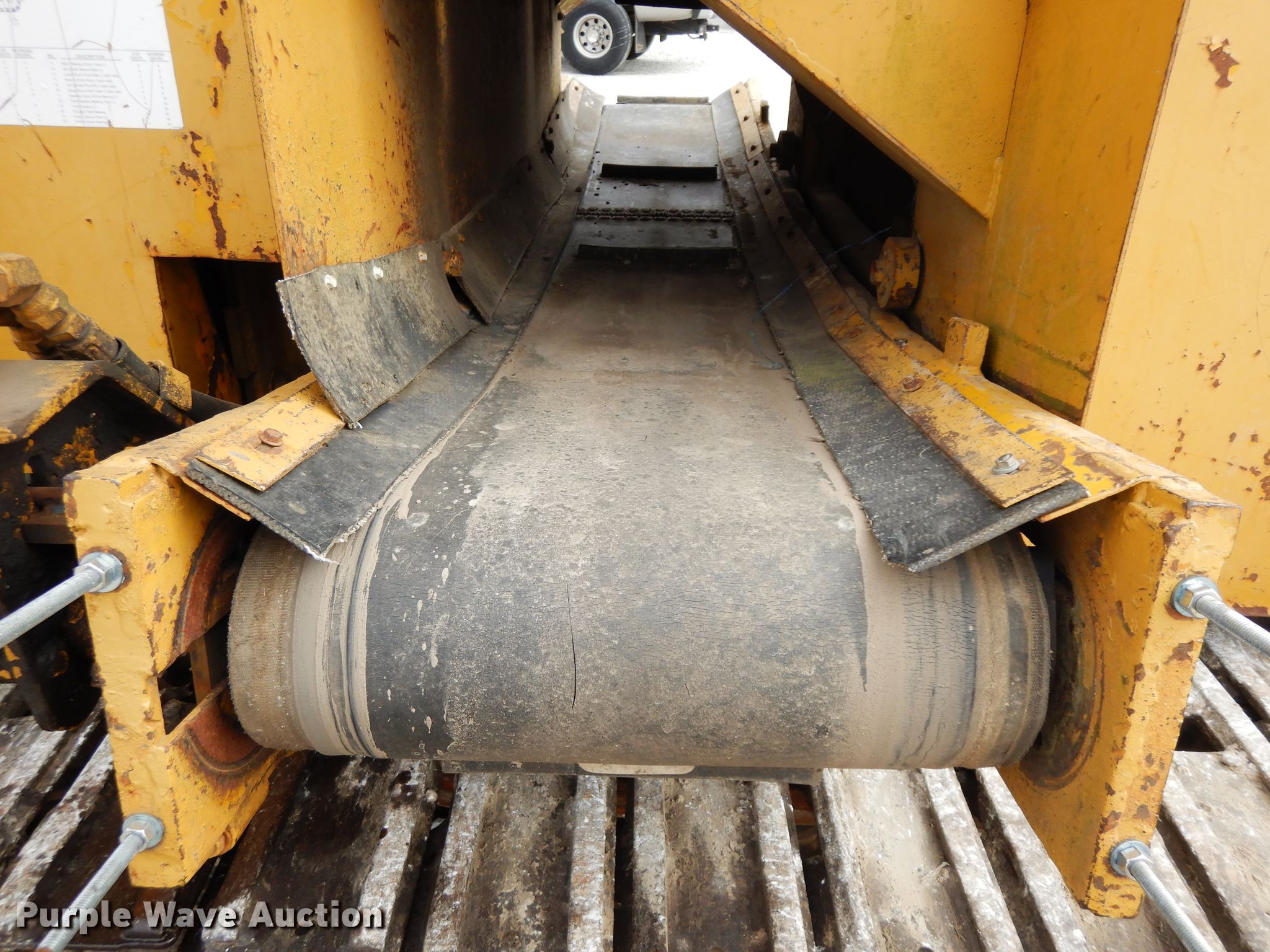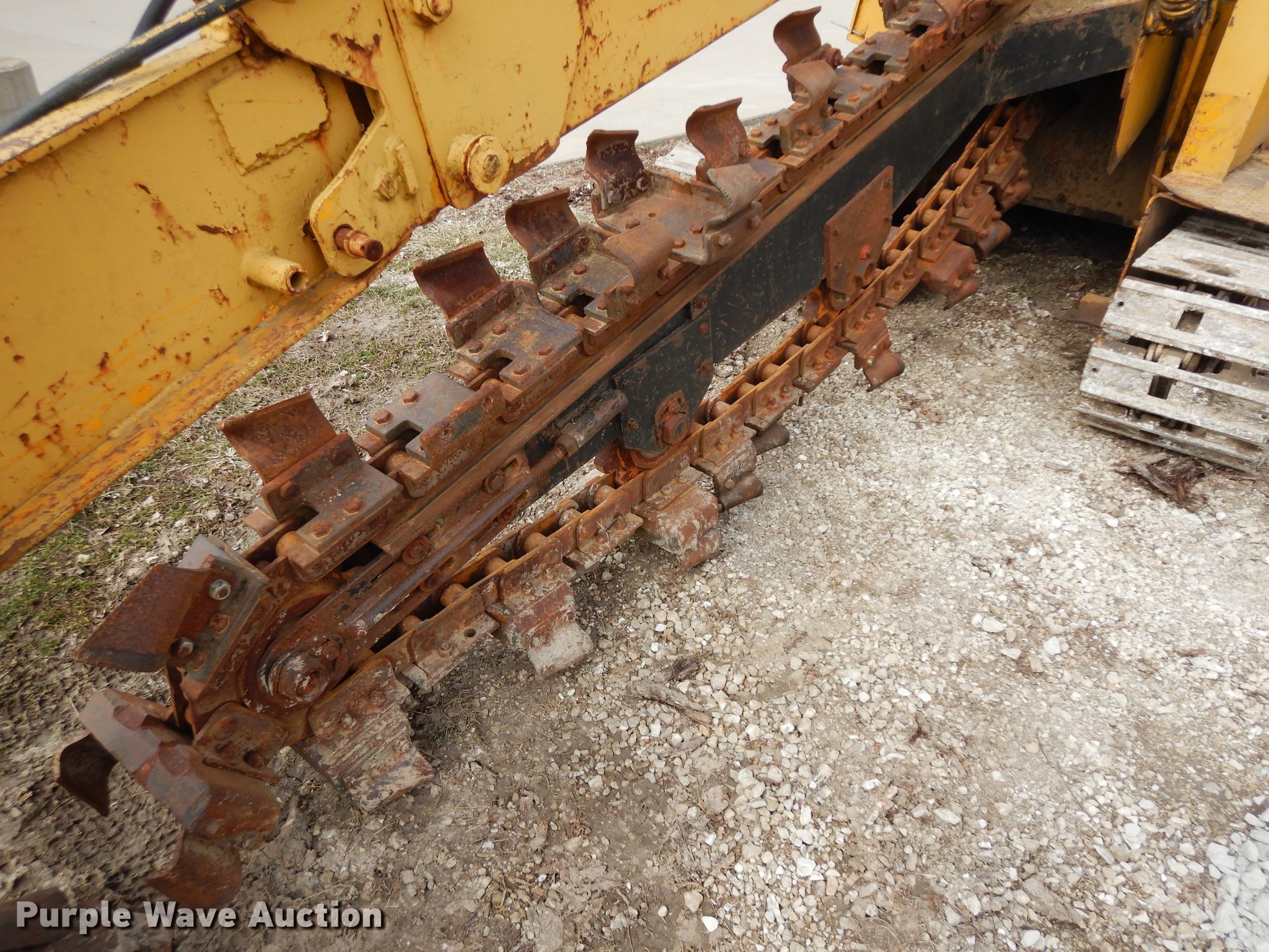 Purple Wave is selling a used Trencher or Rock Saw in Illinois. This item is a Vermeer T600B trencher with the following: 8,904 hours on meter, Detroit Diesel 353 three cylinder diesel engine, 75 HP, Manual transmission, 4F-2R gears, 11'L trencher boom, 12" trencher cutting width, 96"L x 18"W conveyor, 12"W tile boot, 18"W tracks, Serial 741