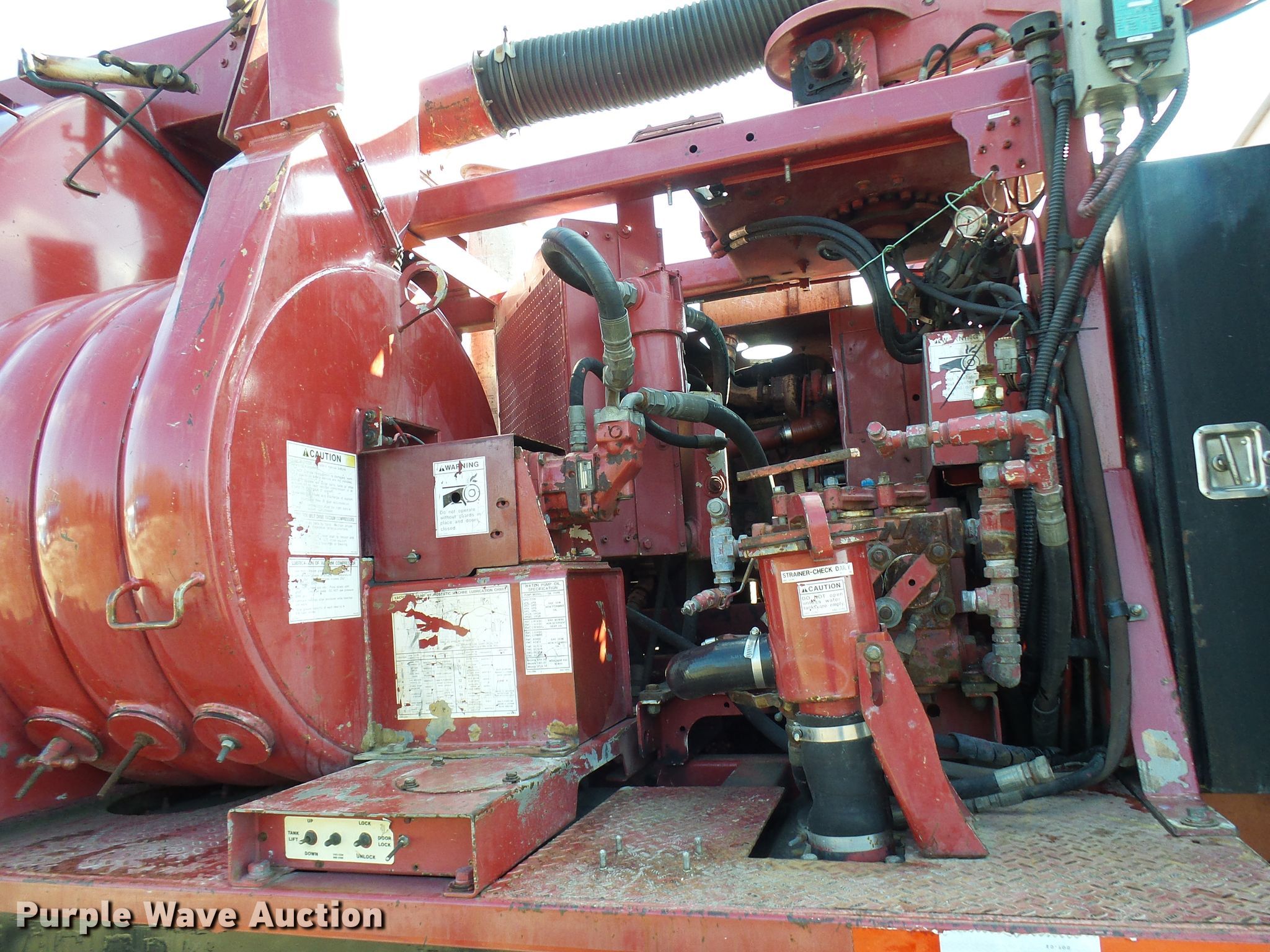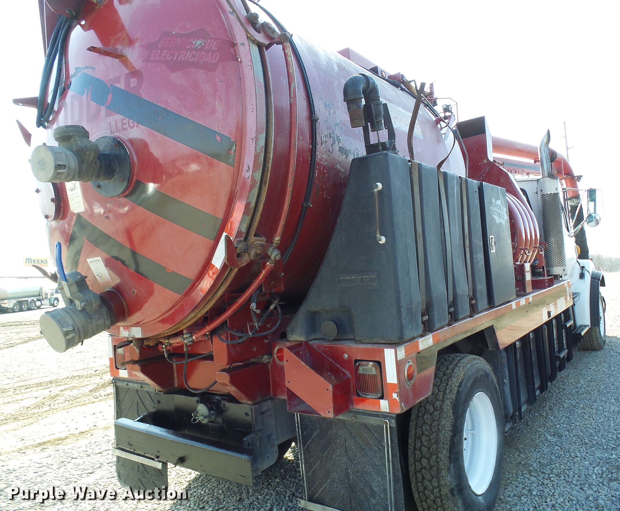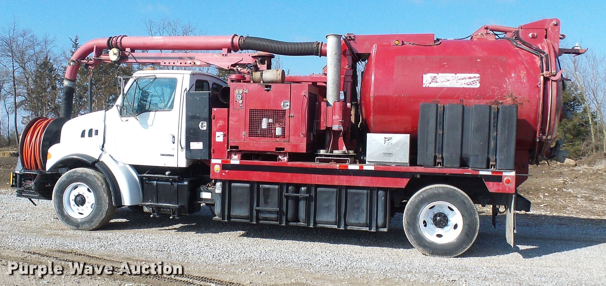 Purple Wave is selling a used Vacuum Truck in Missouri. This item is a 2004 Sterling L-Line sewer rodder truck with the following: 35,838 miles on odometer, Caterpillar C7 7.2L L6 diesel engine, Automatic transmission, Single axle, Heat, Cruise, PTO, Vac Con bed, 2,500 gallon capacity, Deutz four cylinder diesel engine, Front hydraulic hose reel, Telescopic boom, Remote control, Spring suspension, Air brakes, 585/65R22.5 tires, 11R22.5 tires, GVWR 41,000 lbs