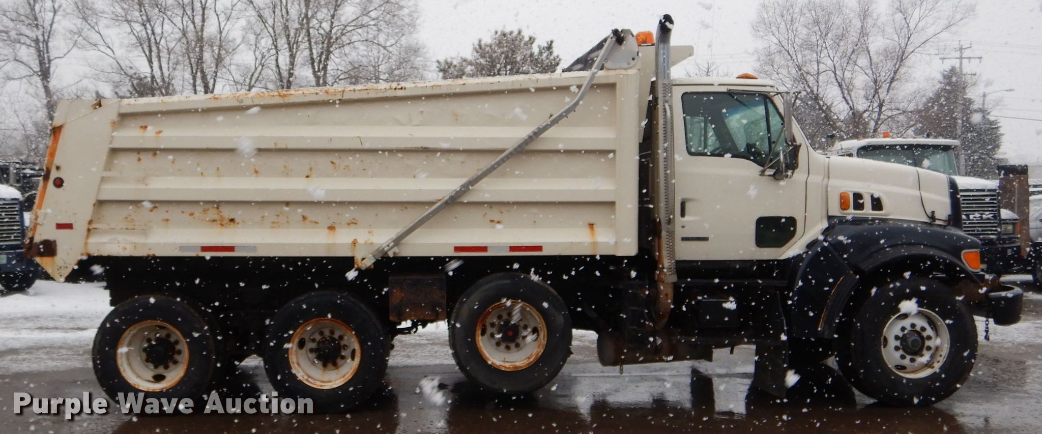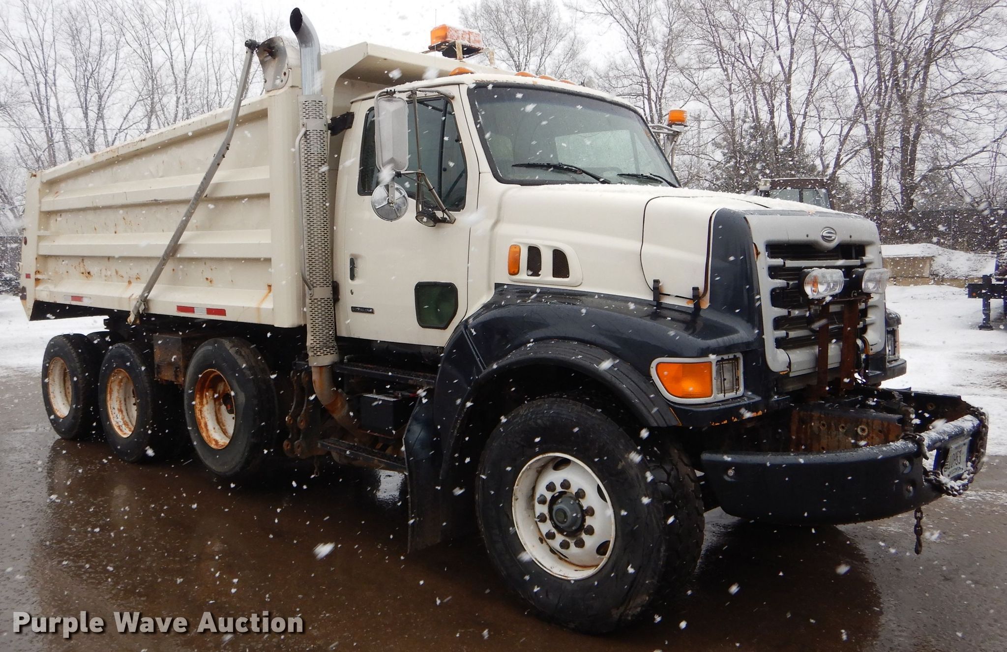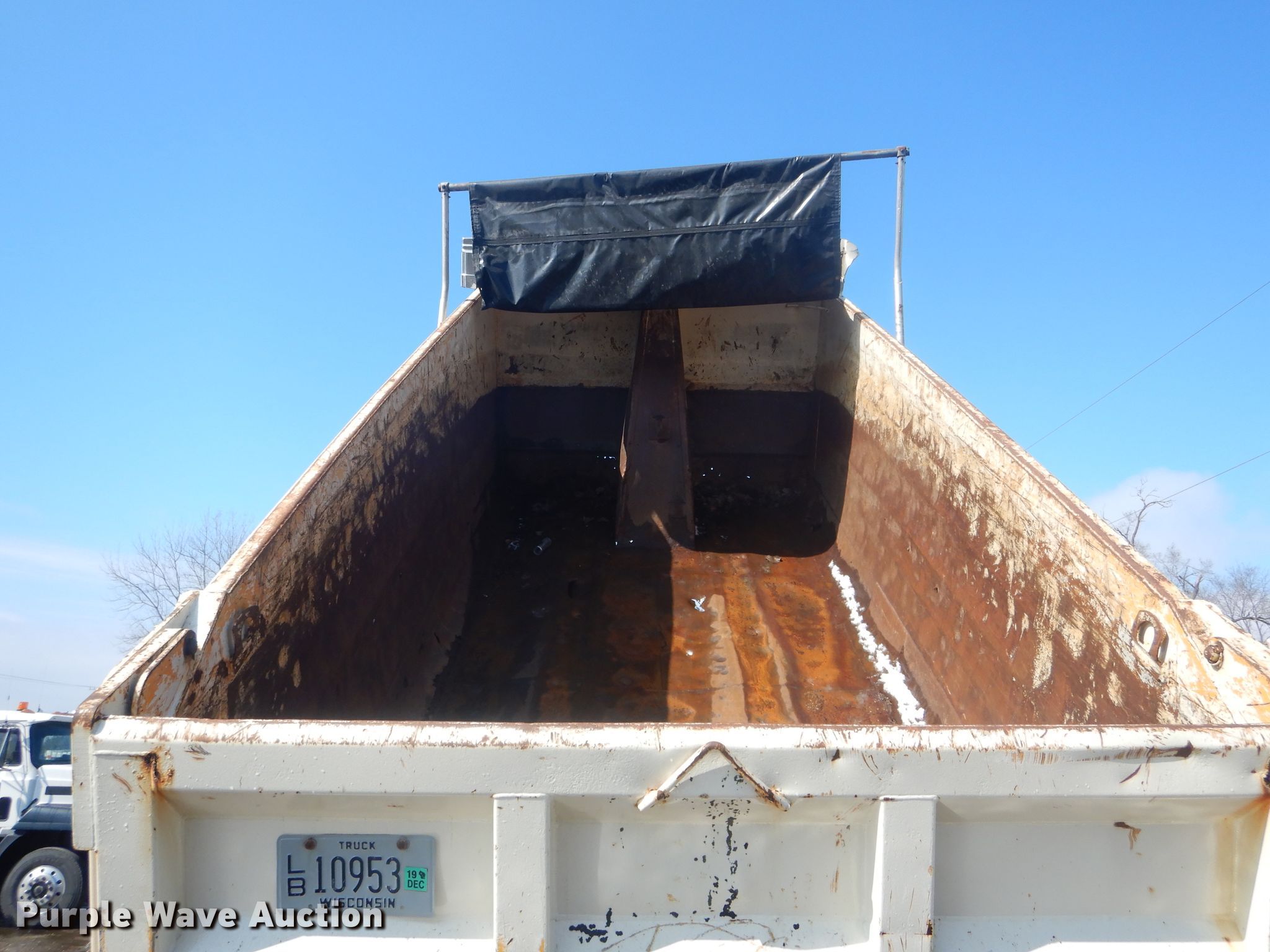 Purple Wave is selling a used Construction Dump Truck in Wisconsin. This item is a 2002 Sterling L-Line dump truck with the following: 379,693 miles on odometer, 17,343 hours on meter, Cummins 14.0L L6 diesel engine, Automatic transmission, Tandem axle, Inter-axle differential lock, AC and heat, Cruise, Power windows, PTO, 15'L x 96"W steel dump bed, 54" side height, Single ram hoist, Air operated end gate, Roll tarp, Camelback suspension, Air brakes, 222" wheelbase, 425/65R22.5 front tires, 11R22.5 rear tires, Oil leak