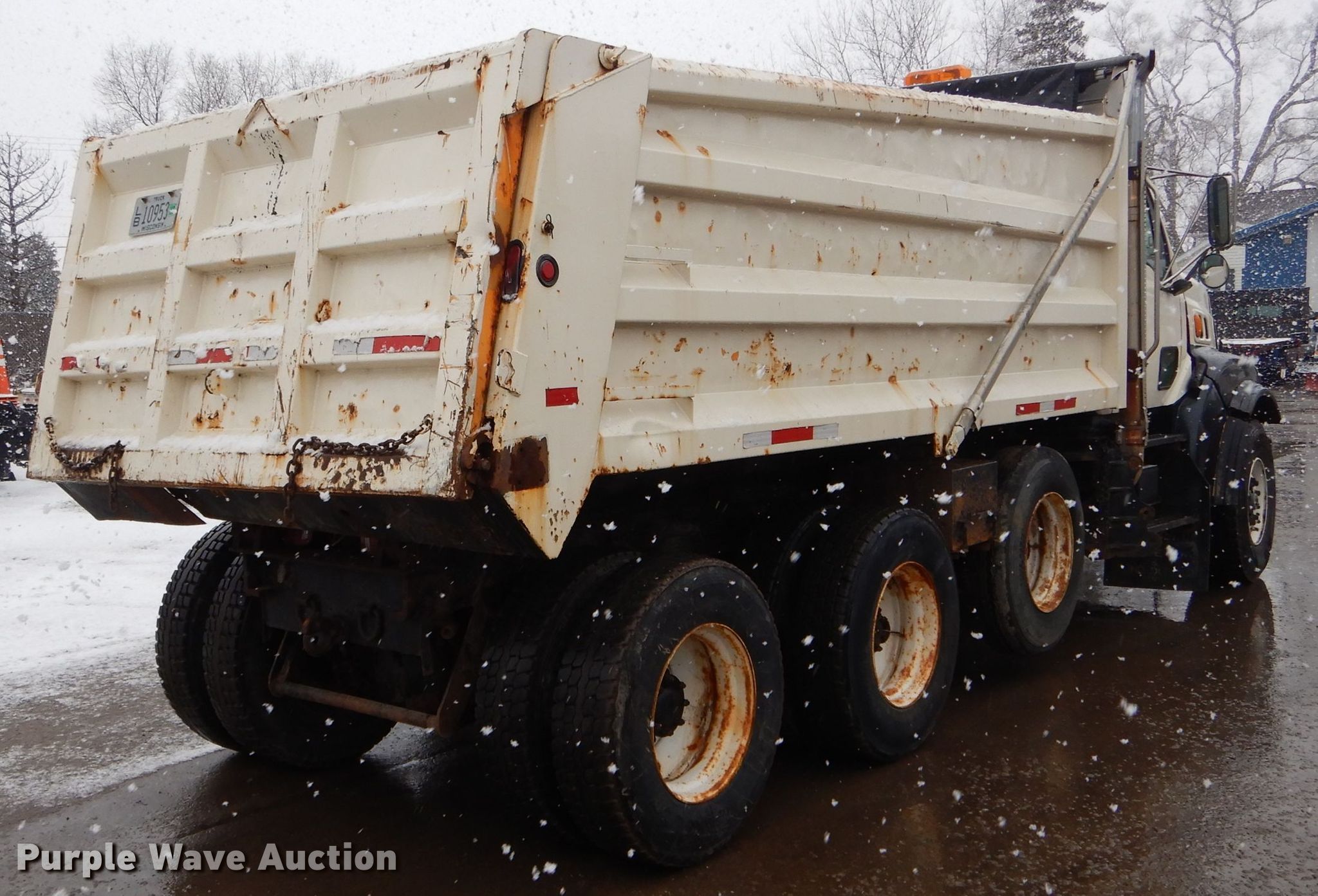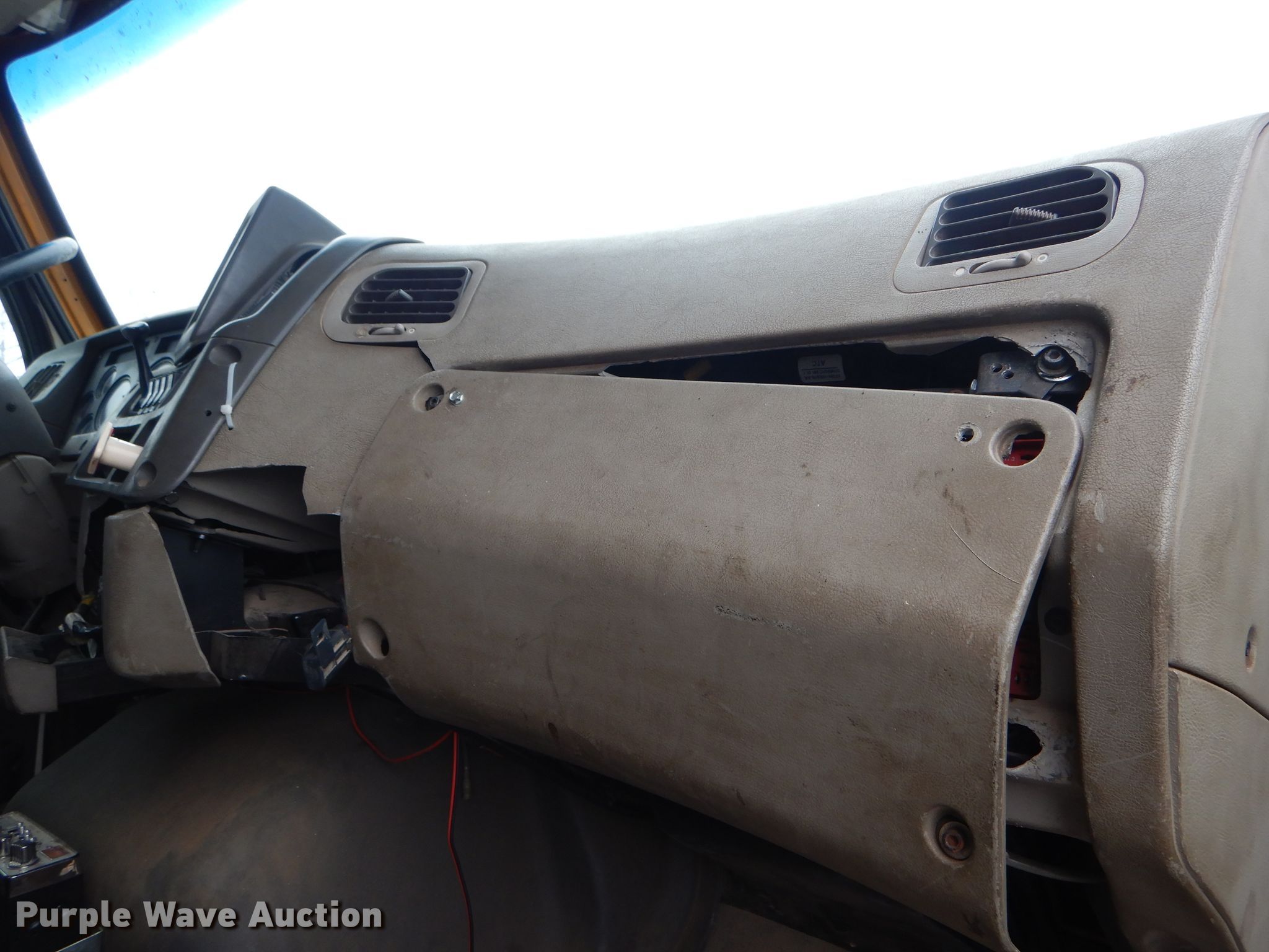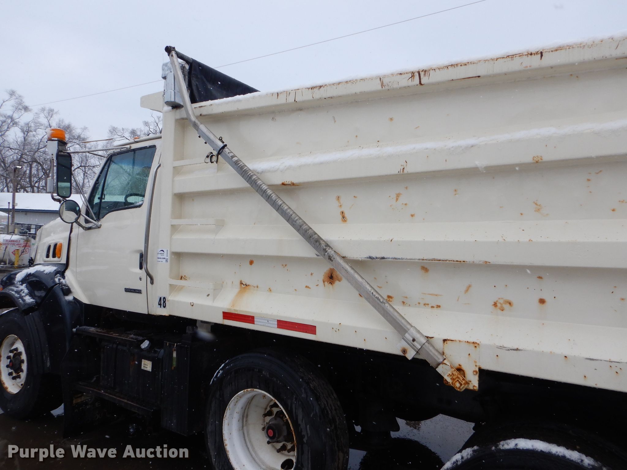 Purple Wave is selling a used Construction Dump Truck in Wisconsin. This item is a 2002 Sterling L-Line dump truck with the following: 379,693 miles on odometer, 17,343 hours on meter, Cummins 14.0L L6 diesel engine, Automatic transmission, Tandem axle, Inter-axle differential lock, AC and heat, Cruise, Power windows, PTO, 15'L x 96"W steel dump bed, 54" side height, Single ram hoist, Air operated end gate, Roll tarp, Camelback suspension, Air brakes, 222" wheelbase, 425/65R22.5 front tires, 11R22.5 rear tires, Oil leak