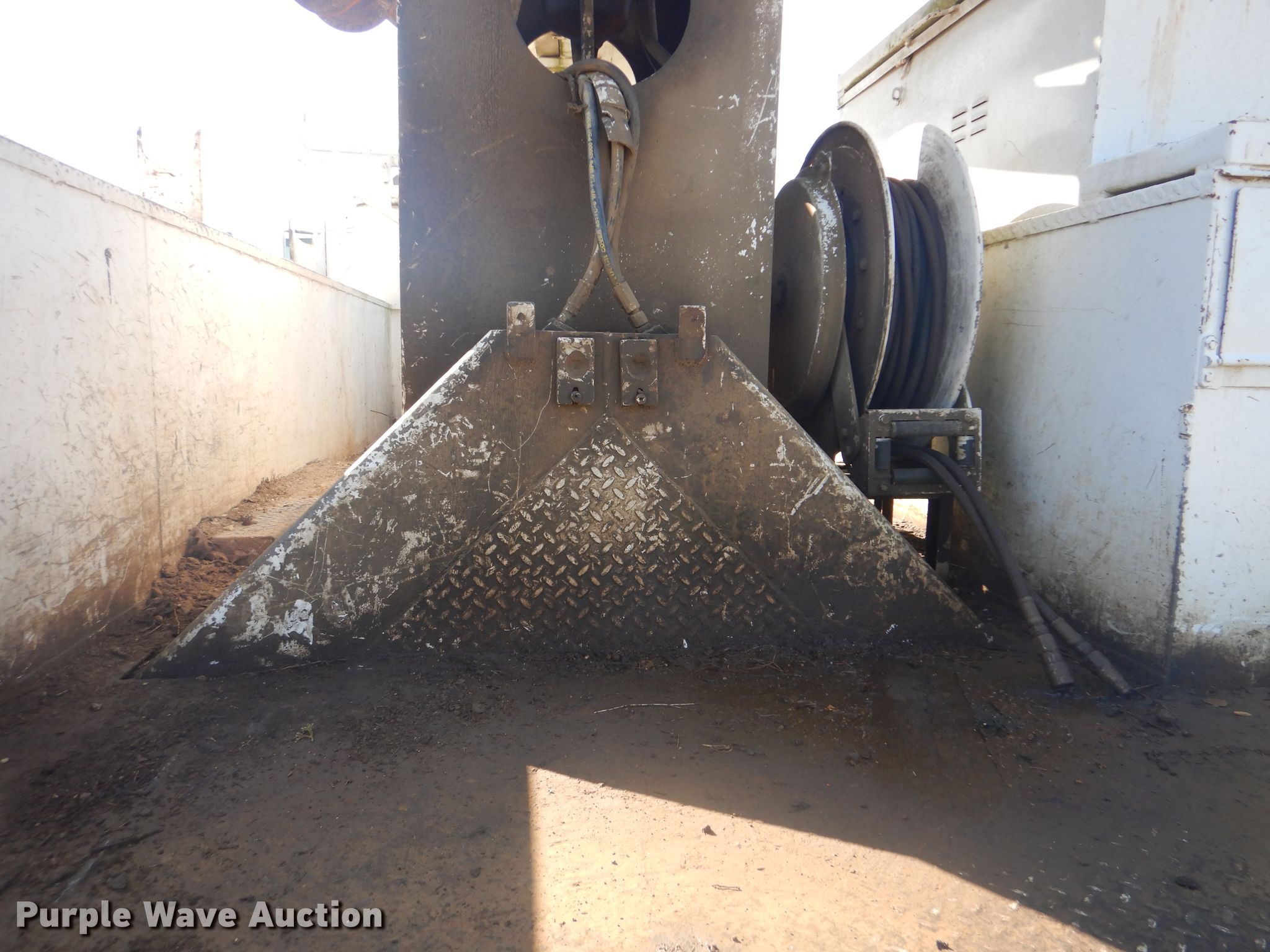 2002 International 4800 digger derrick truck. 126,588 miles on odometer, 13,618 hours on meter, International DT466E 7.6L L6 diesel engine, Eaton Fuller nine speed manual transmission, Single axle, AC and heat, PTO, Dakota Bodies 156-LB utility bed 14.5'L , Serial DB03716, Terex Commander Telelect articulating, insulated, telescopic boom Platform controls, Pole guide, 16' diameter auger, Spring suspension, Air brakes, 11R22.5 tires. Oklahoma title. Title has a lien that will be released following the close of the auction. Title distribution may be delayed up to 30 days from verification of funds. 1HTSEAAR72H408726. RVG Powerline. Highway 48 and Highway 3. Tupelo, OK 74572