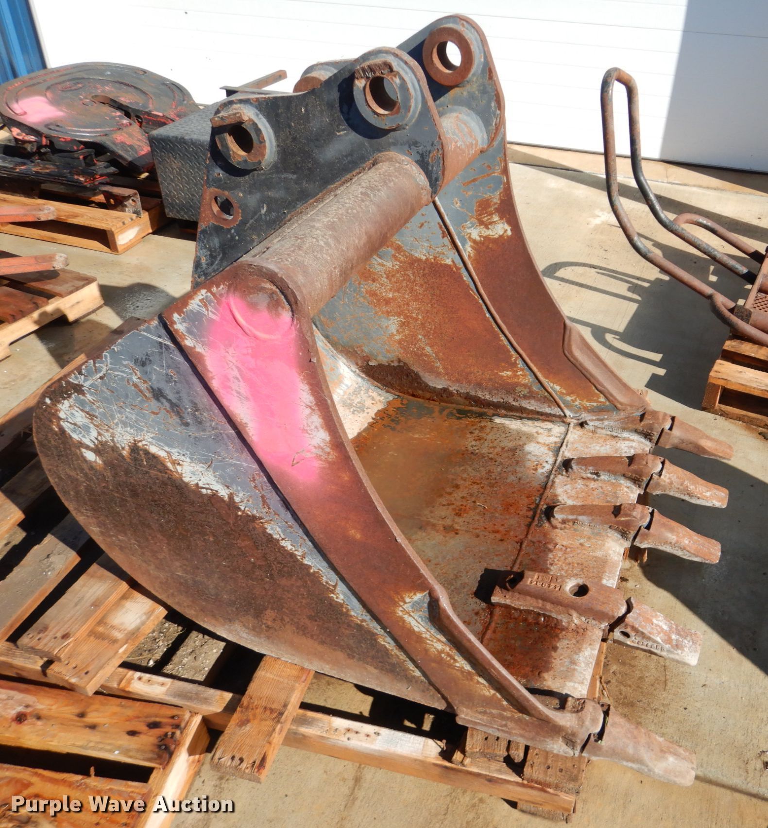 Purple Wave is selling a used Backhoe Attach. in Kansas. This item is a Ditch Witch 36"W offset bucket with the following: Weld-on cutting edge, (5) teeth