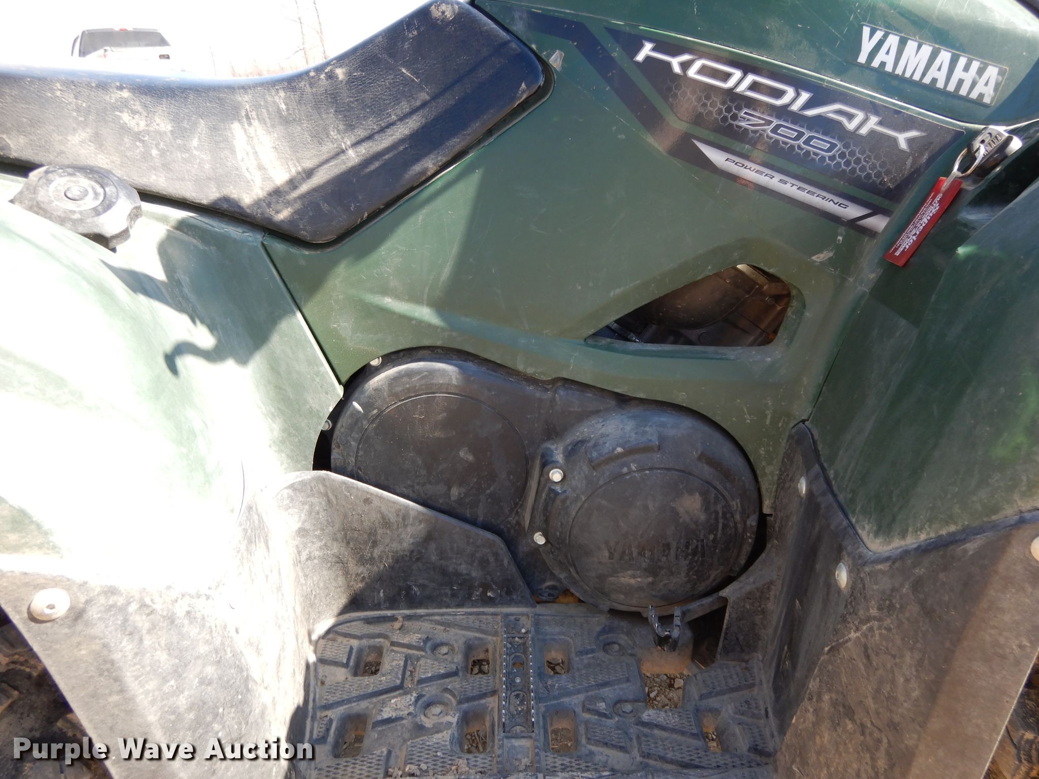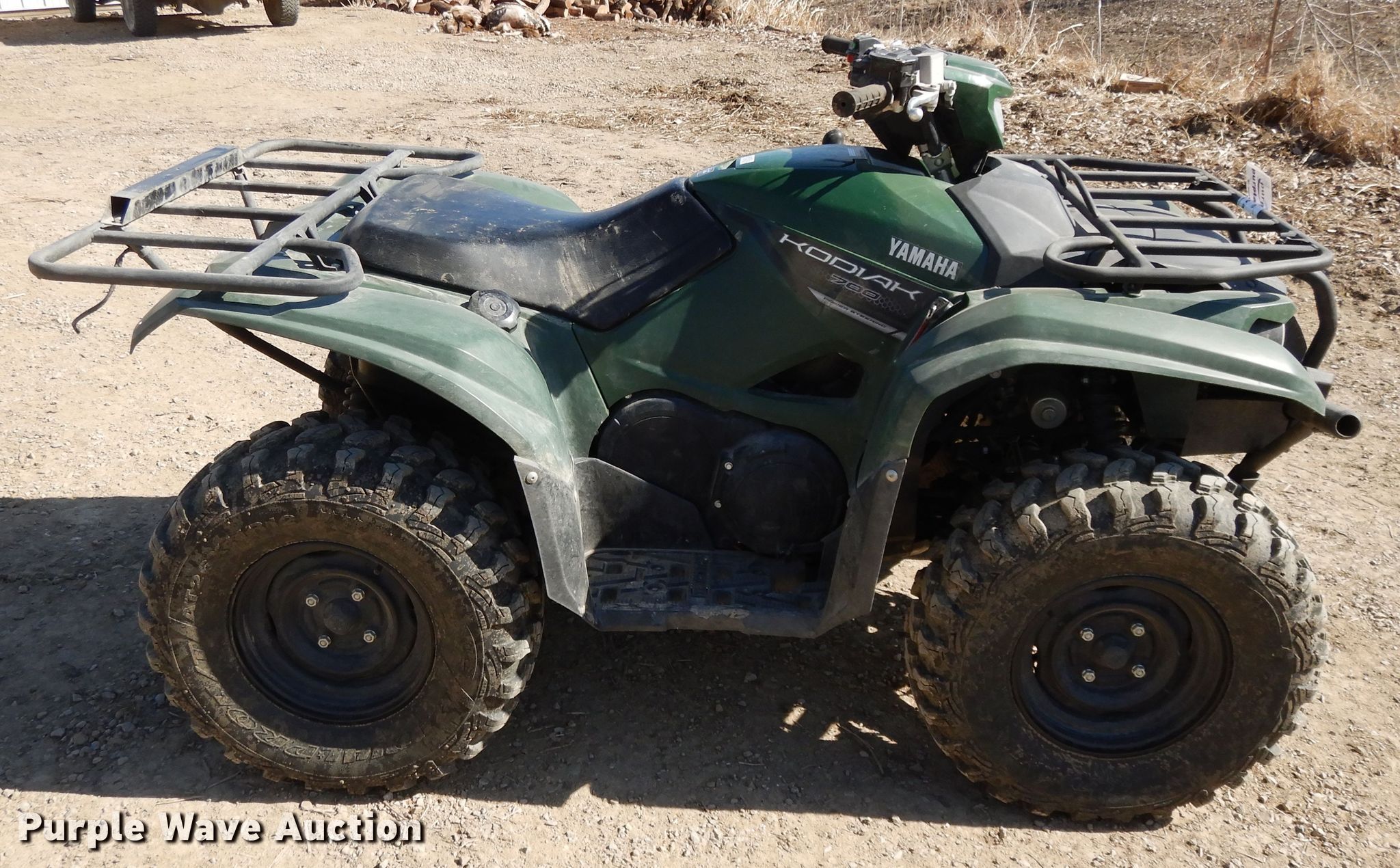 Purple Wave is selling a used ATV in Kansas. This item is a 2018 Yamaha Kodiak 700 ATV with the following: 685 miles on odometer, 97 hours on meter, 708cc single cylinder gas engine, Electric start, Automatic transmission, Four wheel drive, 26 x 9R12 front tires, 26 x 11R12 rear tires