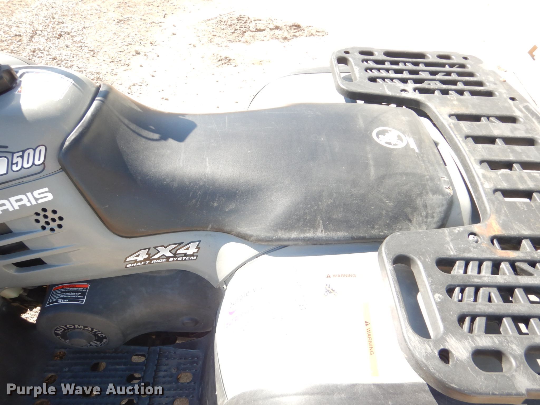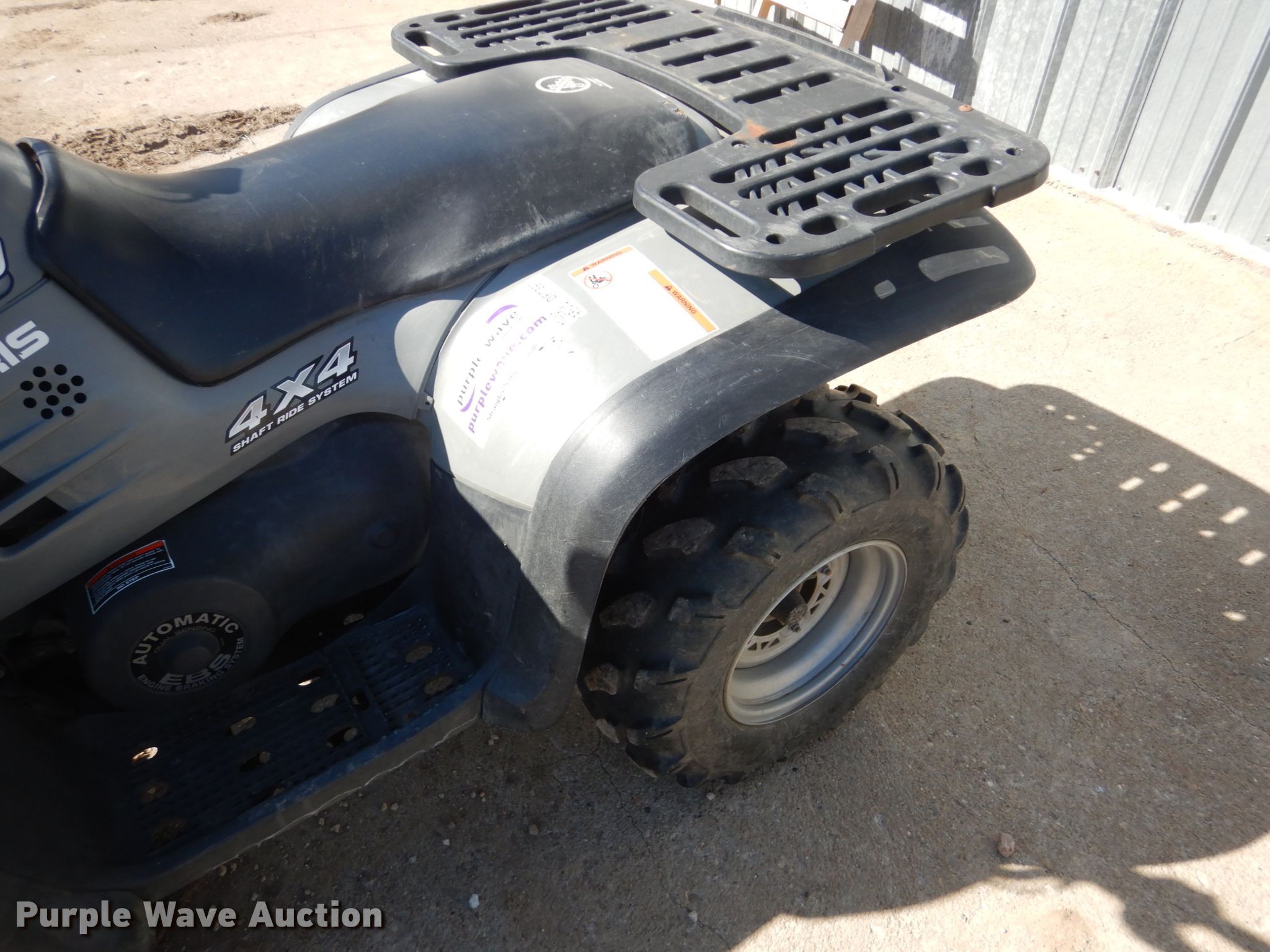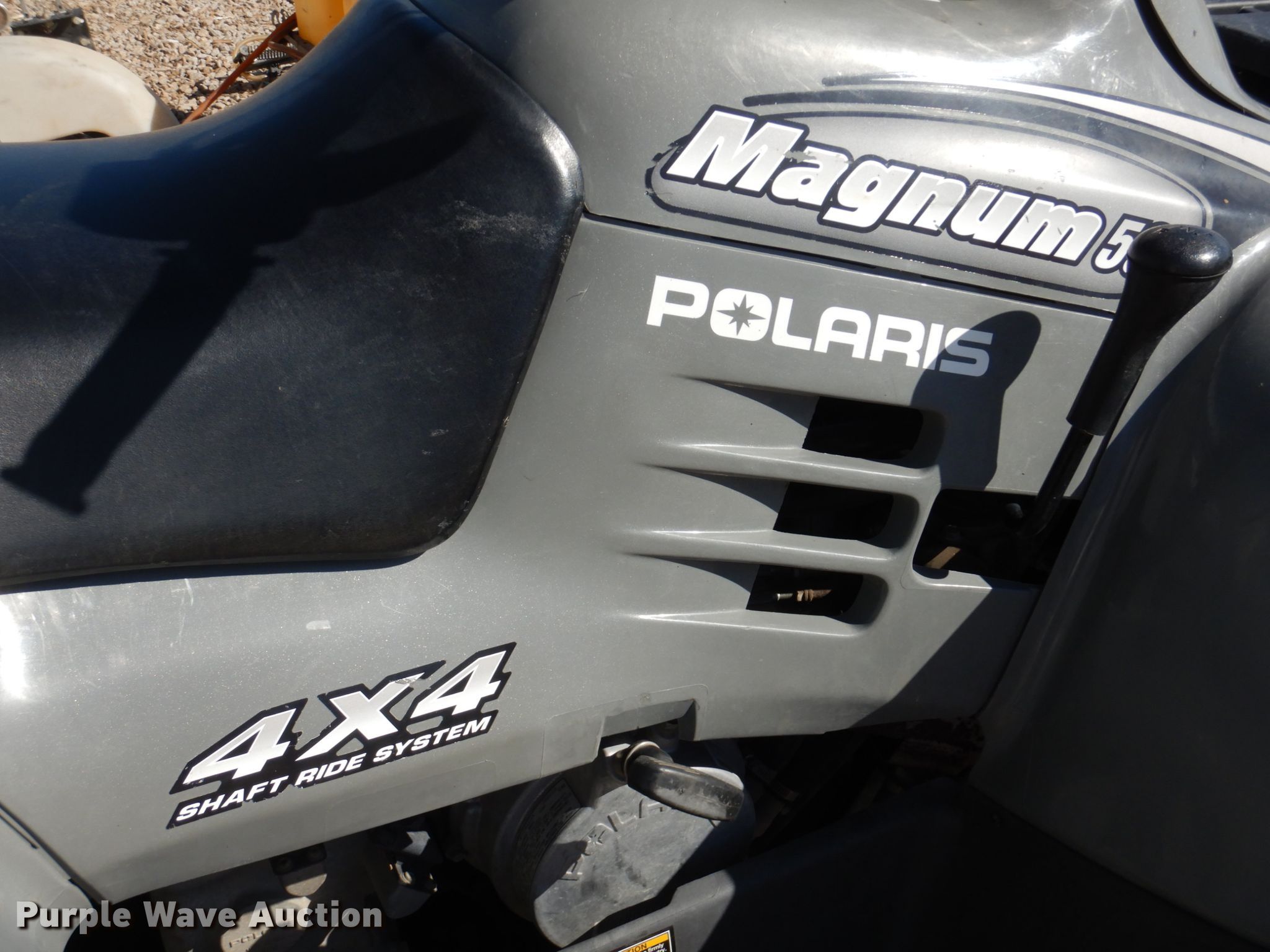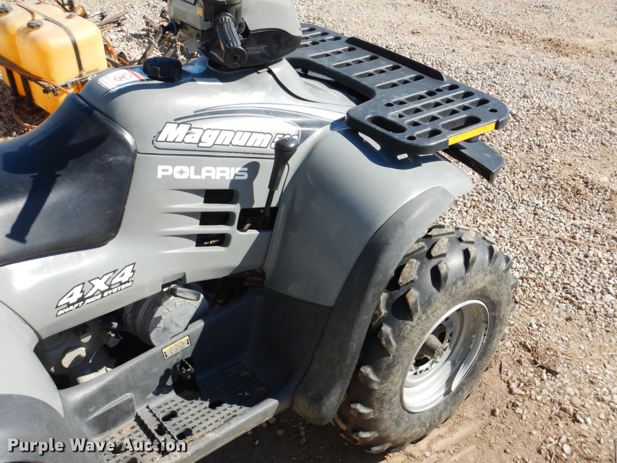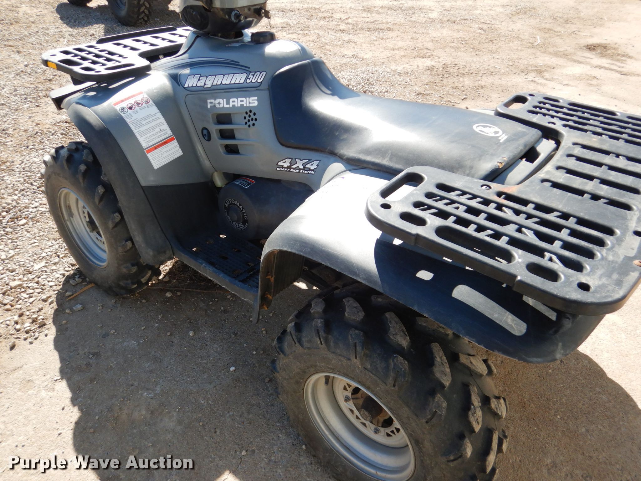 Purple Wave is selling a used ATV in Kansas. This item is a 2002 Polaris Magnum 500 ATV with the following: 1,482 miles on odometer, 500cc gas engine, Automatic transmission, Four wheel drive, Electric start, 25x8-12 front tires, 25x11-12 rear tires