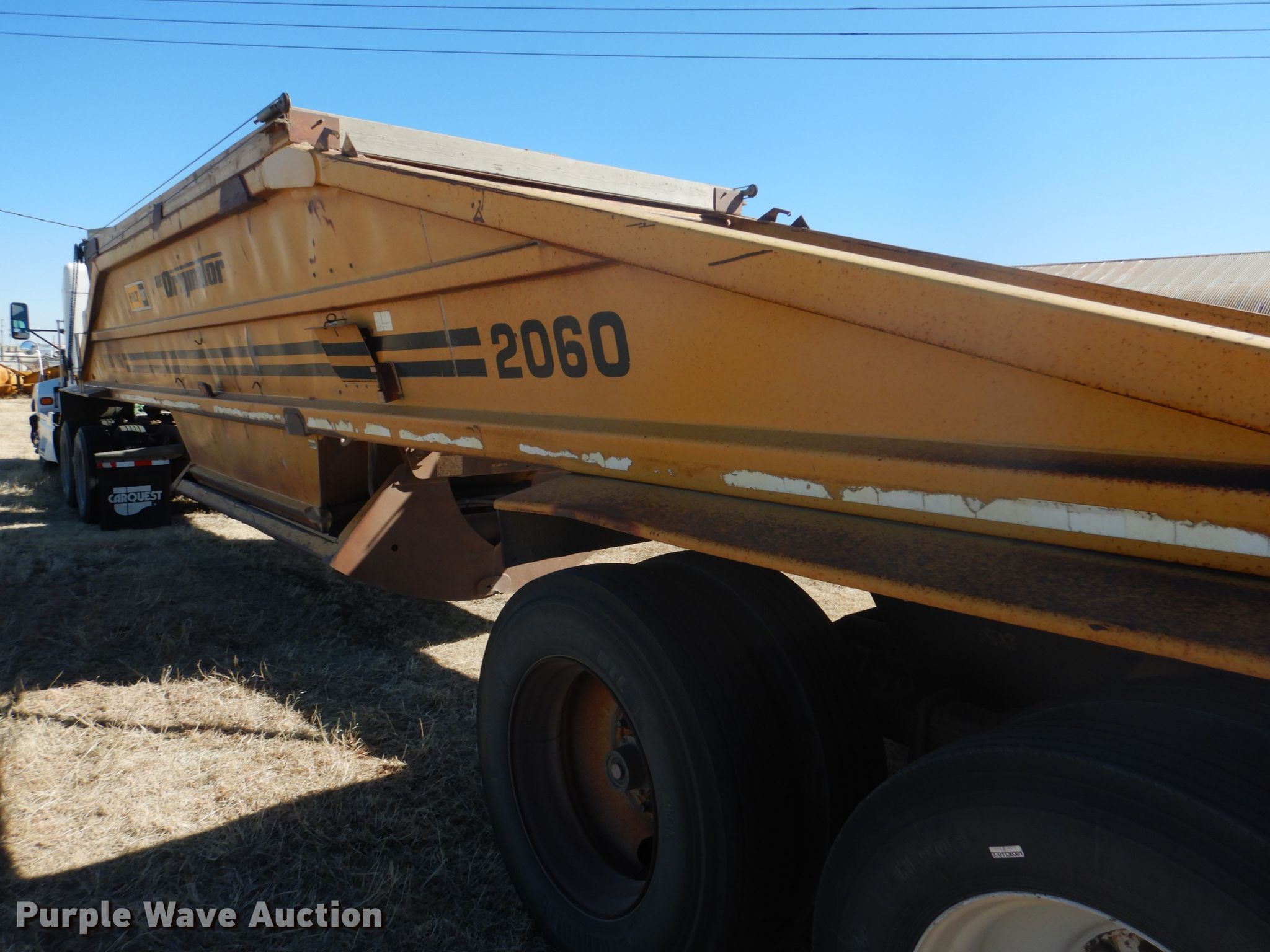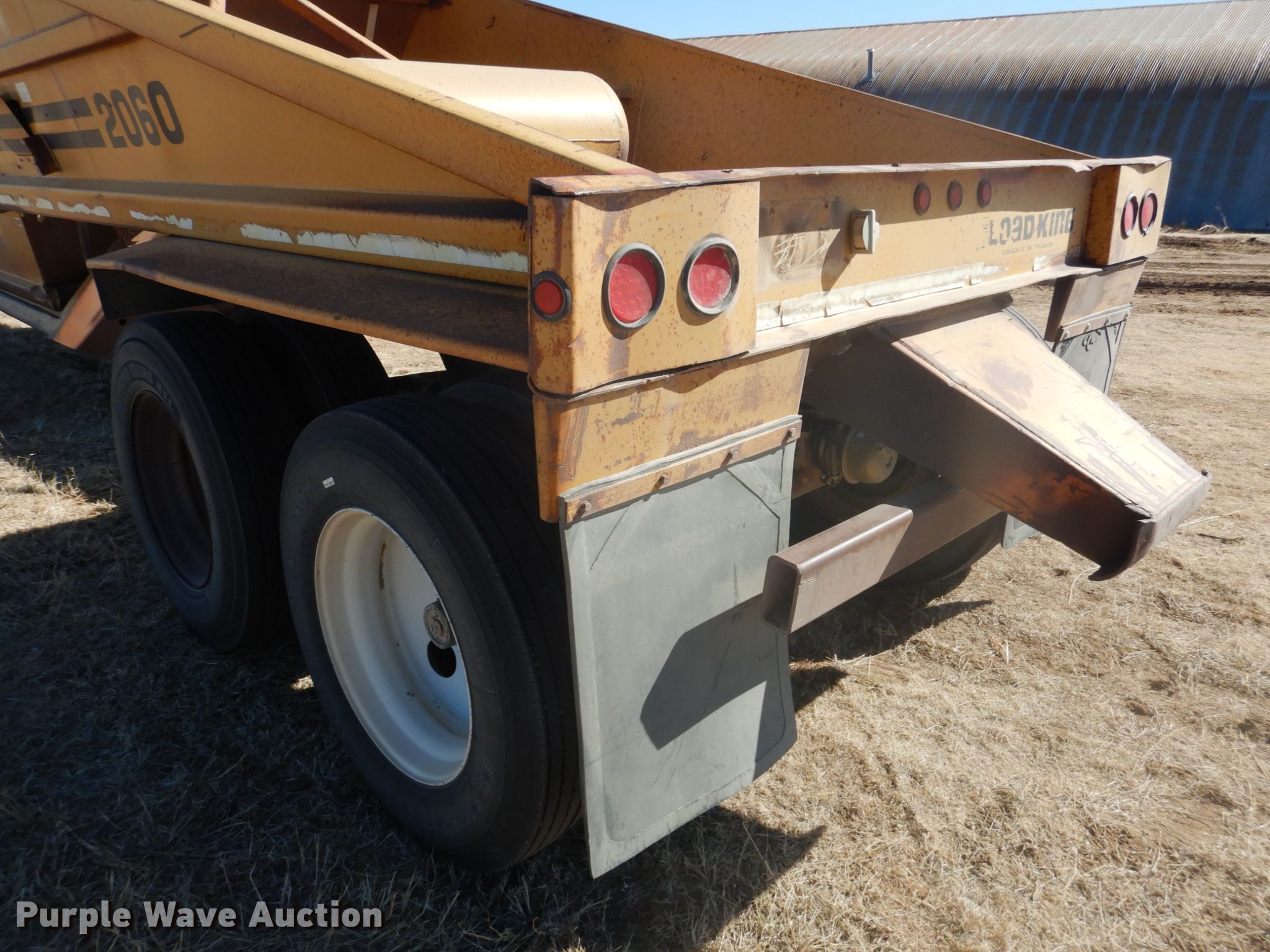 Purple Wave is selling a used Bottom Dump Trailer in Kansas. This item is a 1996 Load King 2060-40-2 bottom dump trailer with the following: 42'L x 102"W, 6" side boards, Steel construction, Air operated clamshell gate, Rear push block, Roll tarp, Dual leg landing gear, Spring suspension, Air brakes, Tandem axle, 11R24.5 tires, GVWR 73,460 lbs, GAWR 20,000 lbs