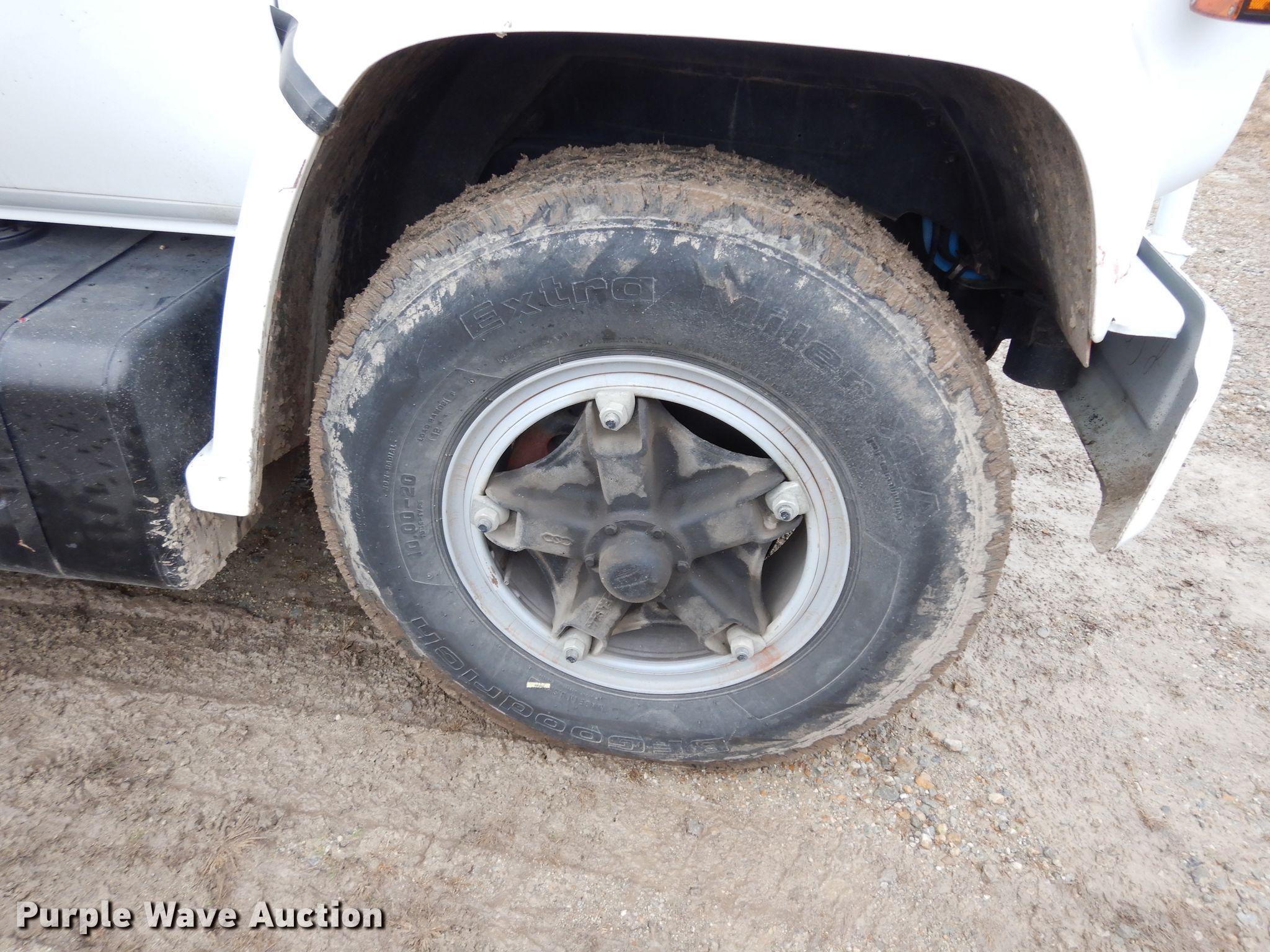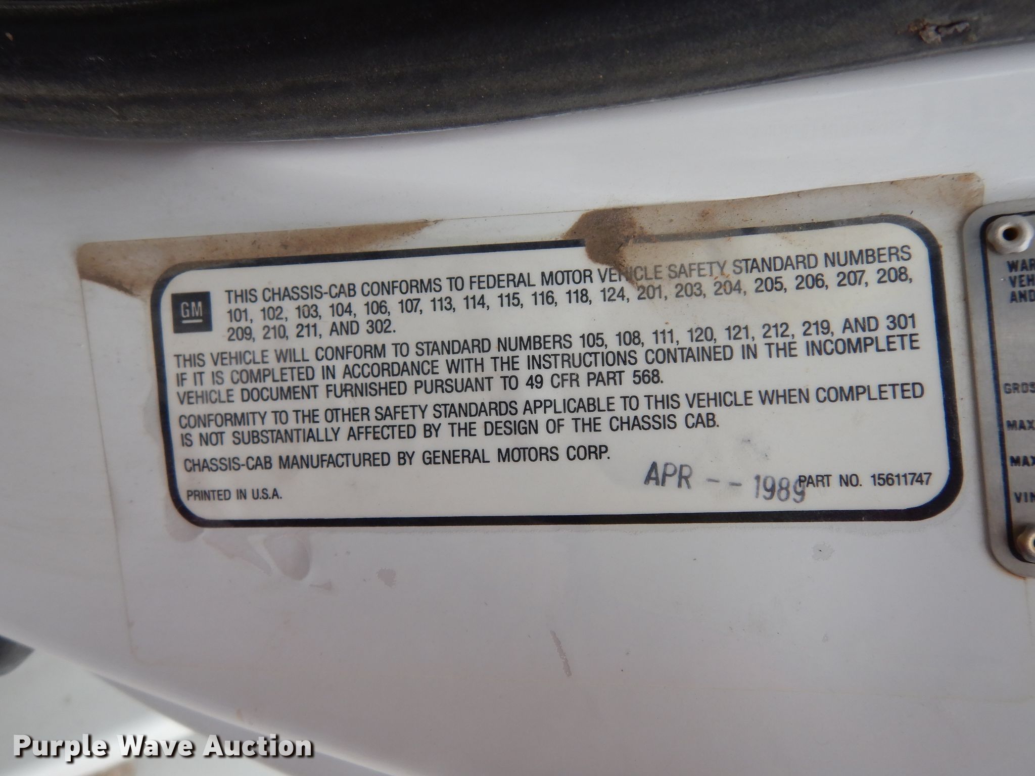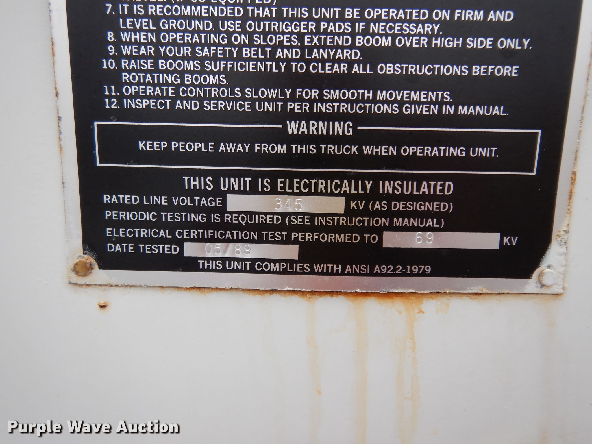 Purple Wave is selling a used Bucket Truck in Kansas. This item is a 1989 Chevrolet C70 bucket truck with the following: 3,349 miles on odometer, 1,768 hours on meter, 6.0L V8 gas engine, Five speed manual transmission, Single axle, Heat, PTO, Altec utility bed, 174"L, Serial 37-62233, 1989 Altec AN755 insulated boom, 55' mast height, 700 lbs maximum lift, Man basket, Platform controls, Serial 0589-U0289, Certification valid through November 2020, Spring suspension, Hydraulic brakes, 190" wheelbase, BF Goodrich 10.00-20 tires, GVWR 28,000 lbs