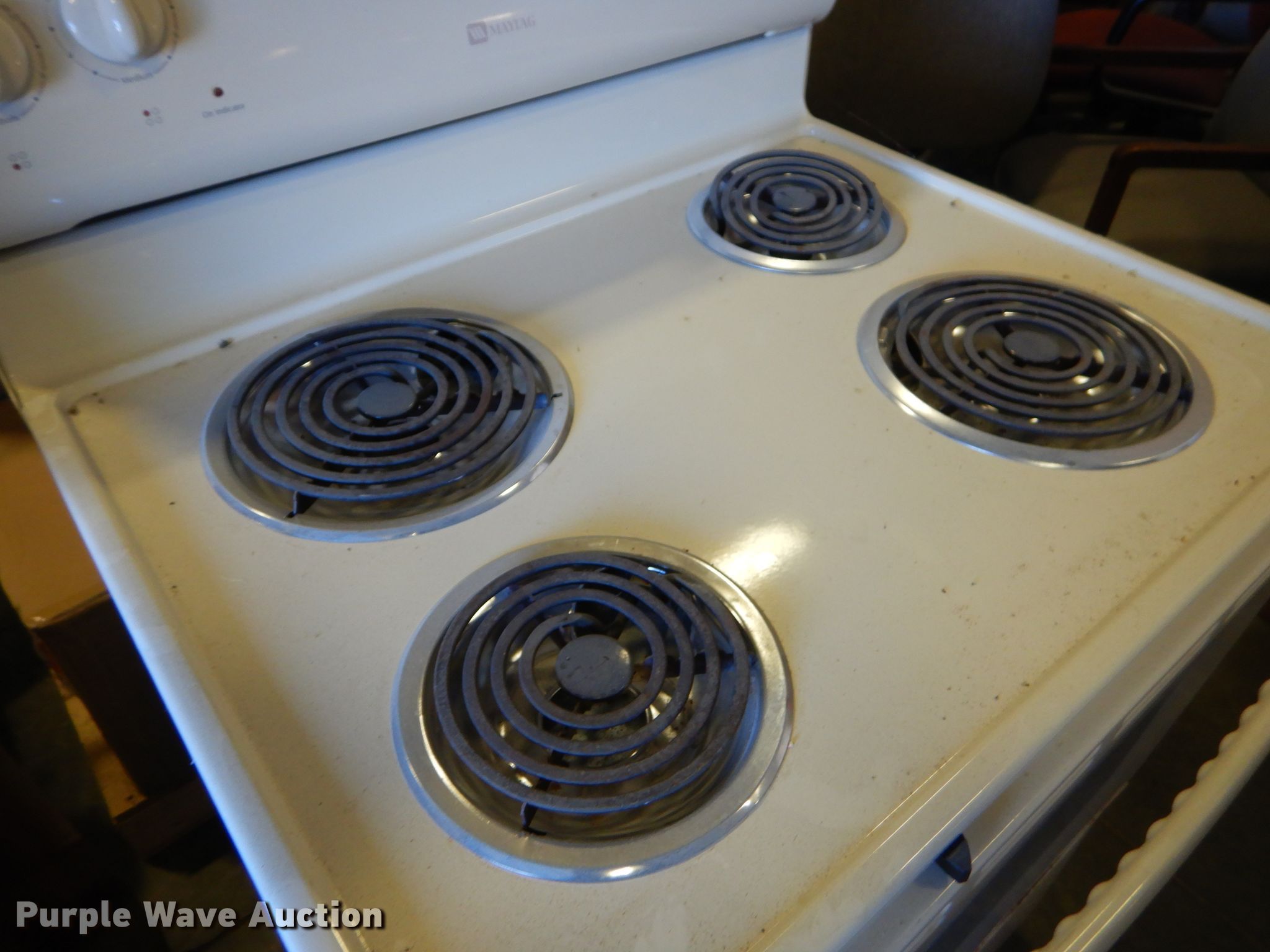 This Maytag four burner electric oven will sell to the highest bidder regardless of price.