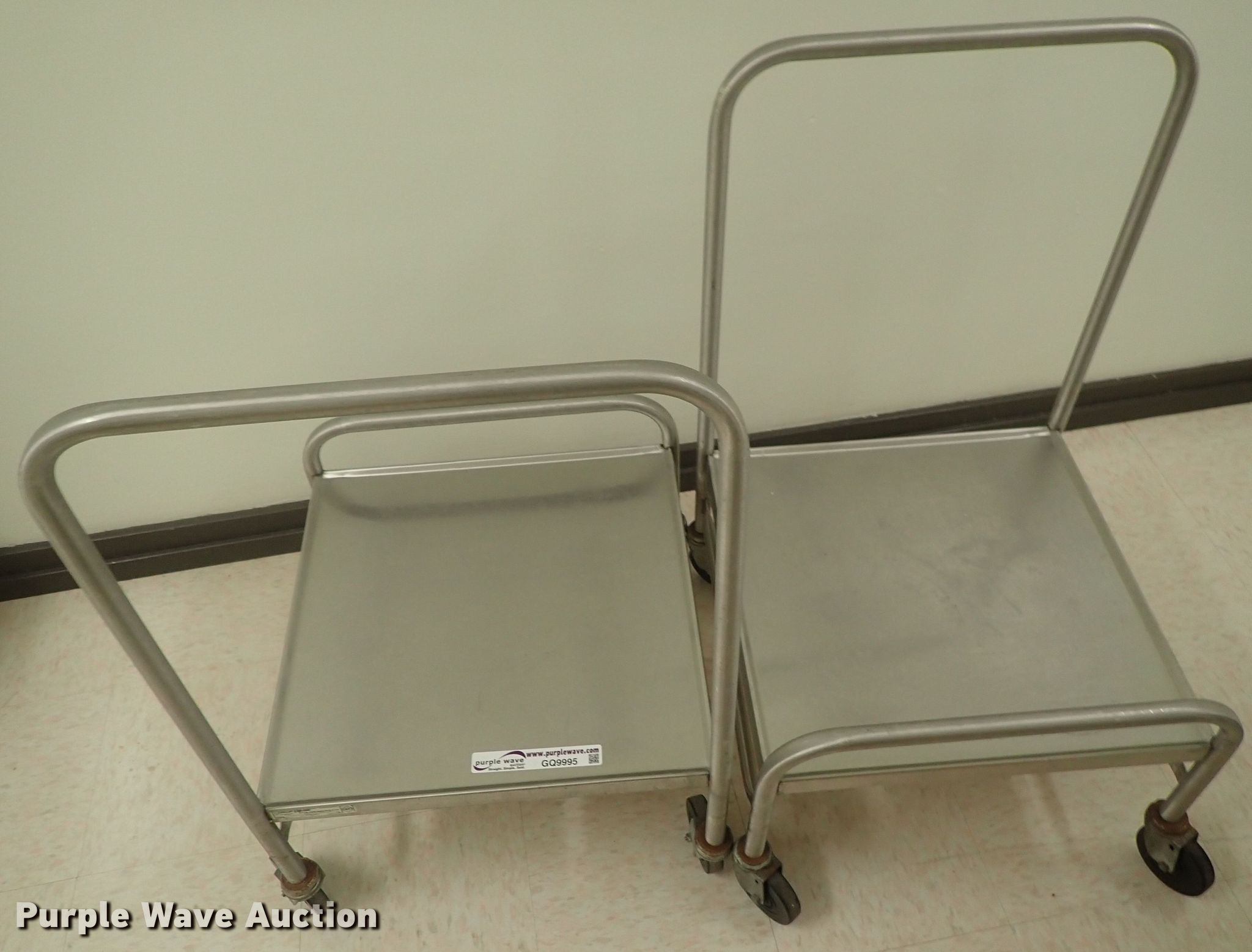 Purple Wave is selling a used Restaurant Equip. in Kansas. This item is a (2) serving carts with the following: 21" x 21"
