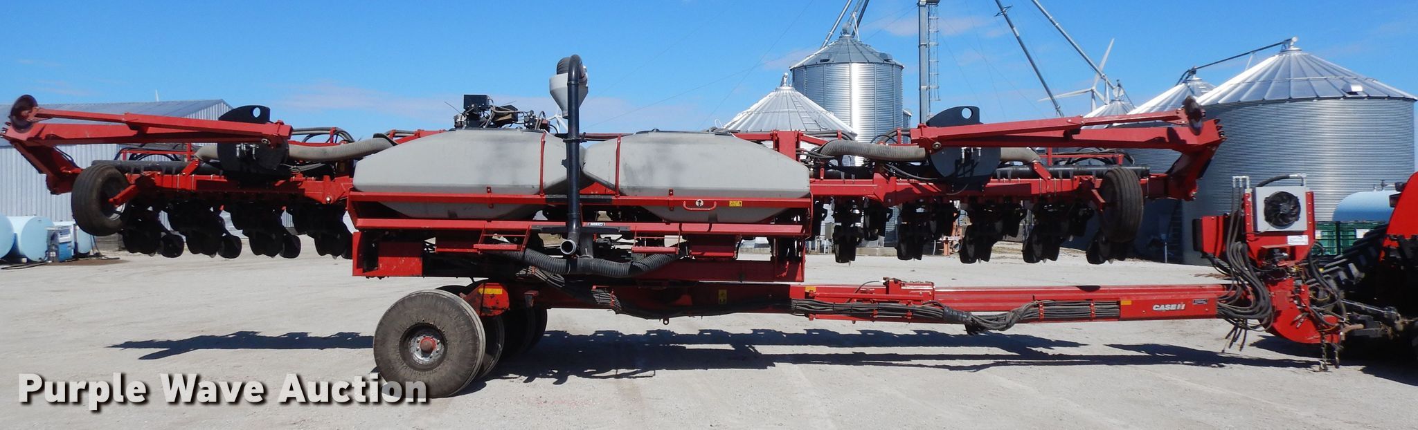 Purple Wave is selling a used Planter in Illinois. This item is a 2014 Case IH 1245 split row planter with the following: 10,000 acres on meter, 31 row units, 15" row spacing, 16 row units, 30" row spacing, Marker arms, Pivot fold, Bulk fill system, Hydraulic metering, Corn and soybean precision seed meters, Pneumatic down pressure, Double disk openers, Double gauge wheels, Single rubber closing system, Seedsense 20/20 monitor, 16.5L-16.1 tires, V-set precision high speed system installed 2017, Serial YDS042384