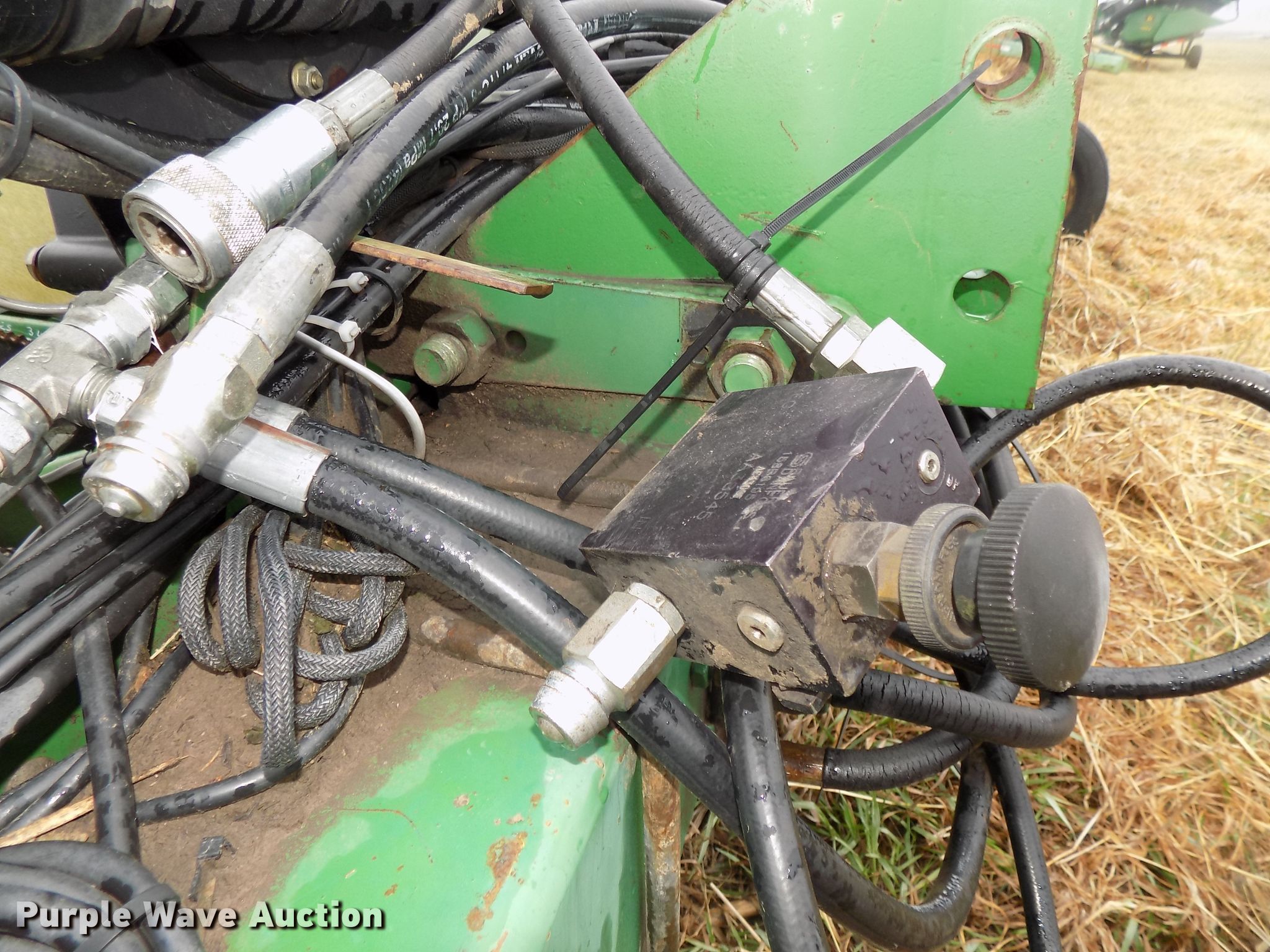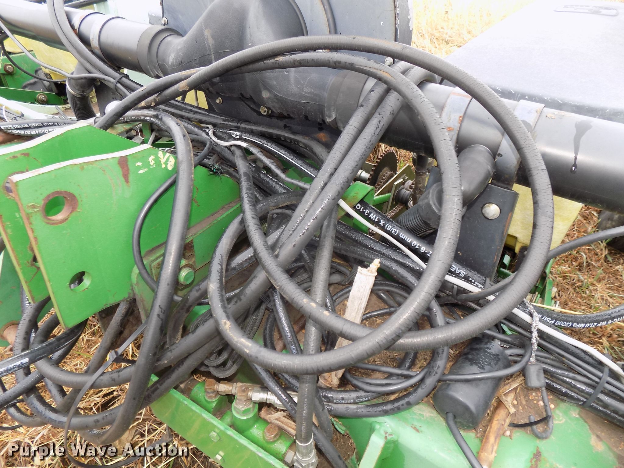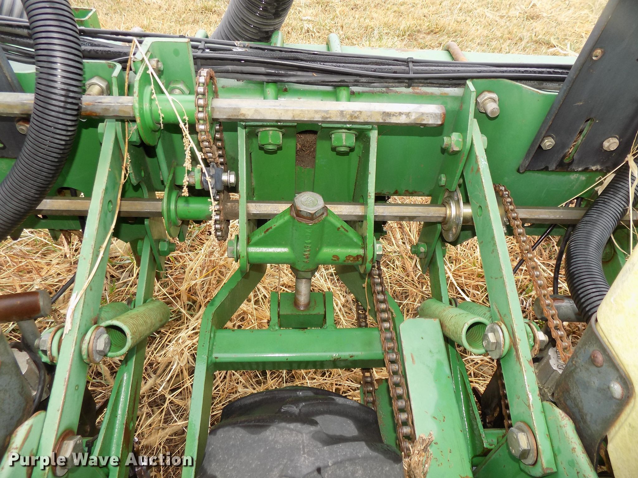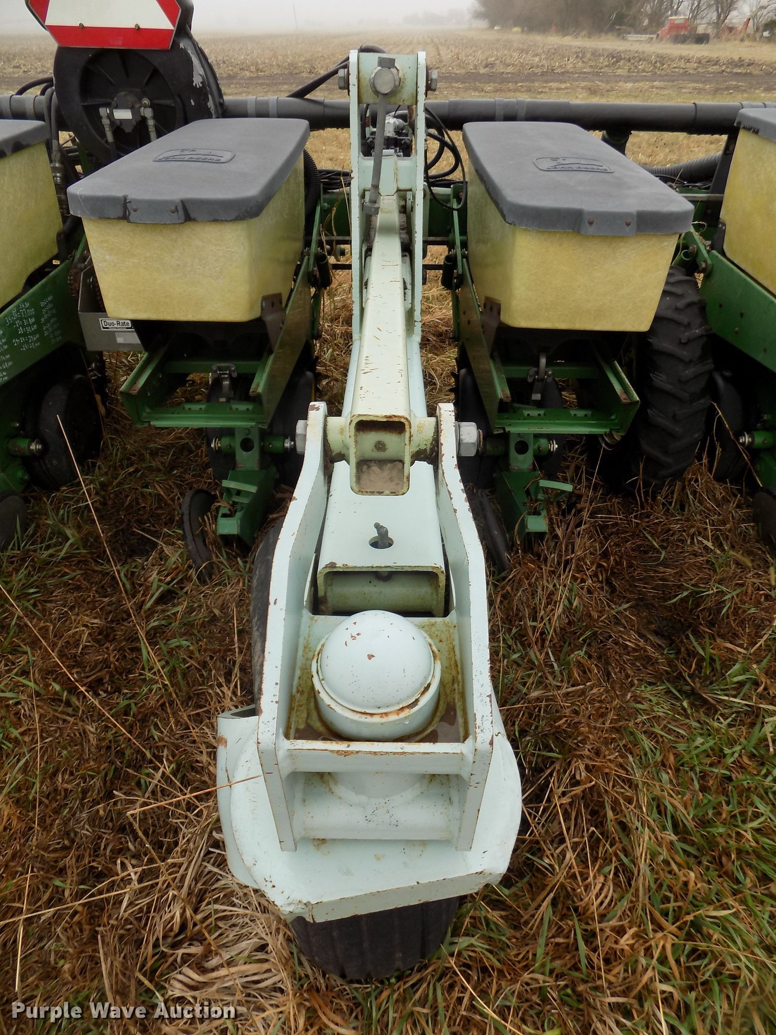 Purple Wave is selling a used Planter in Nebraska. This item is a John Deere 7300 planter with the following: 30'W, 12 row units, 30" row spacing, Marker arms, Hydraulic fold, Individual seed hoppers, Three bushel capacity, Ground meter drive, Corn, soybean, and milo seed meters, HD spring down pressure, Double disk openers, Dawn row cleaners, Single gauge wheels, Schlagel double rubber spiked closing system, John Deere 250 monitor, Duo-Rate population controller, Orthman 601-337 lift assist, Three point, (4) 7.60-15 drive/outside tires, (2) 9.5L-15 transport tires, Serial H07300B202165