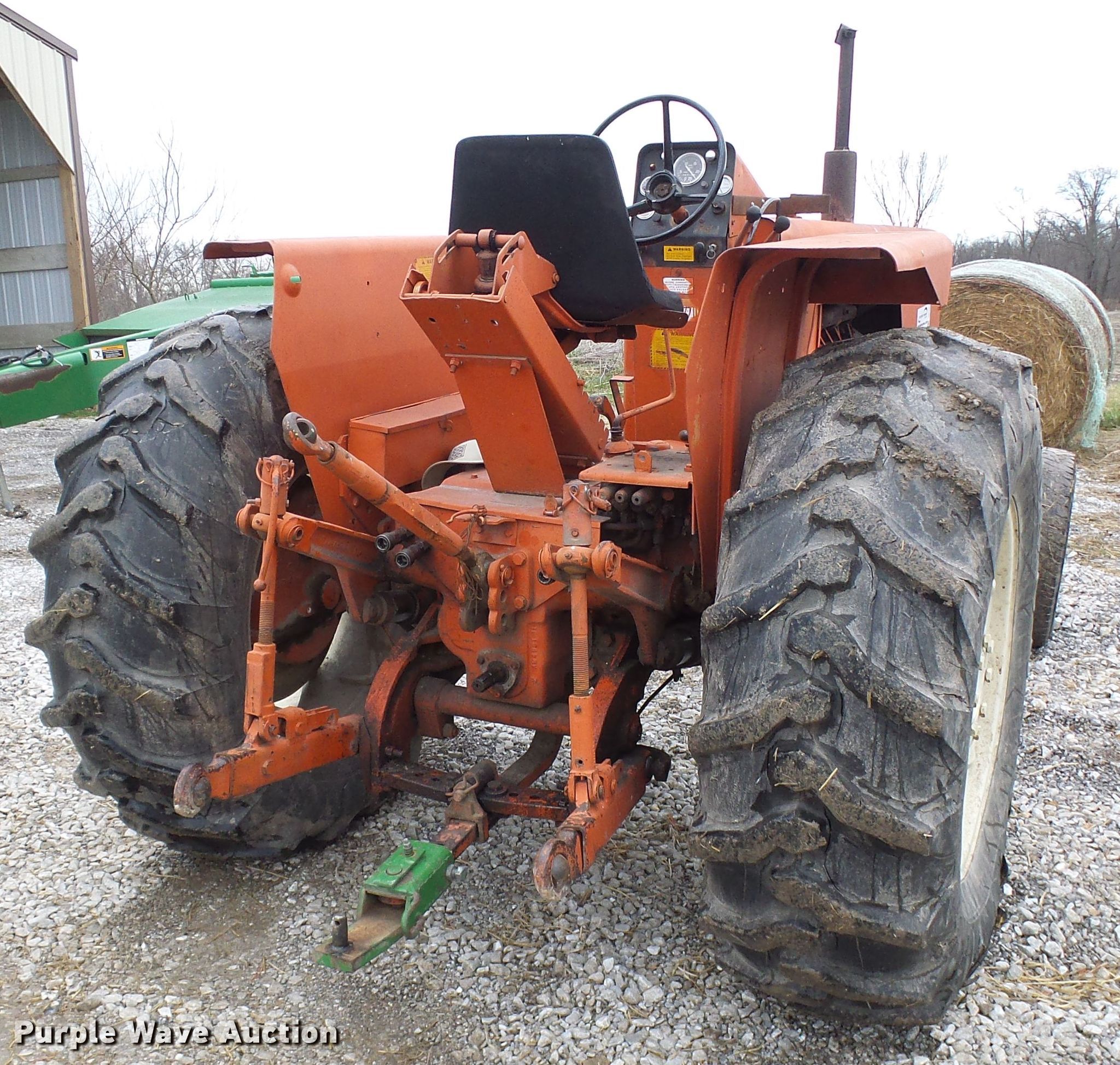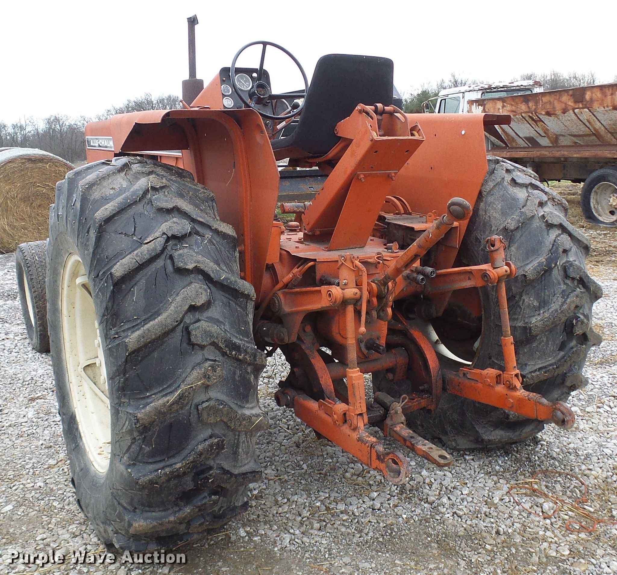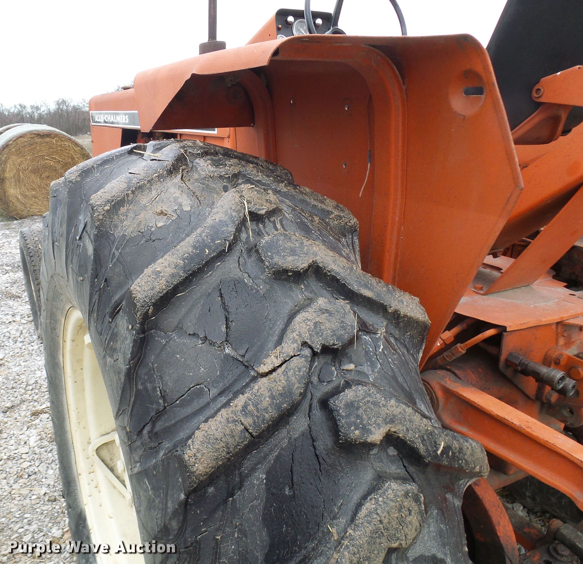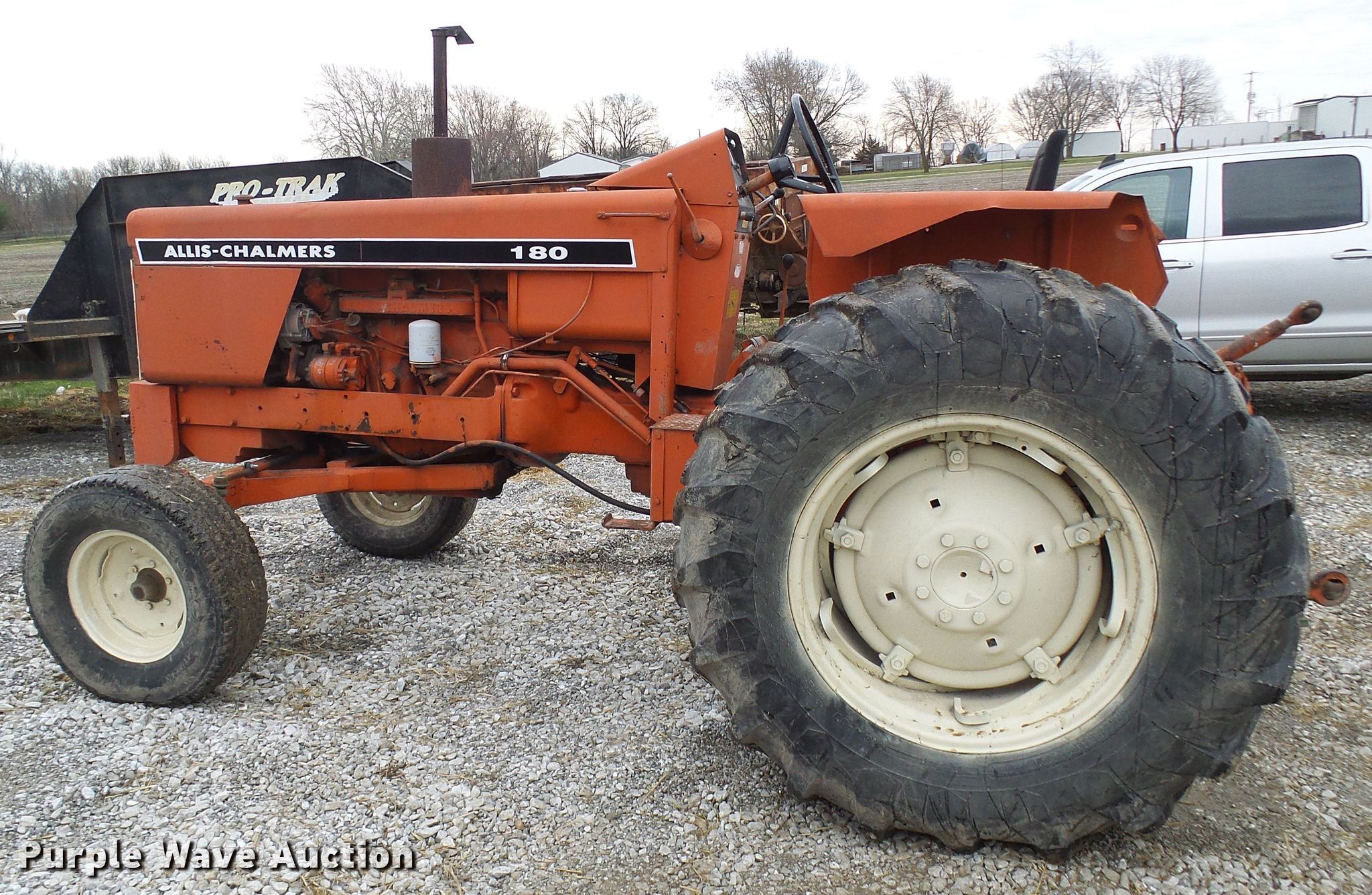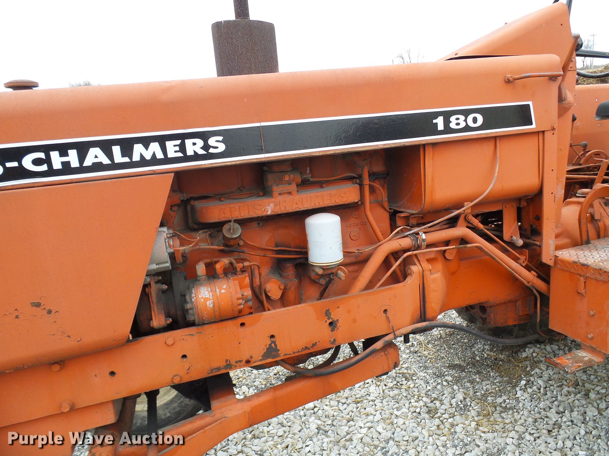 Purple Wave is selling a used Tractor in Missouri. This item is a Allis Chalmers 180 tractor with the following: 8,892 hours on meter, Allis Chalmers six cylinder diesel engine, Manual transmission, 8F-2R gears, Three point, 540 PTO, (2) rear hydraulic remotes, L265/75R16 front tires, 18.4-30 rear tires