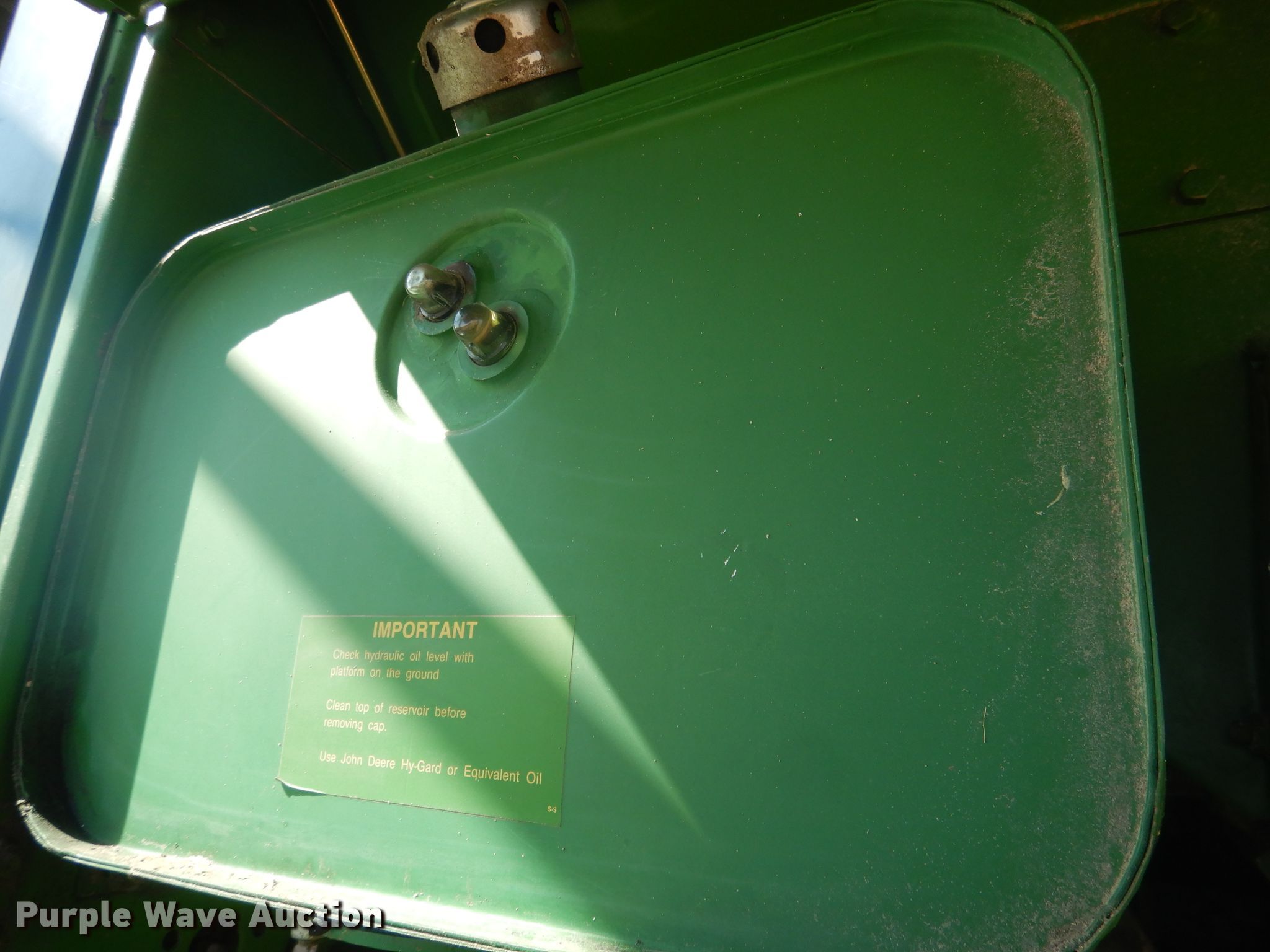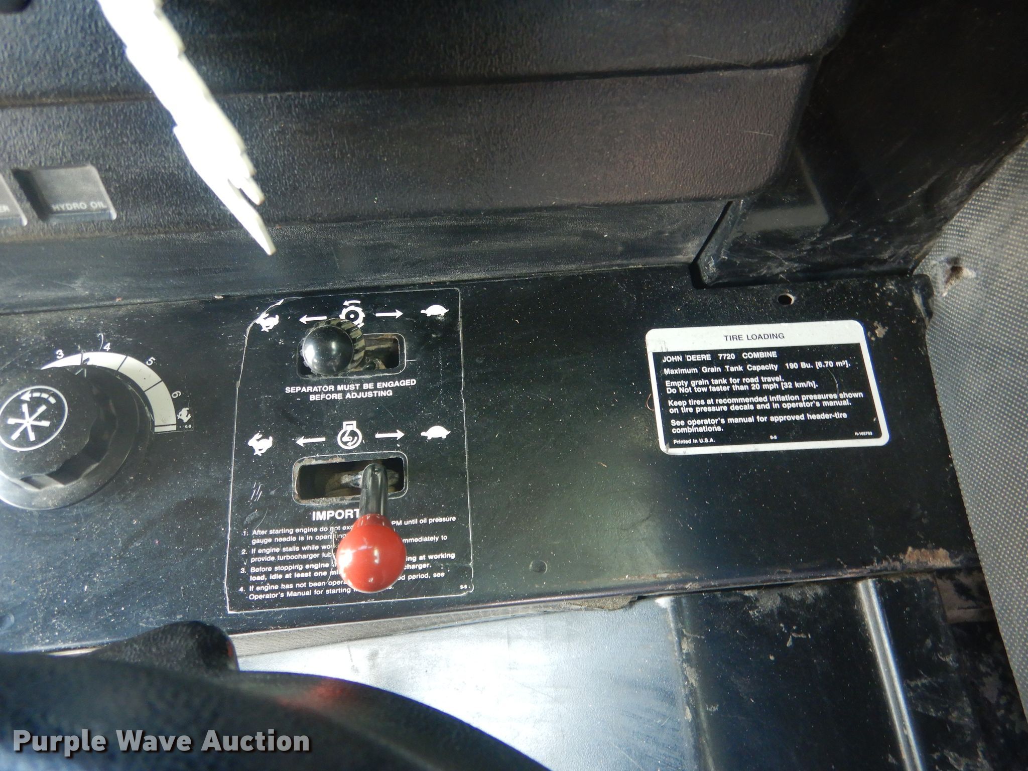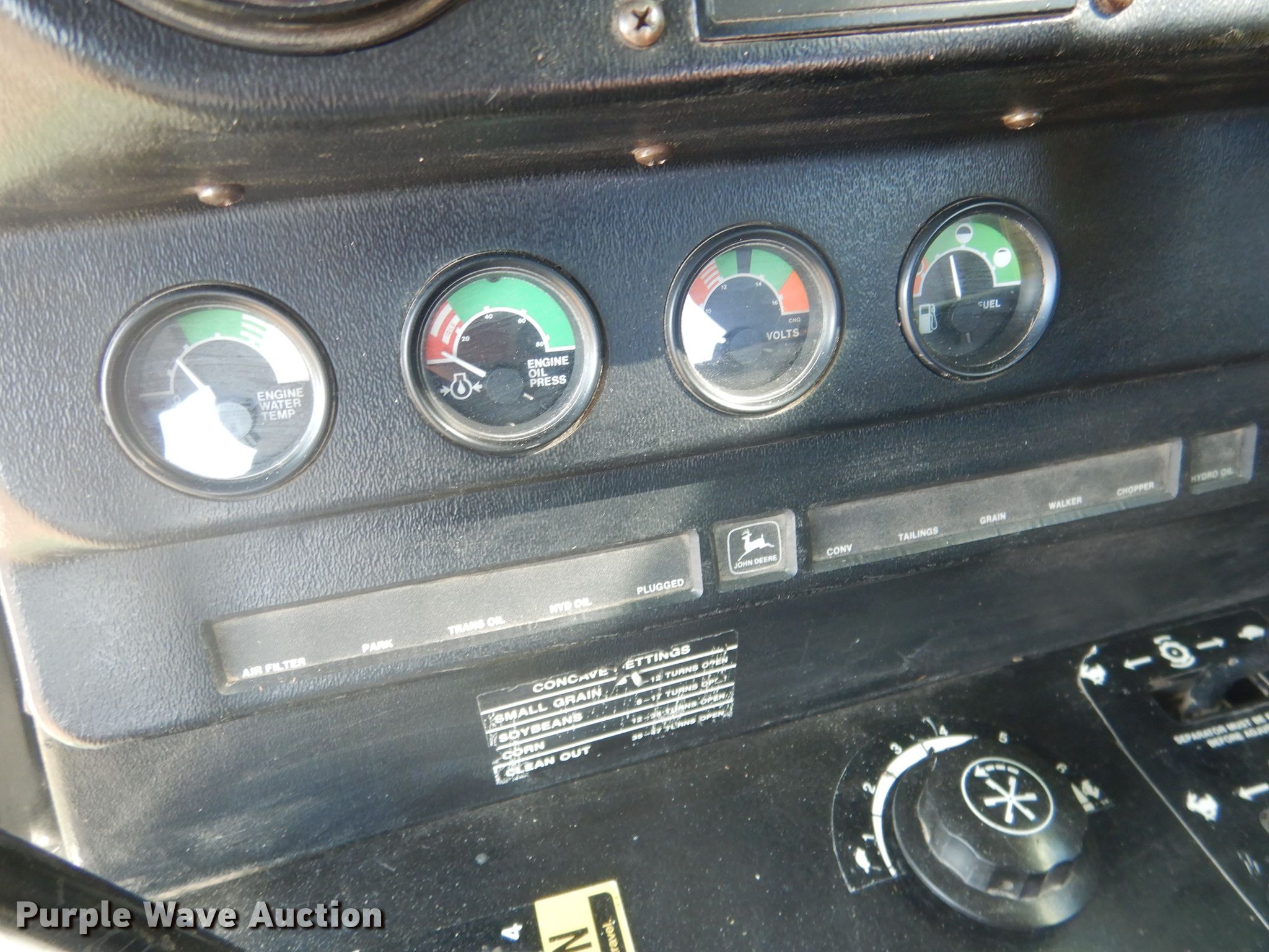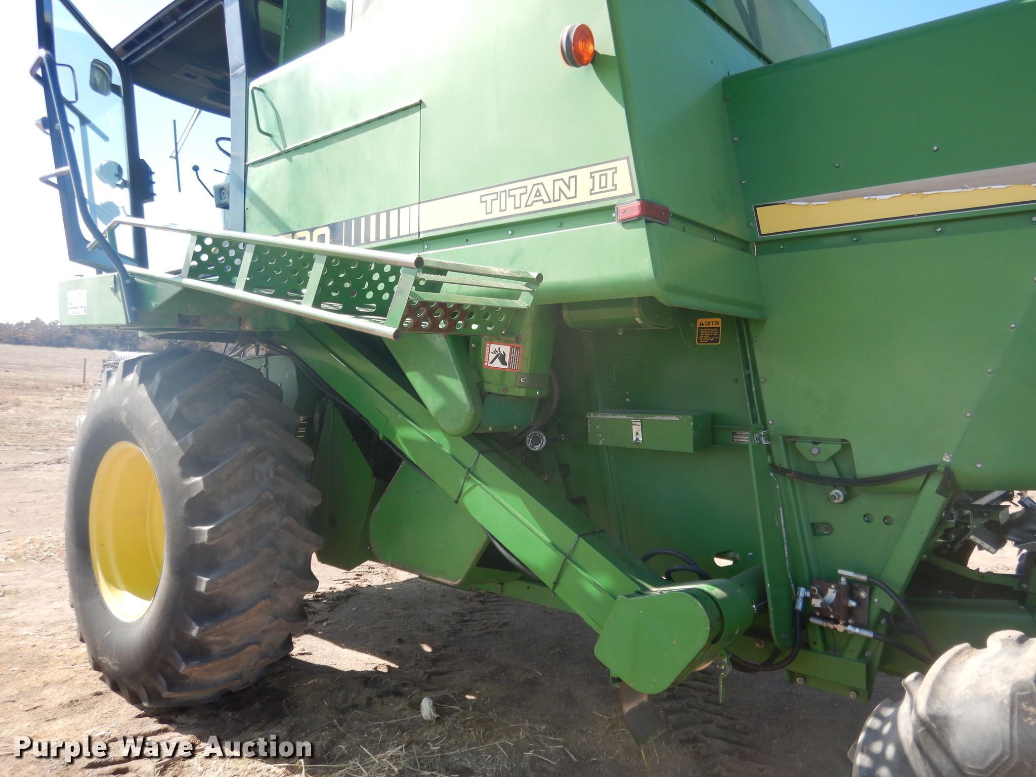 Purple Wave is selling a used Combine in Nebraska. This item is a 1988 John Deere 7720 Titan II combine with the following: 418 engine hours on meter, Approximately 4,400 total hours on unit, John Deere six cylinder diesel engine, Hydrostatic transmission, 4F - 4R, Feederhouse, Reverser, Small wire concaves, 18'L unloading auger, Chaff spreader, AC and heat, Operator manual, Serial H07720X625610, Unit# 01