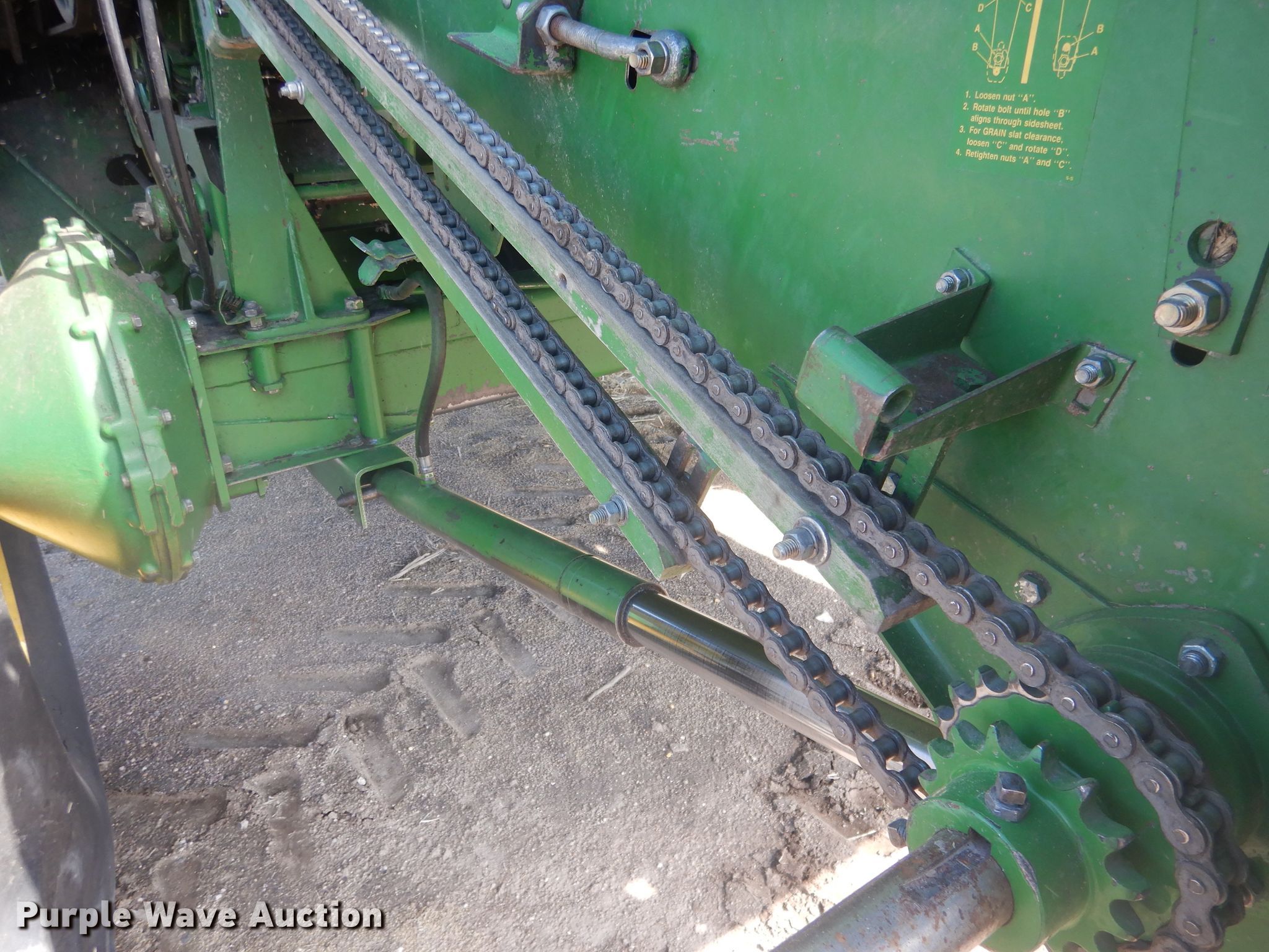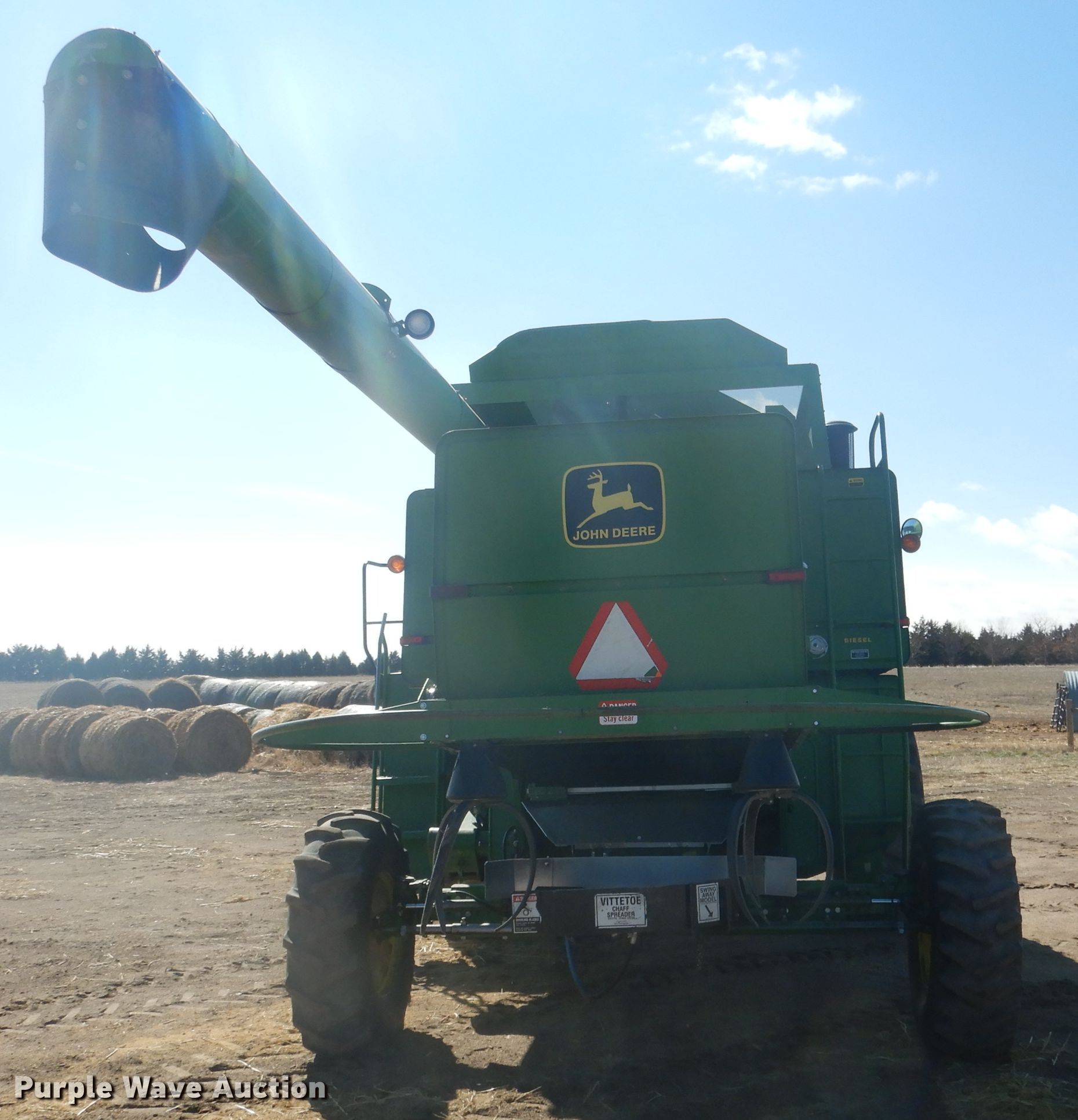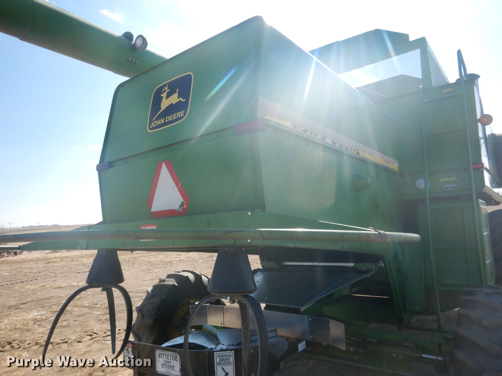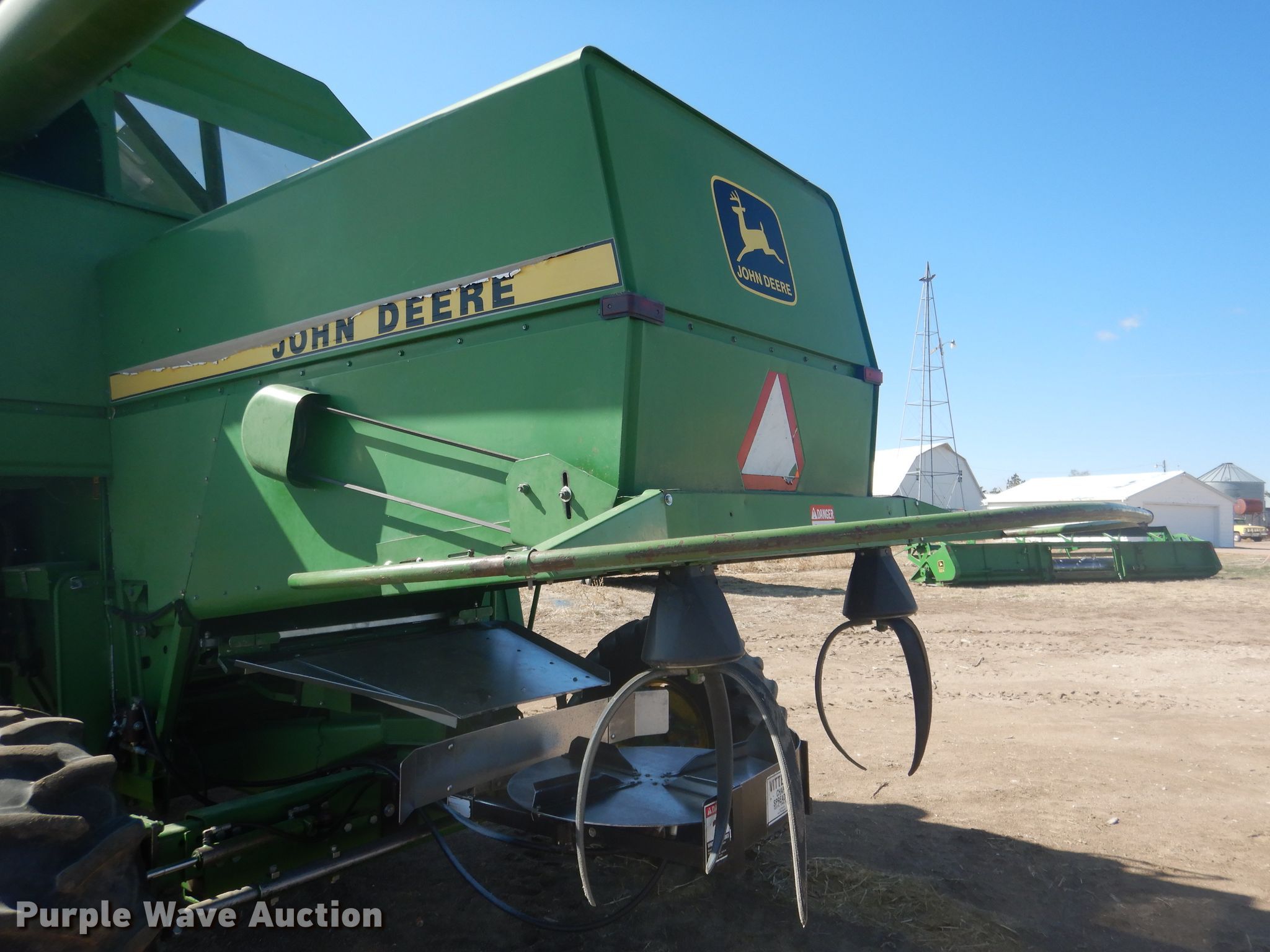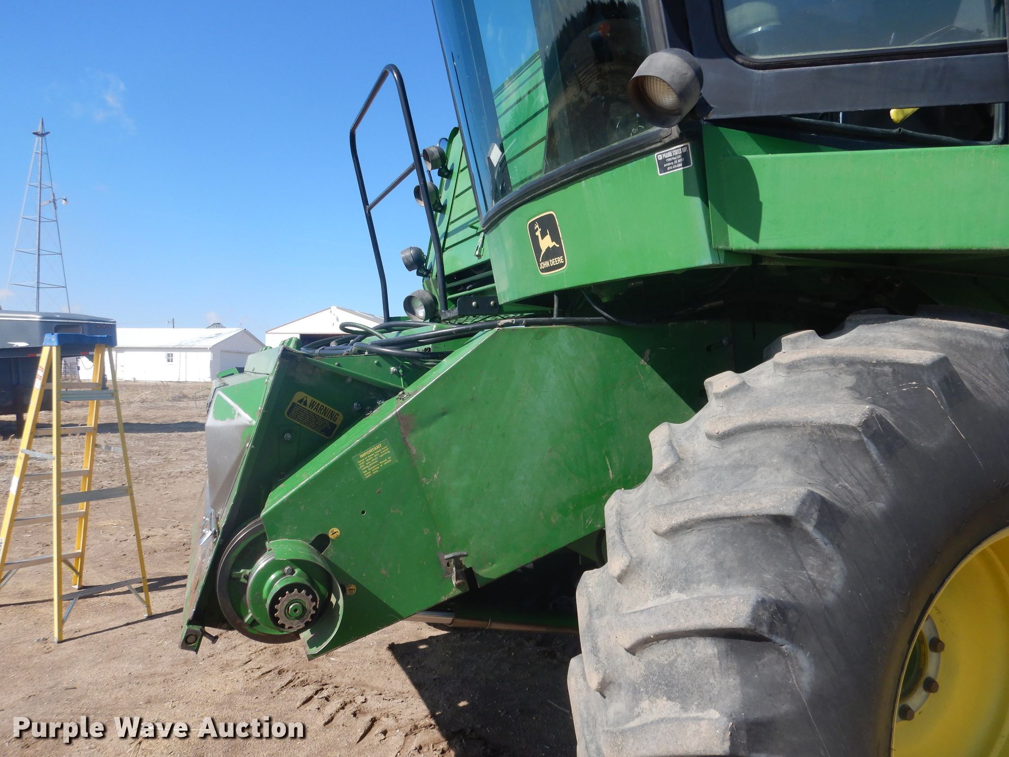 Purple Wave is selling a used Combine in Nebraska. This item is a 1988 John Deere 7720 Titan II combine with the following: 418 engine hours on meter, Approximately 4,400 total hours on unit, John Deere six cylinder diesel engine, Hydrostatic transmission, 4F - 4R, Feederhouse, Reverser, Small wire concaves, 18'L unloading auger, Chaff spreader, AC and heat, Operator manual, Serial H07720X625610, Unit# 01