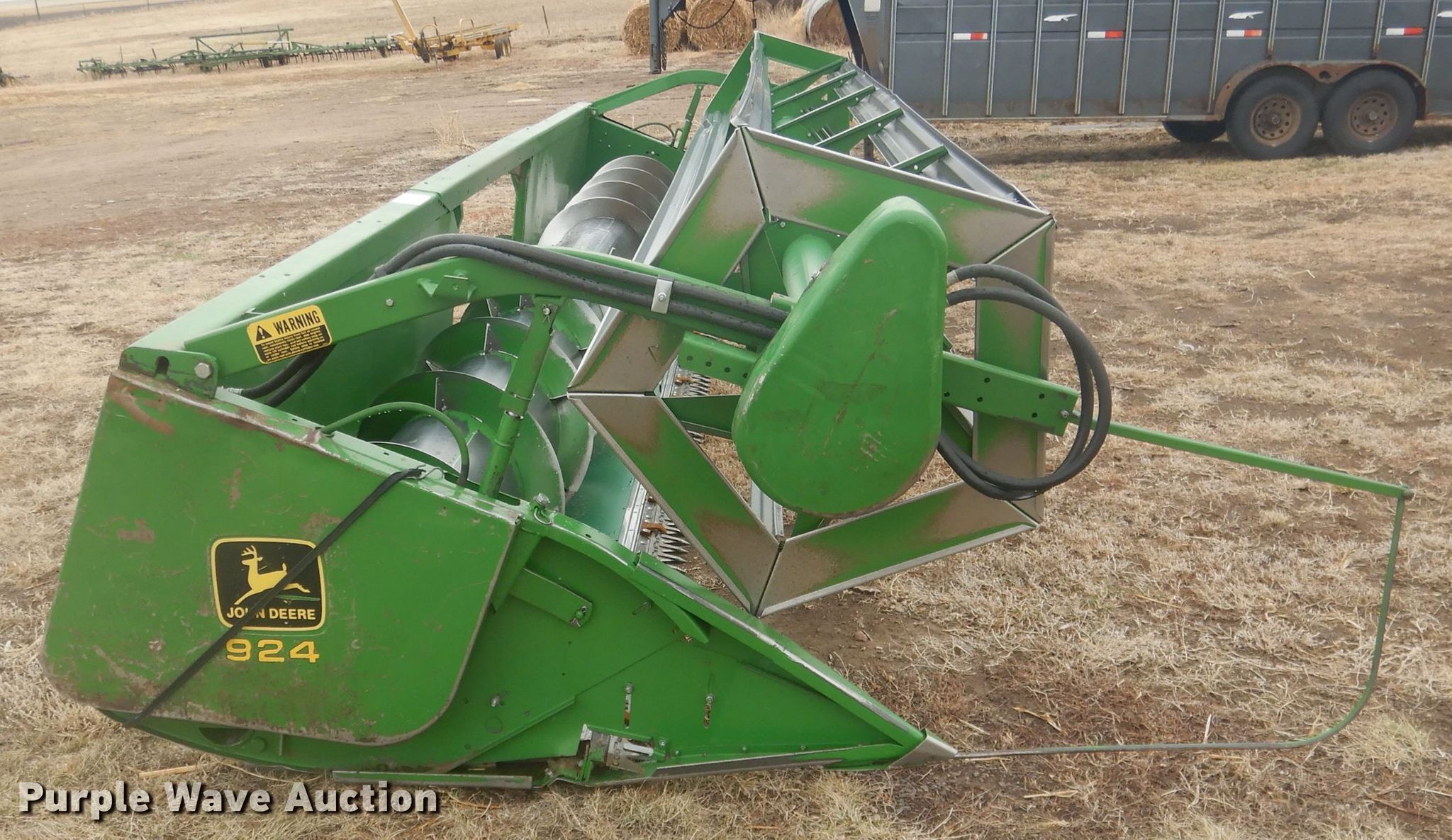 John Deere 924 rigid head. 272"W, Single point coupler, Dual drivelines, Bat reel Hydraulic reel height control, Steel skid plates, Serial H00924P626472. View repairs. Tim Bond. Lodgepole, NE 69149