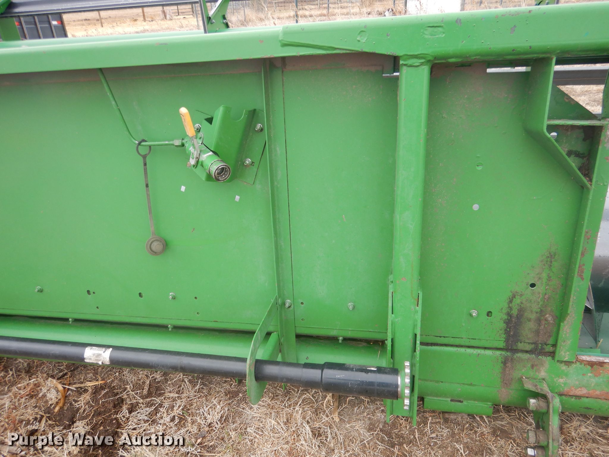 Purple Wave is selling a used Platform or Stripper Head in Nebraska. This item is a John Deere 924 rigid head with the following: 272"W, Single point coupler, Dual drivelines, Bat reel, Hydraulic reel height control, Steel skid plates, Serial H00924P626472