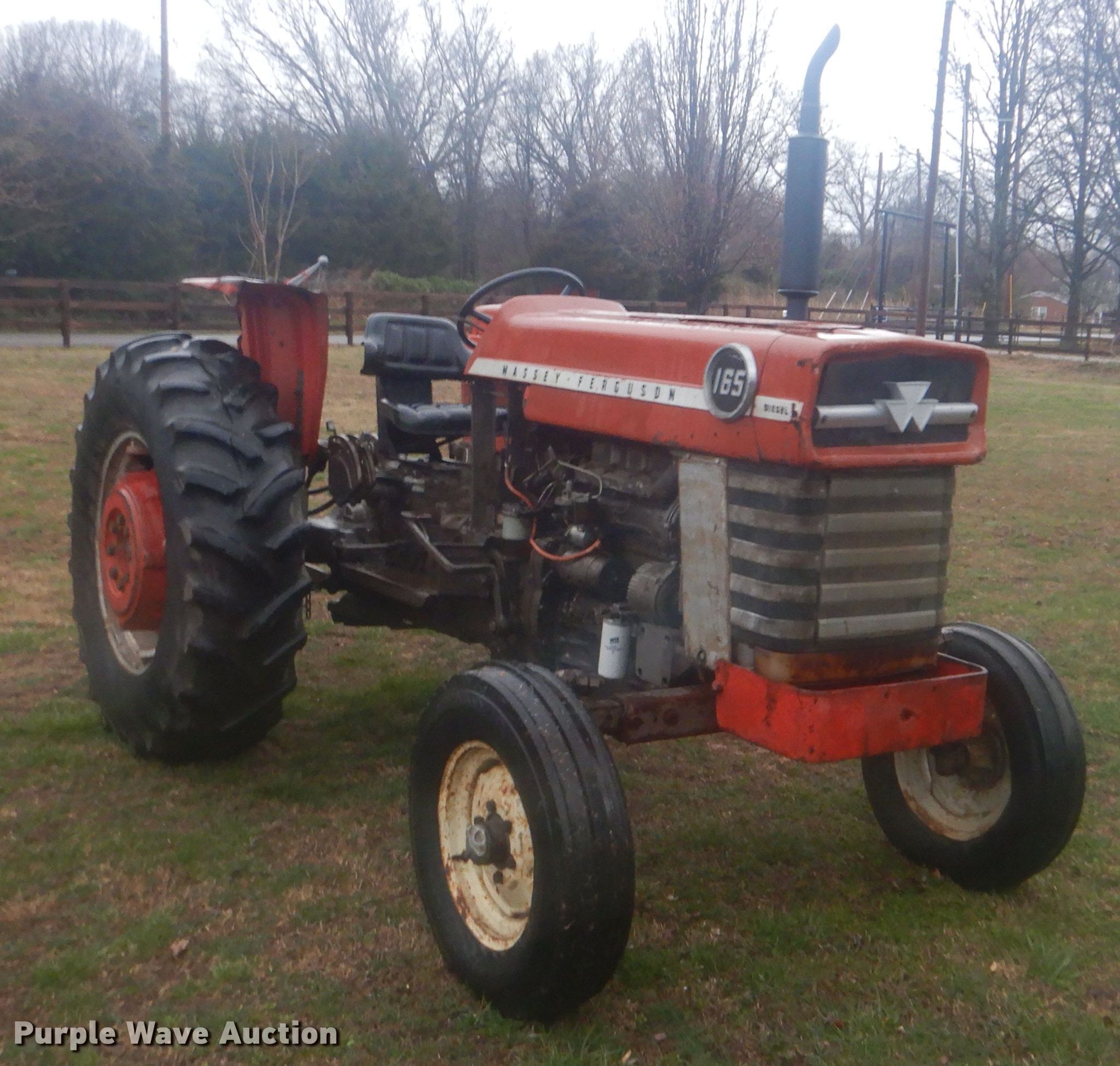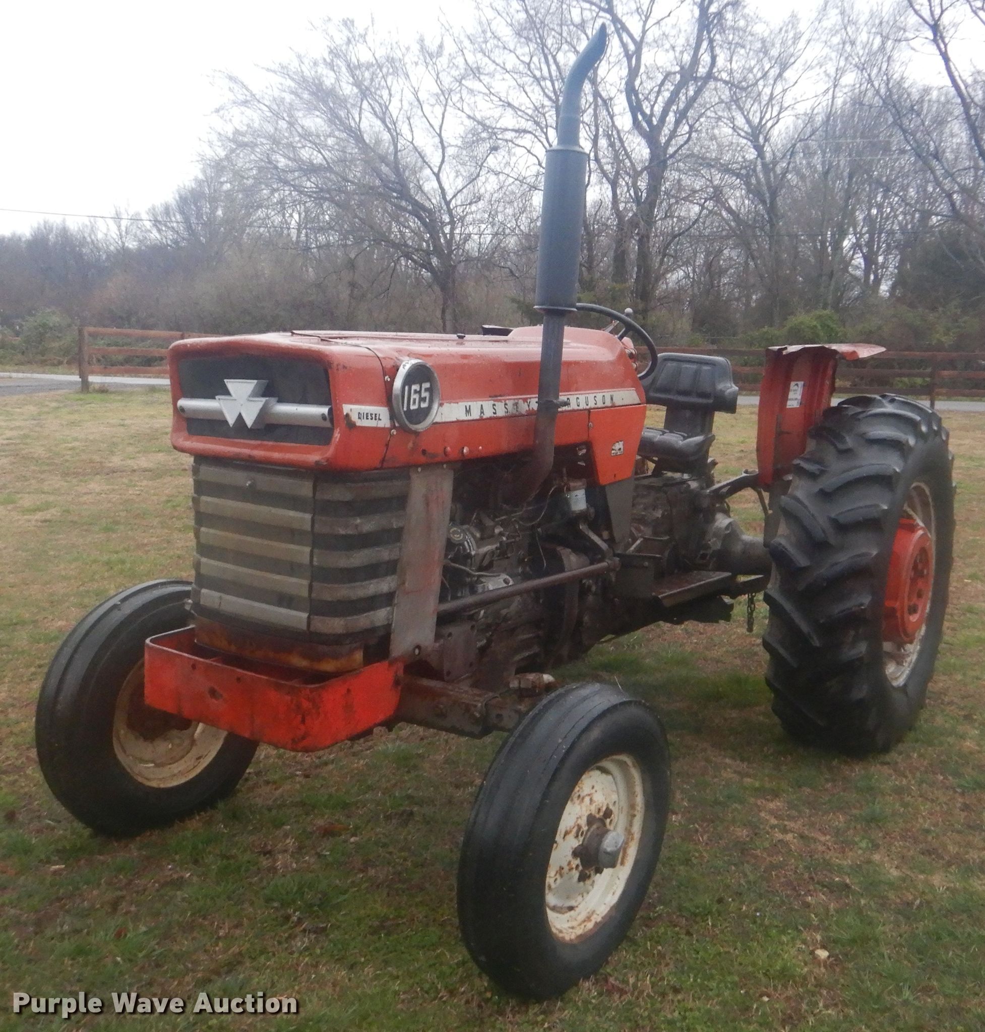 Purple Wave is selling a used Tractor in Oklahoma. This item is a Massey Ferguson 165 tractor with the following: 263 hours on meter, Perkins four cylinder diesel engine, Partial Powershift transmission, 12F-4R gears, 540 PTO, 82" wheelbase, 6.50-16 front tires, 15.5-38 rear tires, Serial 37786240