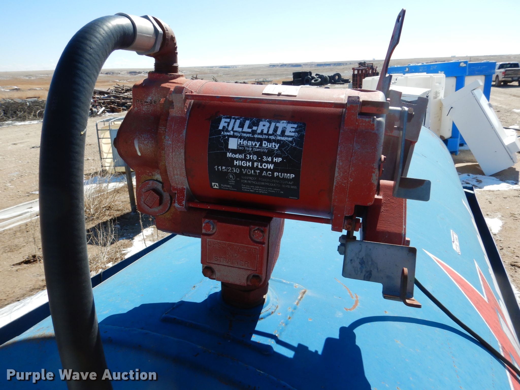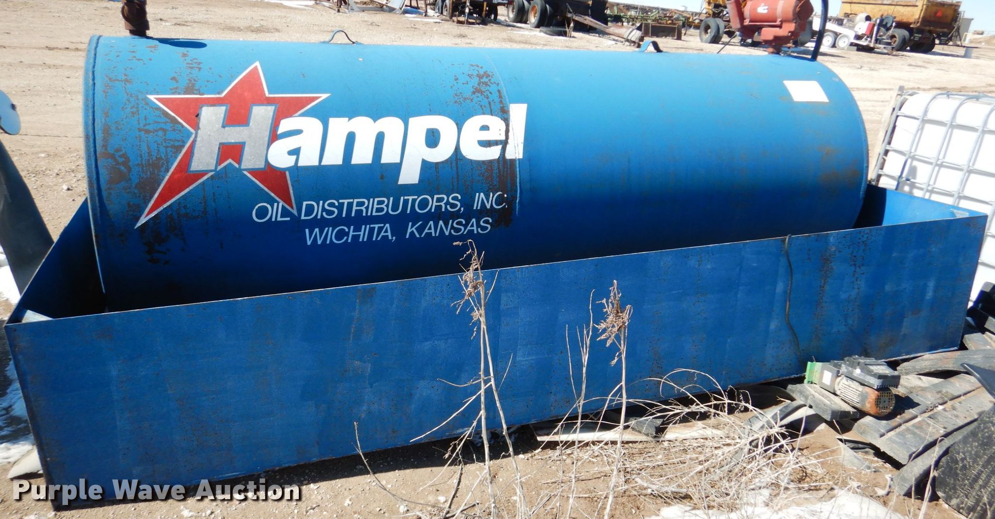 Purple Wave is selling a used Fuel and Lube in Kansas. This item is a Fuel tank with the following: 11'L x 48" diameter, 875 gallon capacity, Fill-Rite 110V pump, Hose and nozzle, 12' x 6' containment