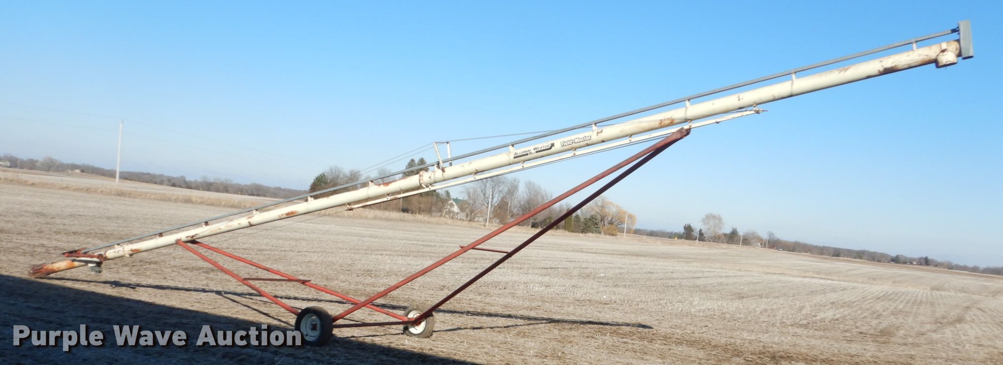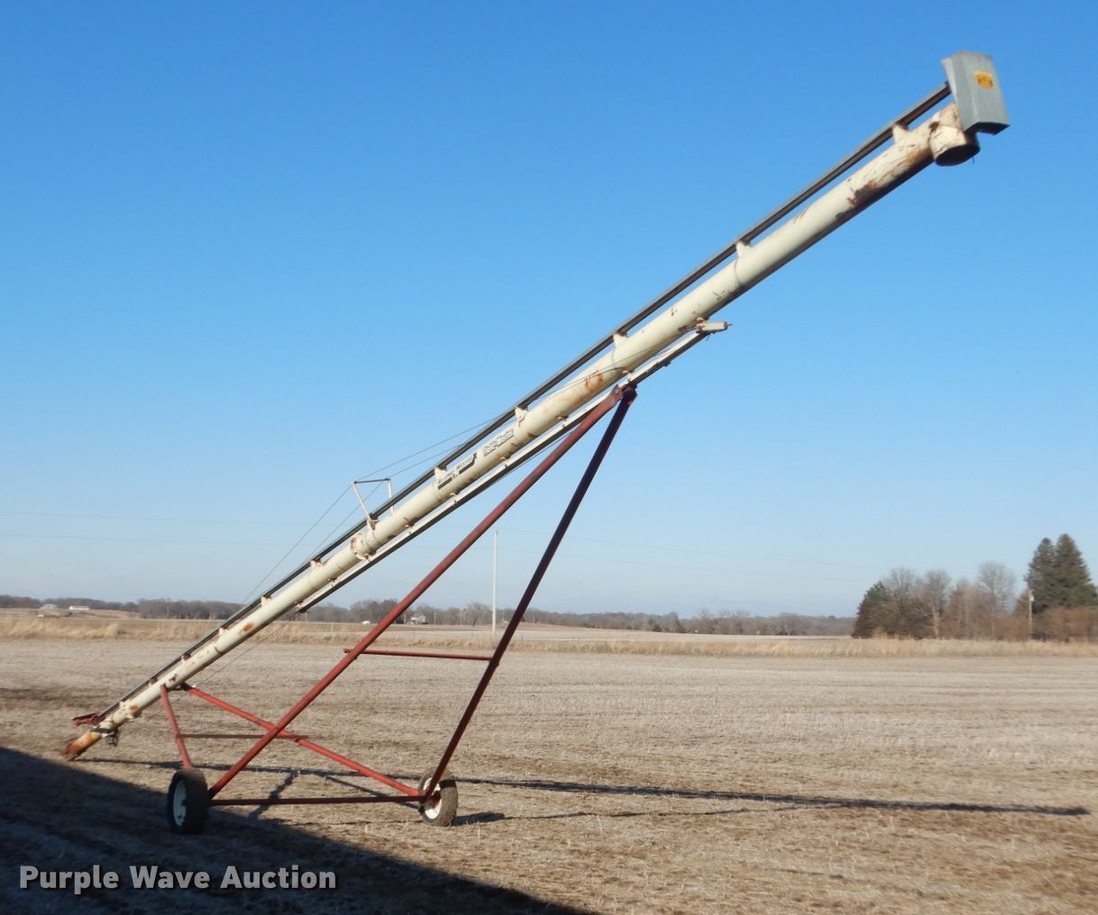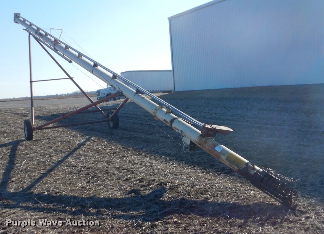 Purple Wave is selling a used Auger or Conveyor in Iowa. This item is a Alloway-Westgo grain auger with the following: 52'L x 10" diameter, 540 PTO, 205/55R15 tires