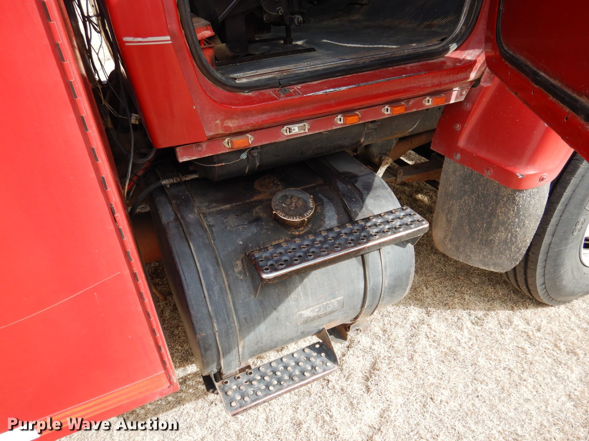 1984 Ford 8000 service truck. 387,453 miles on odometer, Caterpillar 3208 10.4L V8 diesel engine, Eaton Fuller 10 speed manual transmission, Single axle, Heat, Brake controller, PTO, Knapheide utility bed, American Industrial TUK13030HGE air compressor Honda GX390 gas engine, Hose reels, Auxiliary fuel tank 800 gallon capacity, Nozzles, Air driven fuel pump, Spring suspension, Air brakes, 11R22.5 tires, Non-operational PTO. Kansas title. Title distribution may be delayed up to 30 days from verification of funds. 1FDXR80U5EVA33698. Struss Farms LLC Retirement. 15075 210th Ave. WaKeeney, KS 67672