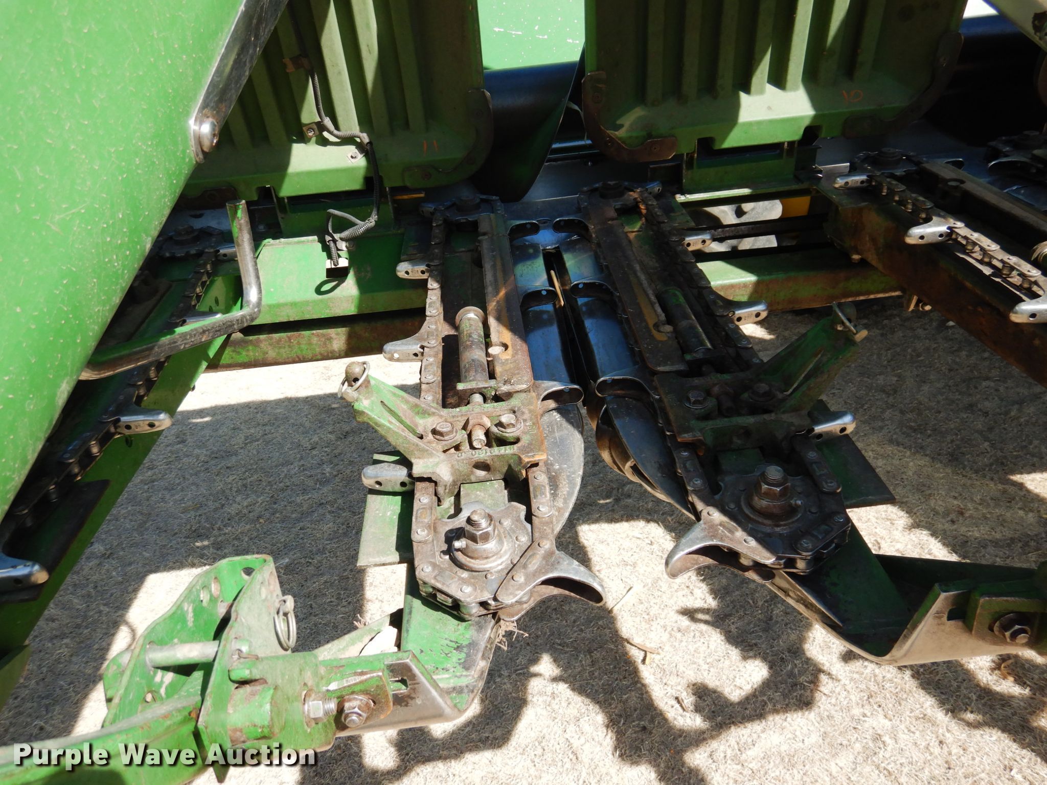 Purple Wave is selling a used Corn or Row Head in Kansas. This item is a John Deere 1293 corn head with the following: 12 rows, 30" row spacing, Single point coupler, Double drivelines, Serial H01293X655842