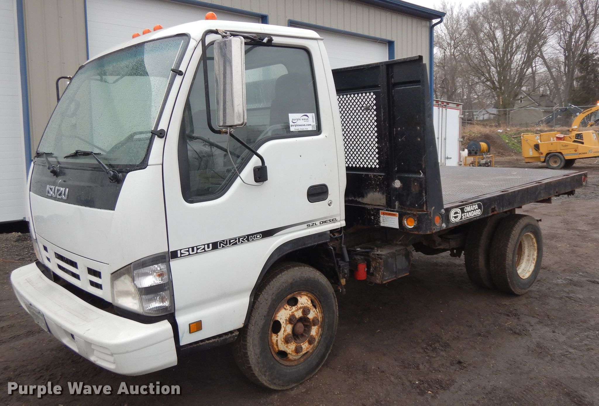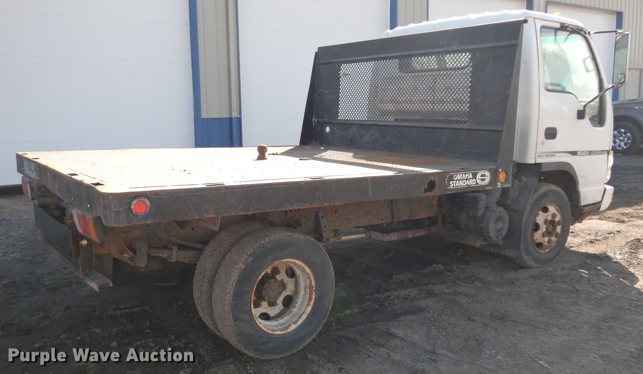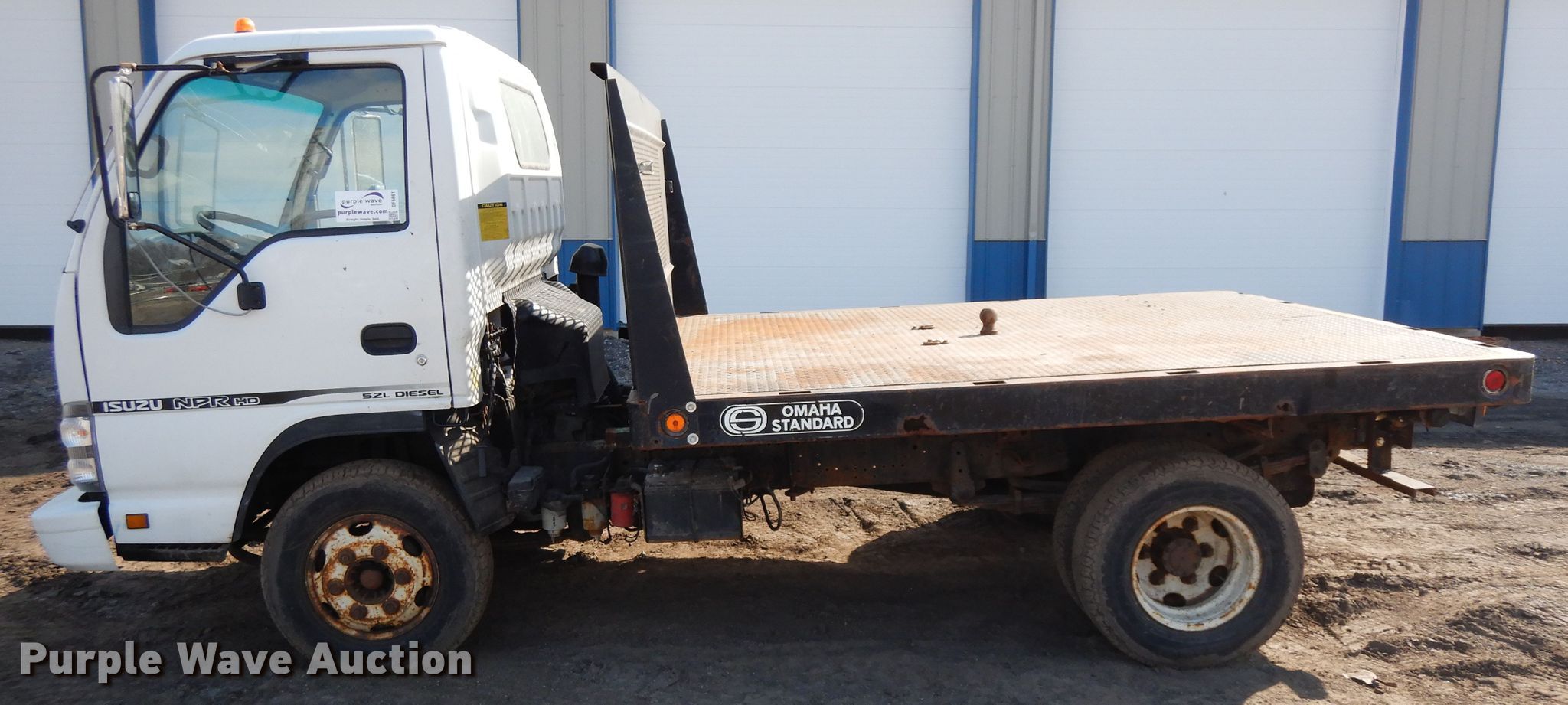Purple Wave is selling a used Flat Bed Truck in Illinois. This item is a 2007 Isuzu NPR flatbed truck with the following: 158,320 miles on odometer, Isuzu four cylinder diesel engine, Automatic transmission, Single axle, AC And heat, Power windows and locks, Heated mirrors, Omaha flatbed, 9'L x 96"W, 110" wheelbase, Hydraulic brakes, Spring suspension, 215/85R16 tires, 110" wheel base