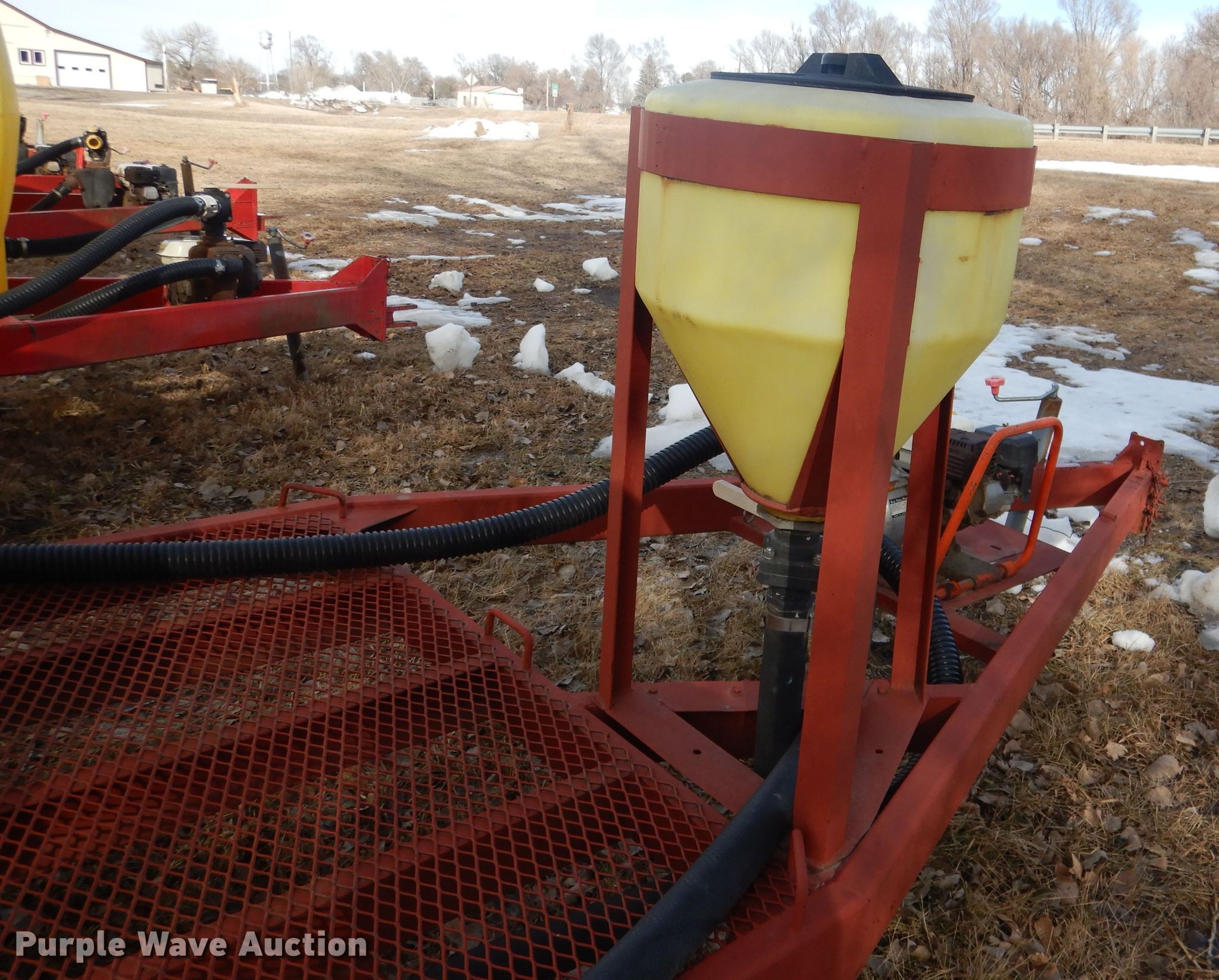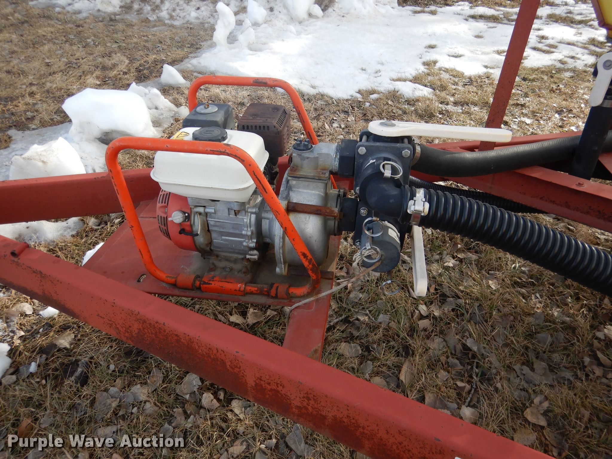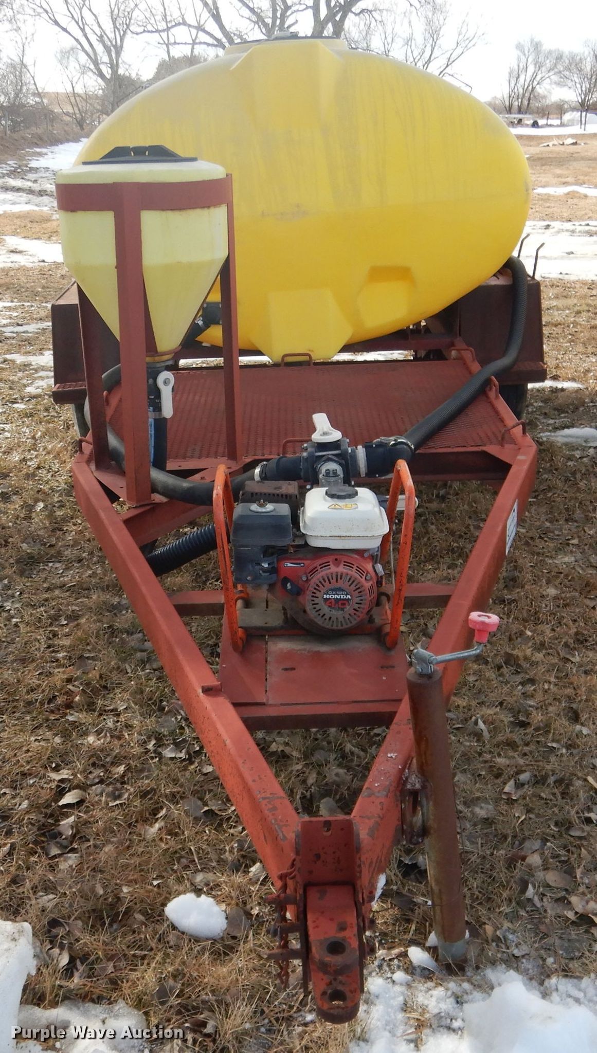 Purple Wave is selling a used Tank Trailer in Nebraska. This item is a Fertilizer tank trailer with the following: 18'L x 88"W overall, 1,000 gallon tank, 15 gallon purge tank, Honda 120 gas engine, 4 HP, Banjo 2" fittings and valves, 2" flex hose, 50" x 58" tote storage area, Three hoop attachment, Tandem axle, Firestone 11-15 tires, Unknown operating condition