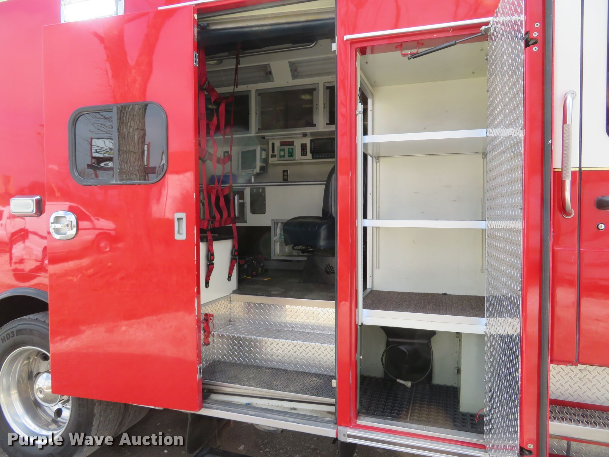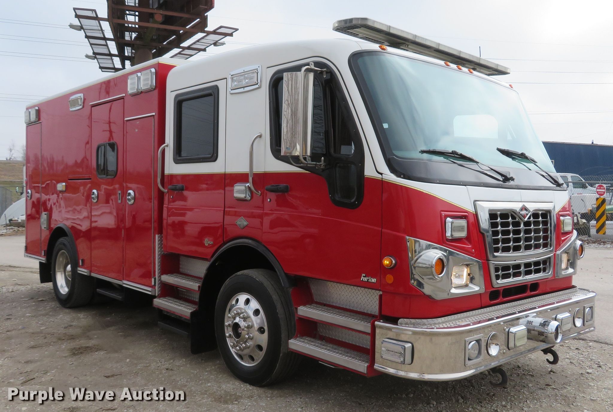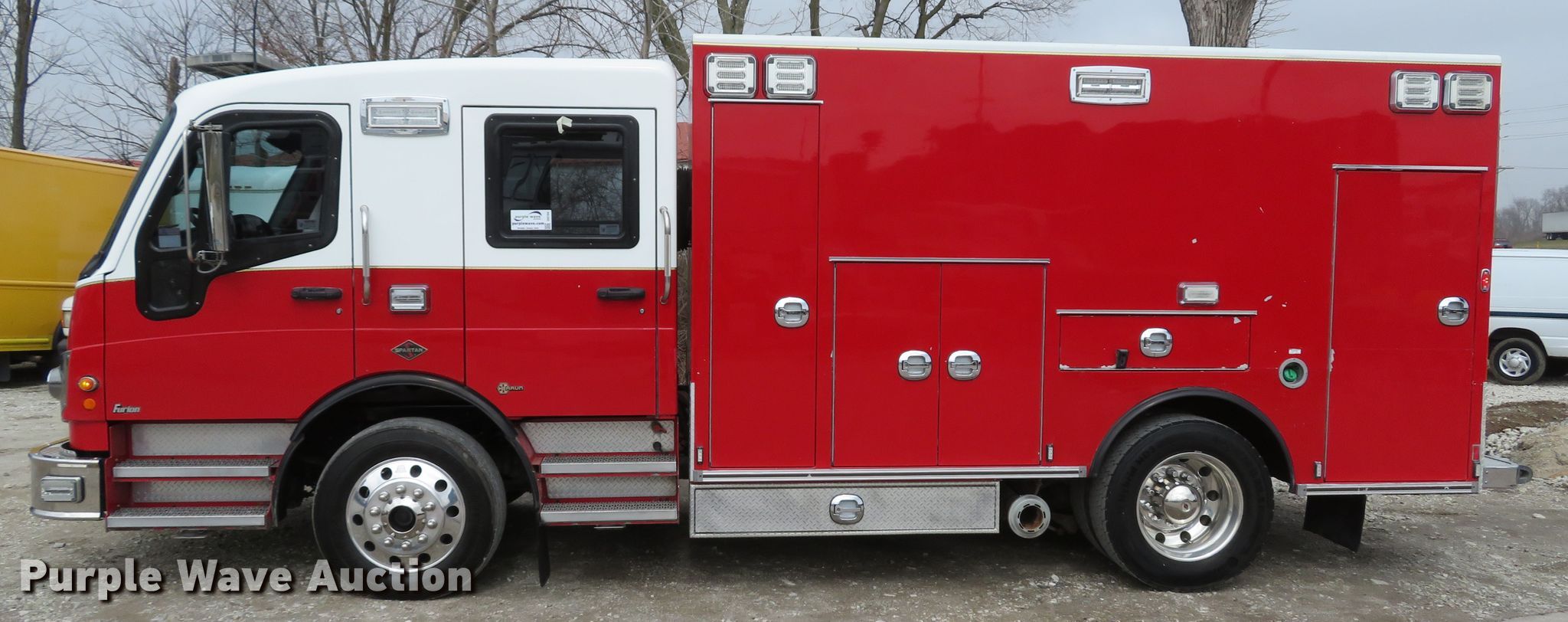 Purple Wave is selling a used Fire Truck or Emergency Vehicle in Missouri. This item is a 2010 Spartan Furion Super Chief ambulance with the following: 125,187 miles on odometer, 11,233 hours on meter, Cummins ISC 8.3L L6 diesel engine, Allison automatic transmission, Single axle, AC and heat, Backup camera, Braun Super Chief ambulance body, Oxygen hookups, Air suspension, Air brakes, 275/70R22.5 tires, Automatic tire chains, GVWR 28,880