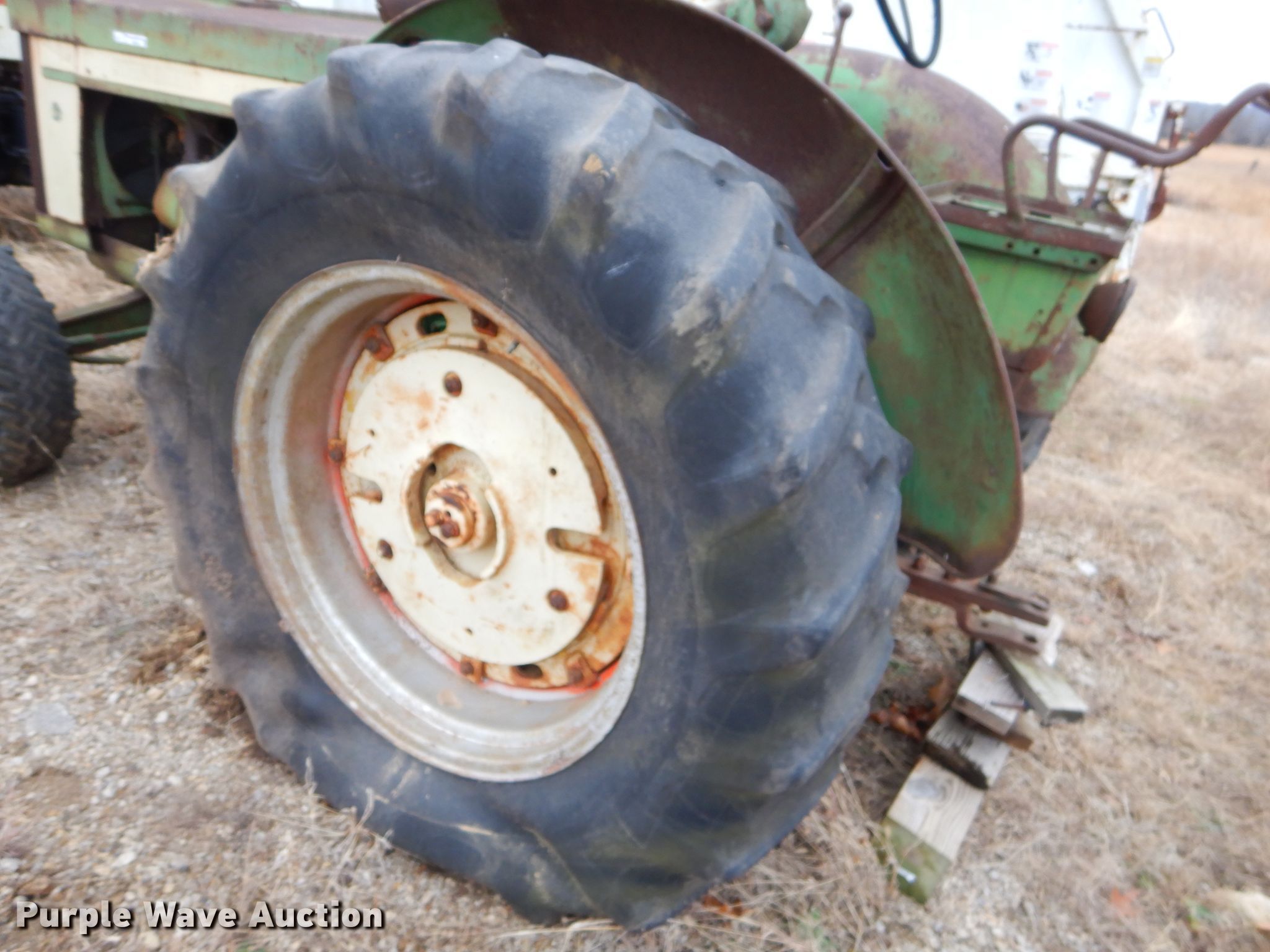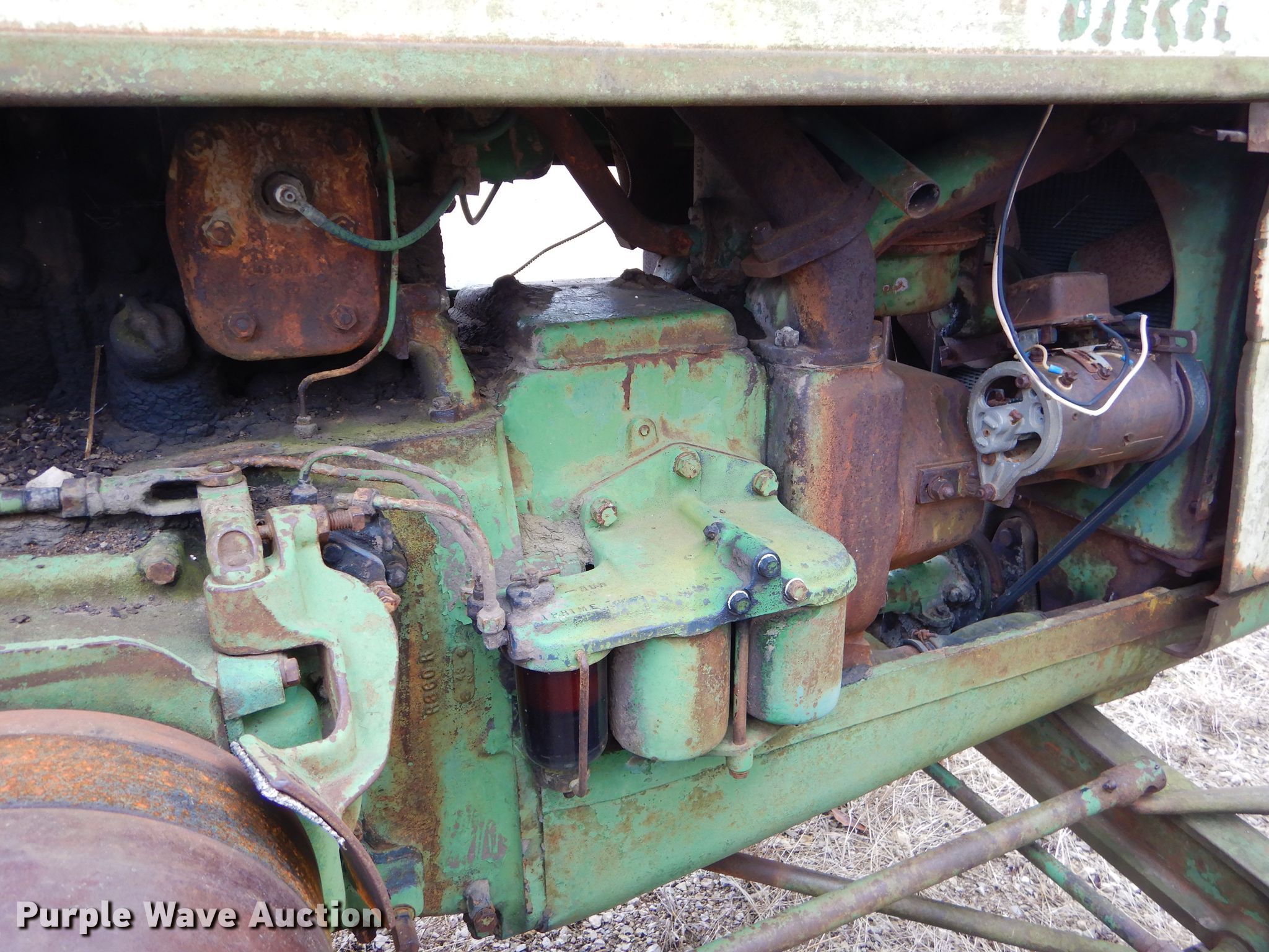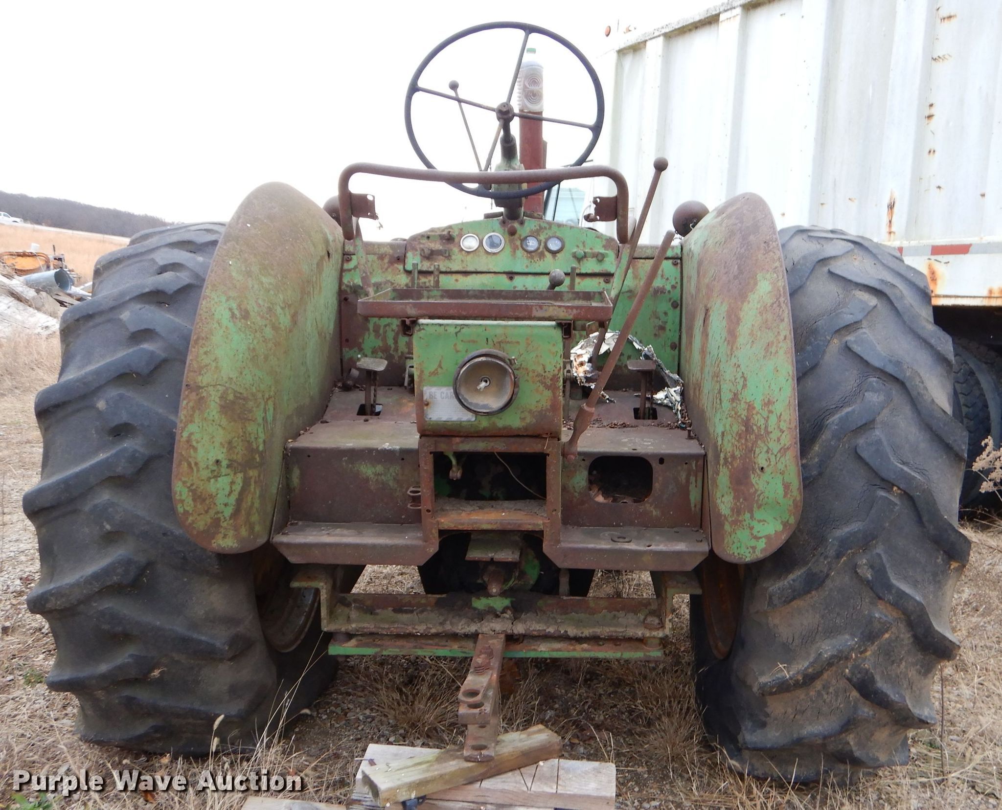 Purple Wave is selling a used Tractor in Kansas. This item is a 1952 John Deere R tractor with the following: John Deere two cylinder diesel engine, Manual transmission, 5F-1R gears, 540 PTO, 85.5" wheelbase, 18.4-34 rear tires, Non-operational unit
