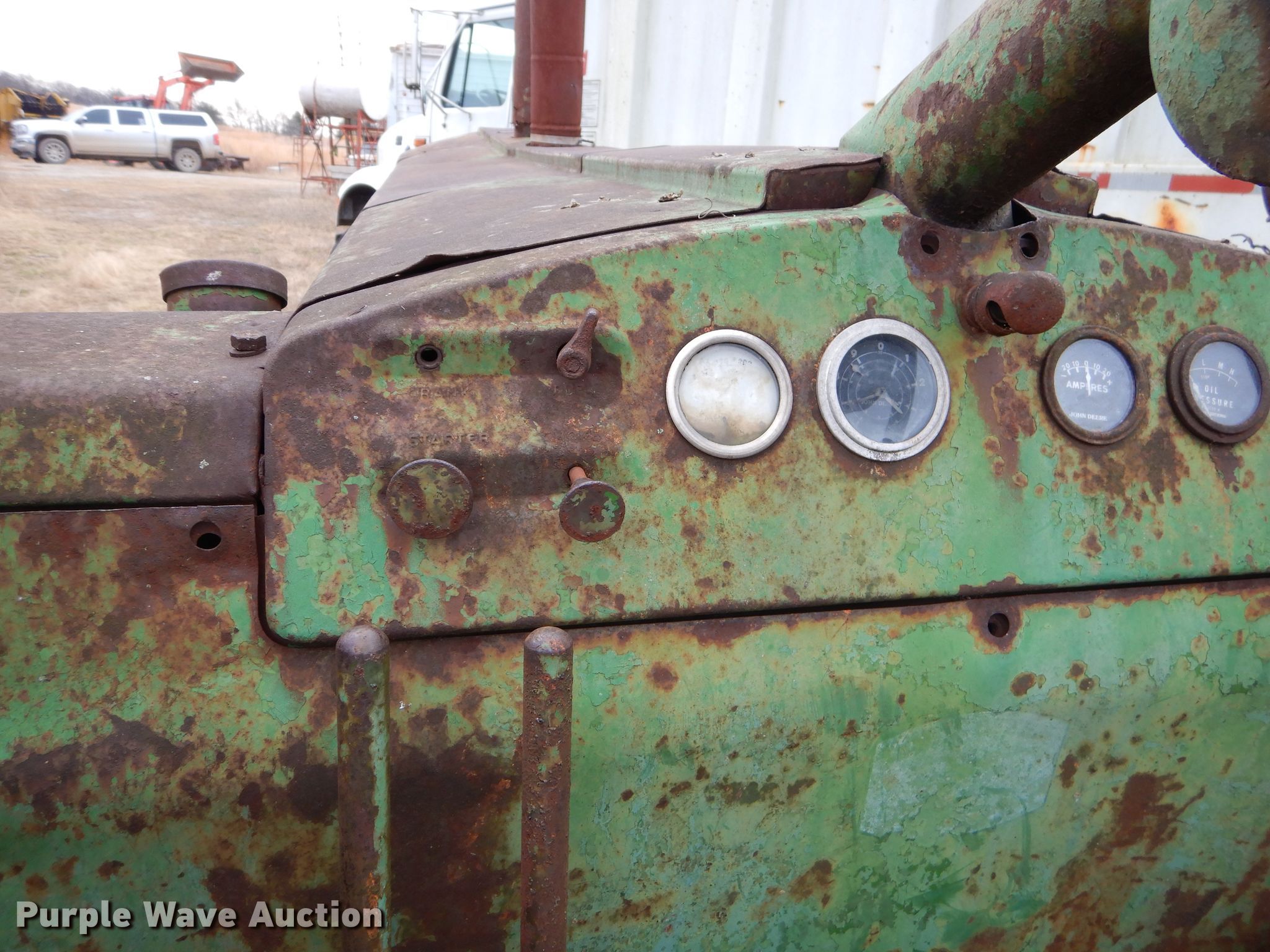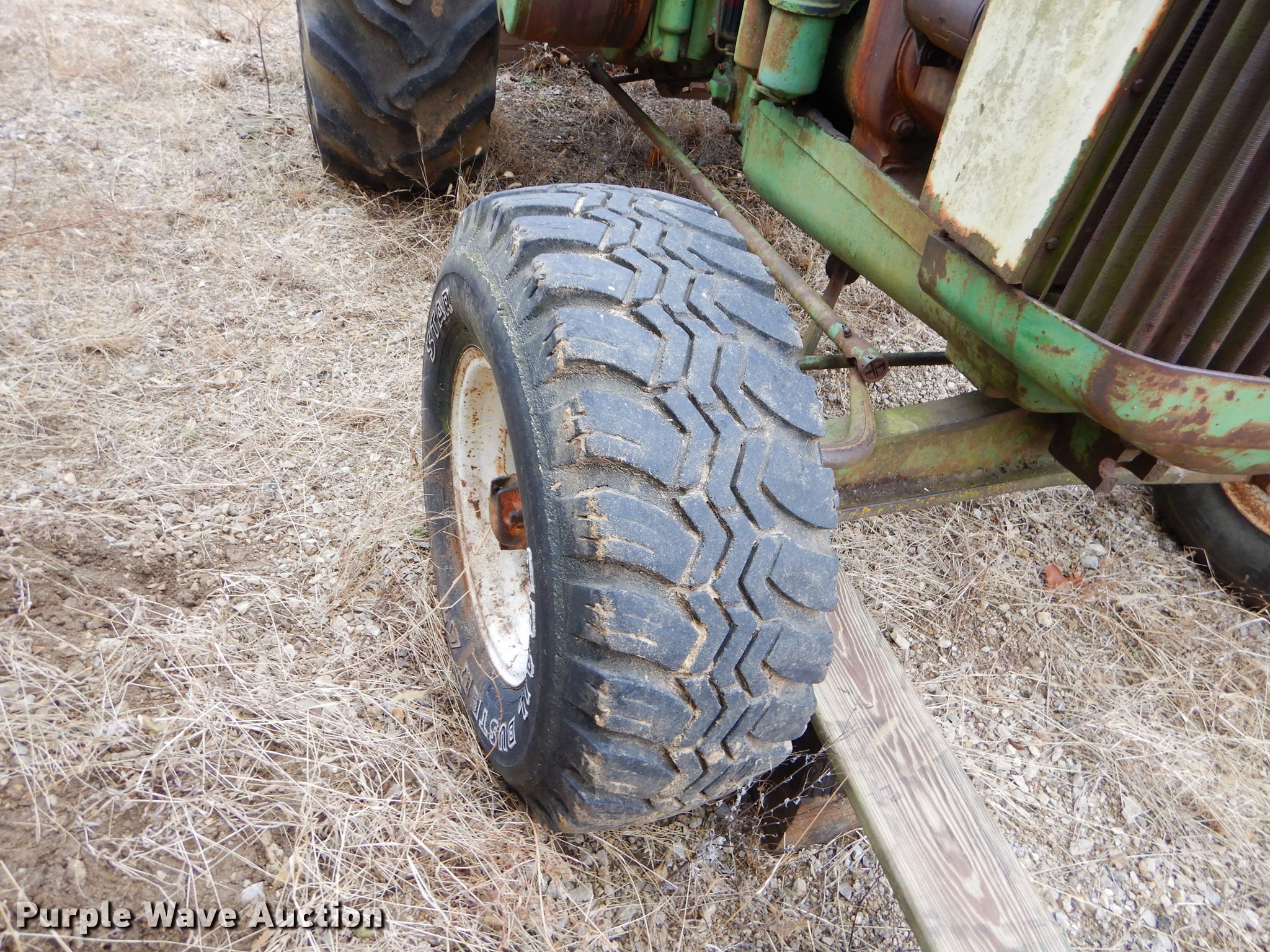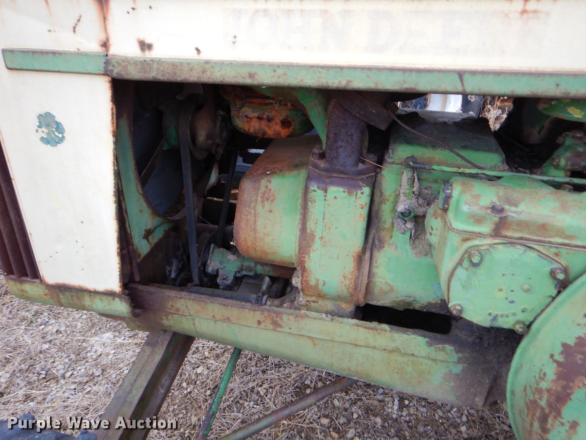 Purple Wave is selling a used Tractor in Kansas. This item is a 1952 John Deere R tractor with the following: John Deere two cylinder diesel engine, Manual transmission, 5F-1R gears, 540 PTO, 85.5" wheelbase, 18.4-34 rear tires, Non-operational unit