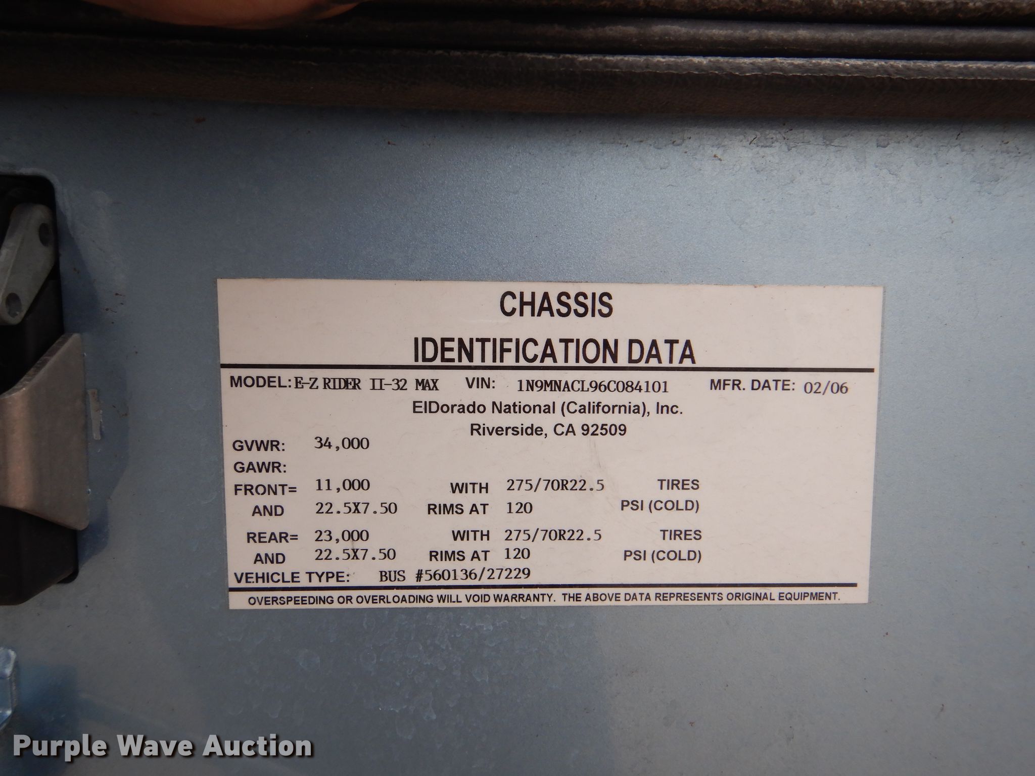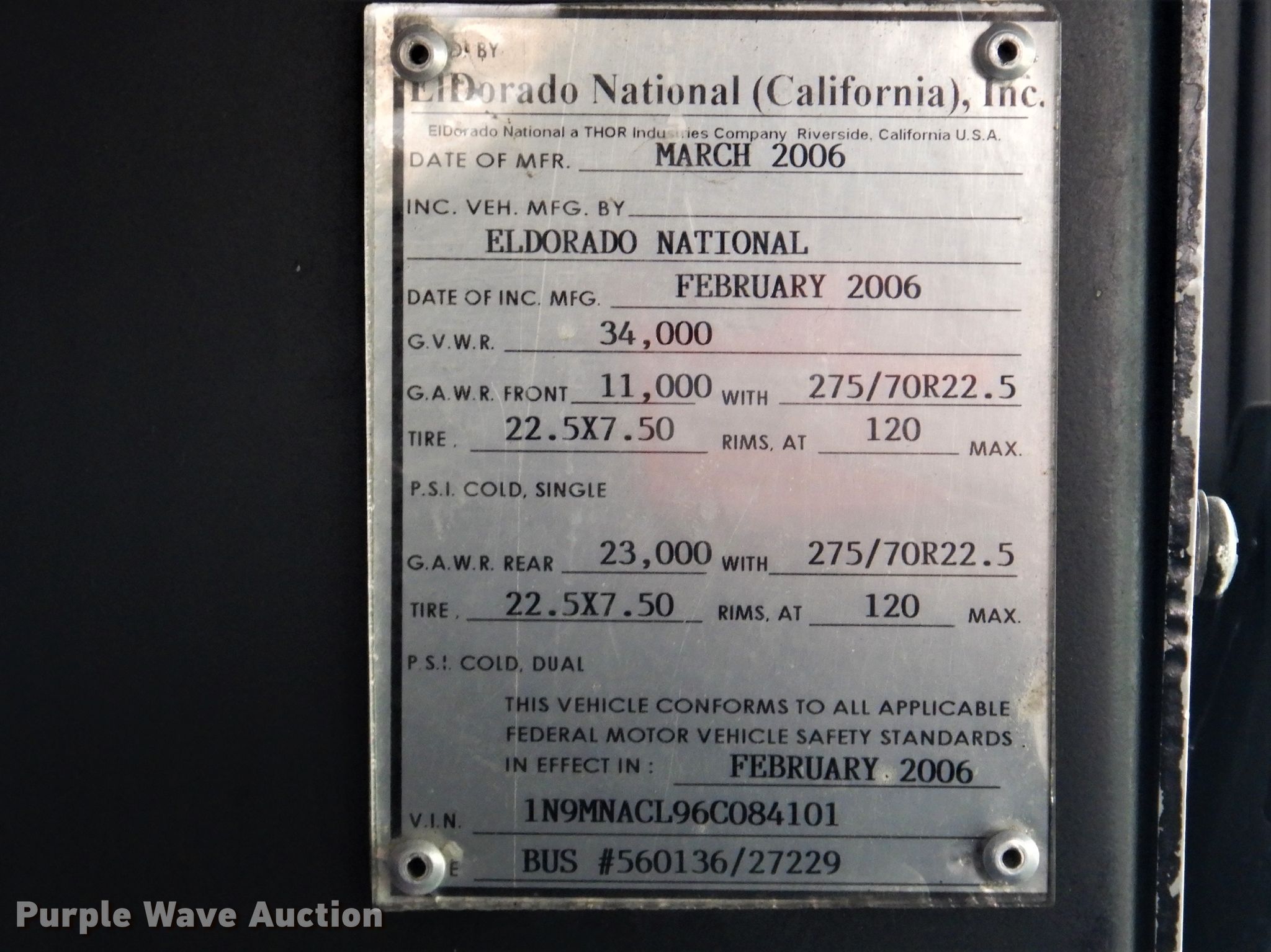 Take a look at this used 2006 El Dorado EZ Rider II coach bus being sold on April 15th, 2020 in the SOLD! April 15 Vehicles and Equipment Auction made by El Dorado. Take a look at all of the item information below or take a look at similar auctions for Transit Vehicles.