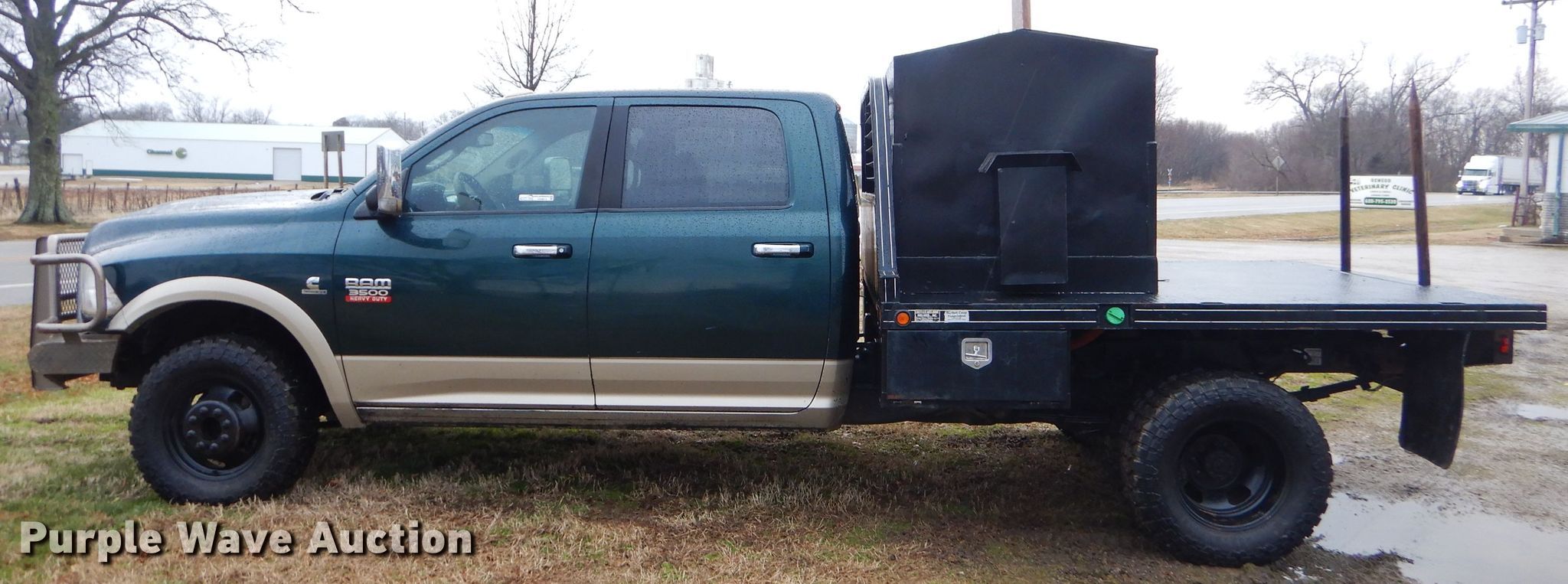 Purple Wave is selling a used 3/4 or 1 Ton Pickup or Van in Kansas. This item is a 2011 Dodge Ram 3500 Crew Cab bale bed pickup truck with the following: 180,845 miles on odometer