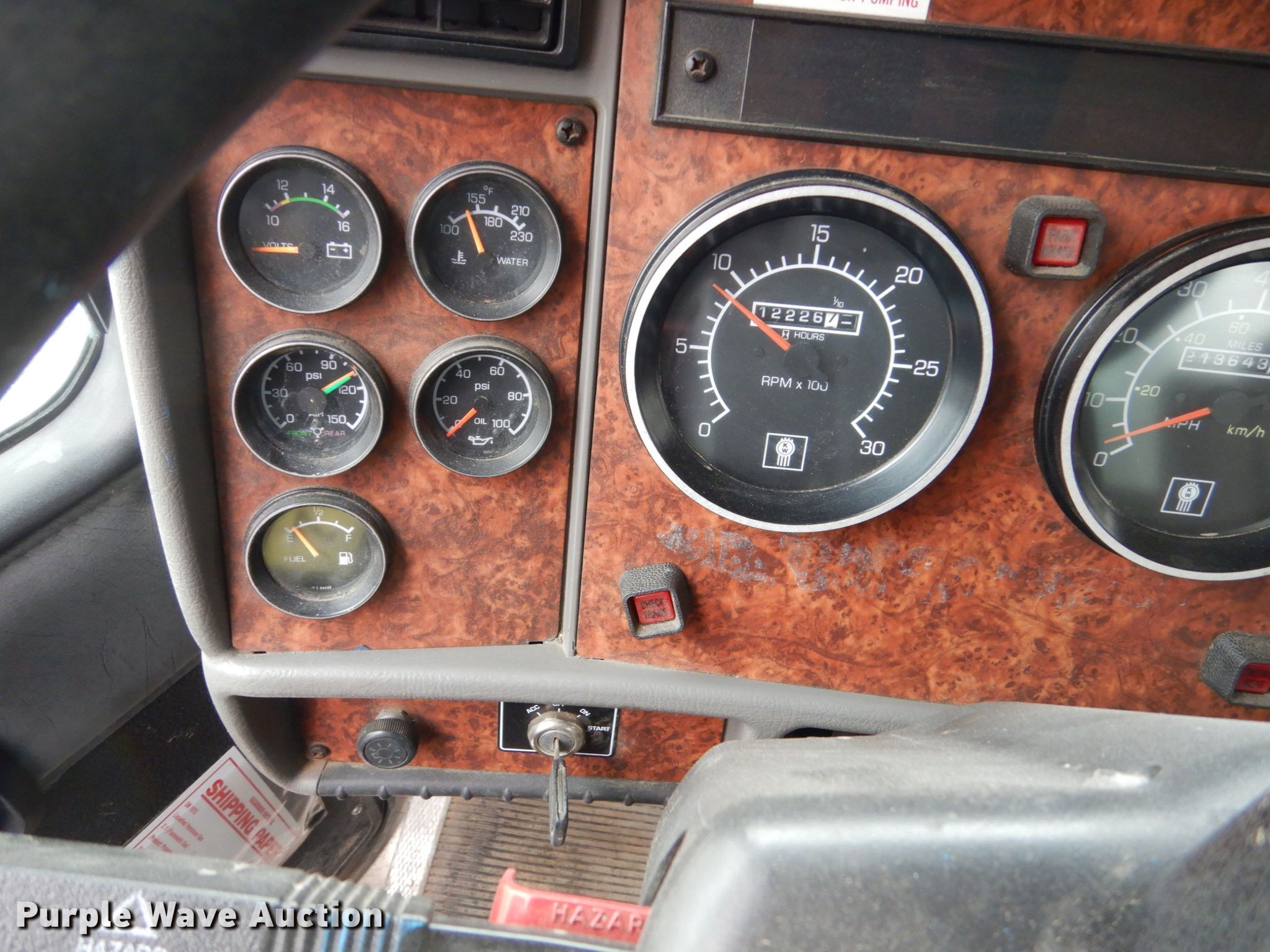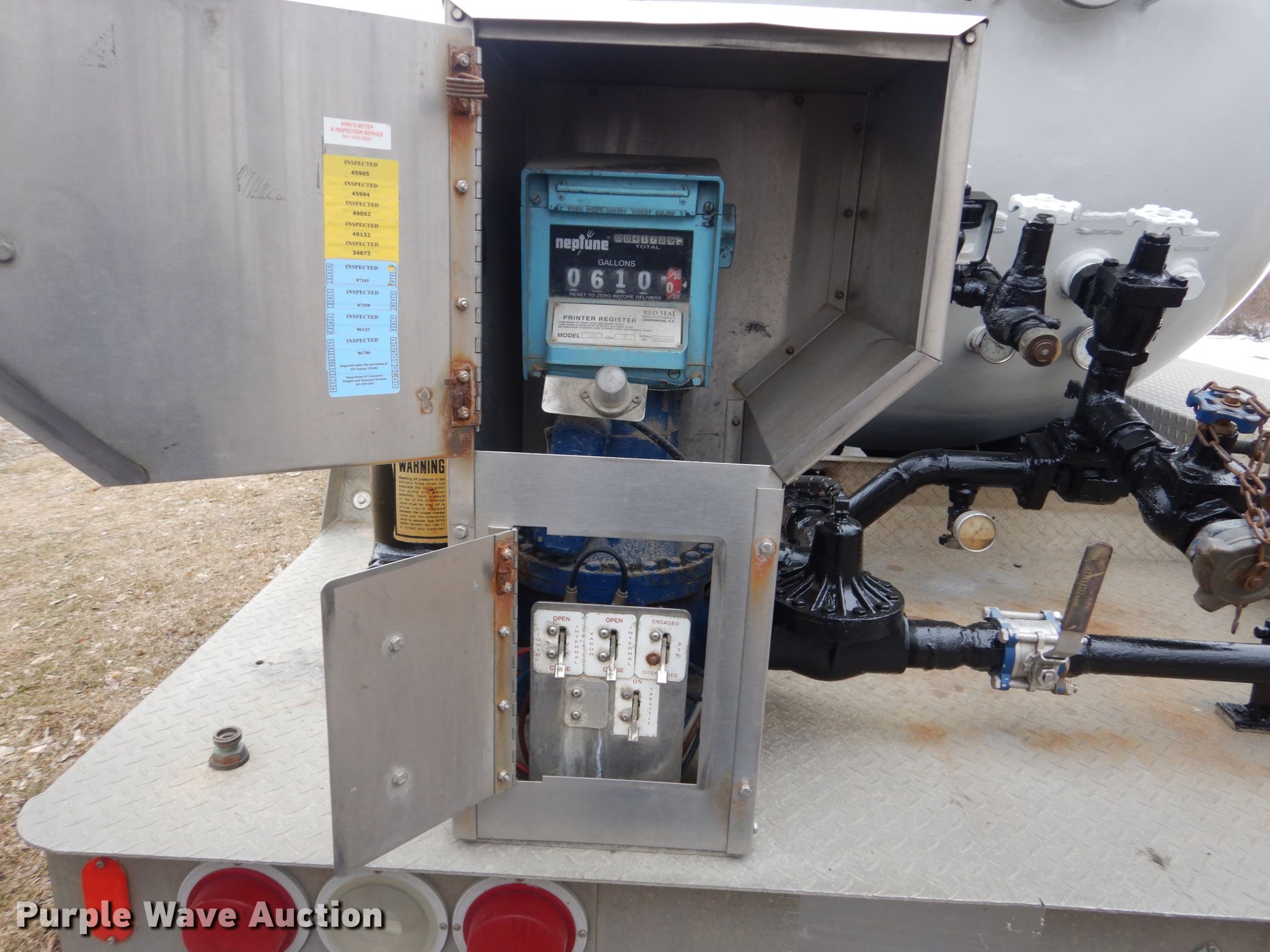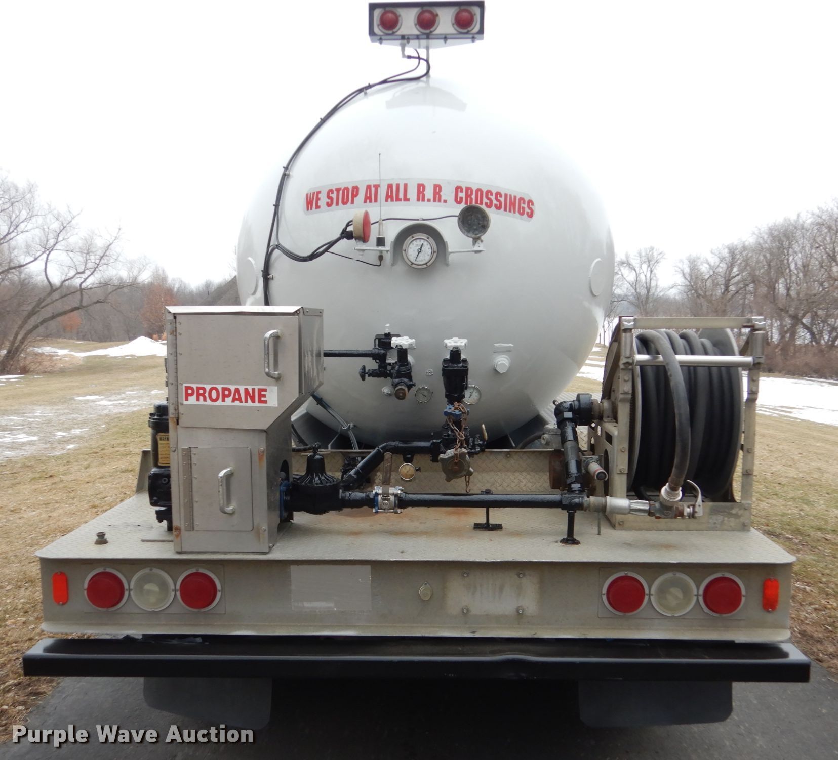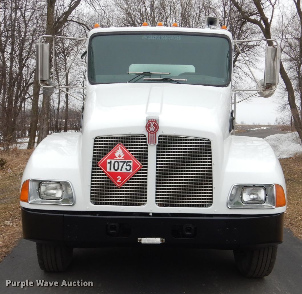 Purple Wave is selling a used Fuel Truck in Minnesota. This item is a 2004 Kenworth T300 propane delivery truck with the following: 213,643 miles on odometer, 12,226 hours on meter, Caterpillar C7 7.2L L6 diesel engine, Automatic transmission, Tandem axle, AC and heat, Cruise, PTO, Arrow tank bed, 16'L, Hose reels, Neptune metered pump, Nozzles, Spring suspension, Air brakes, 11R22.5 tires, 235/75R17.5 tag axle tires, GVWR 33,000 lbs