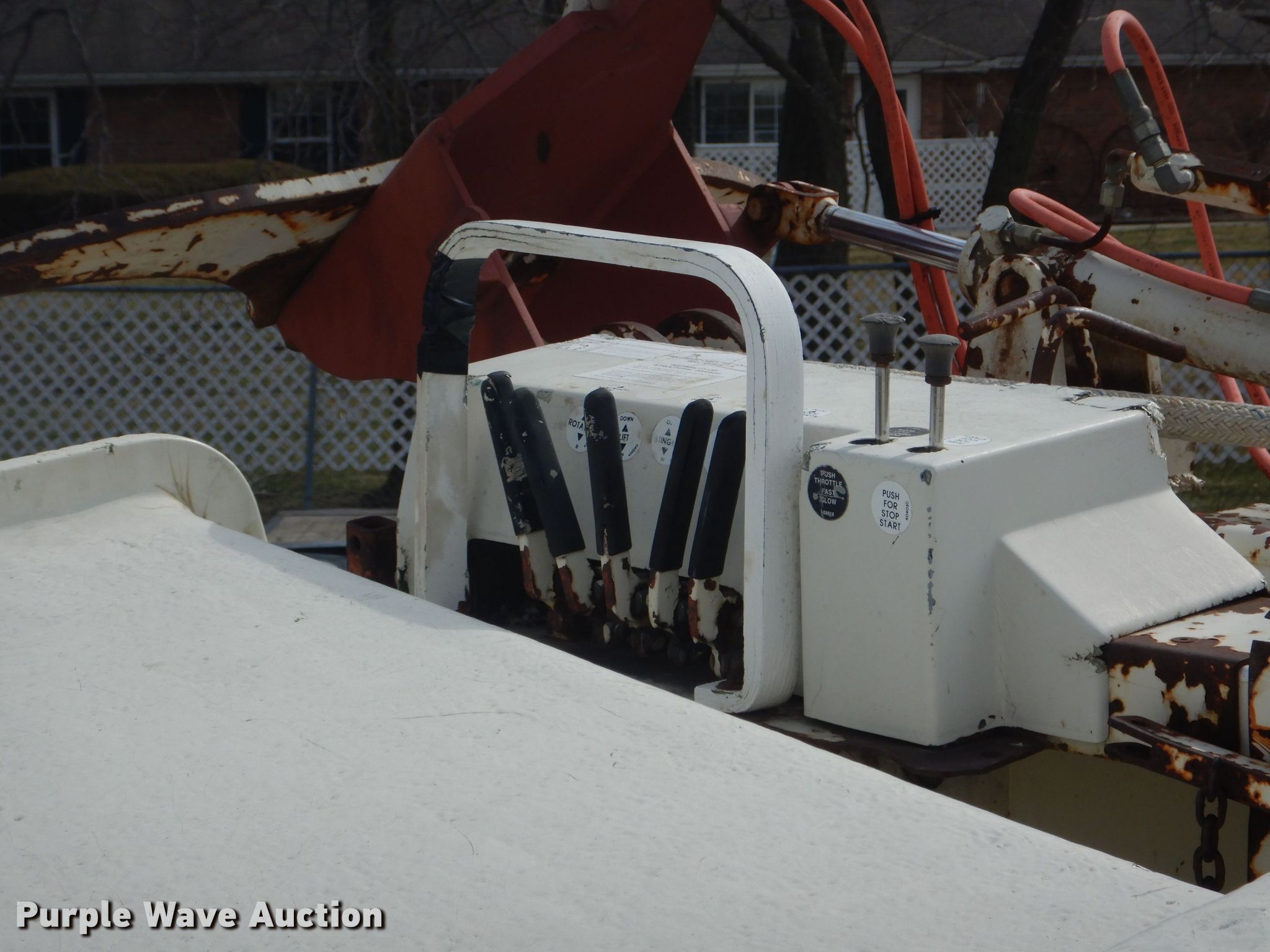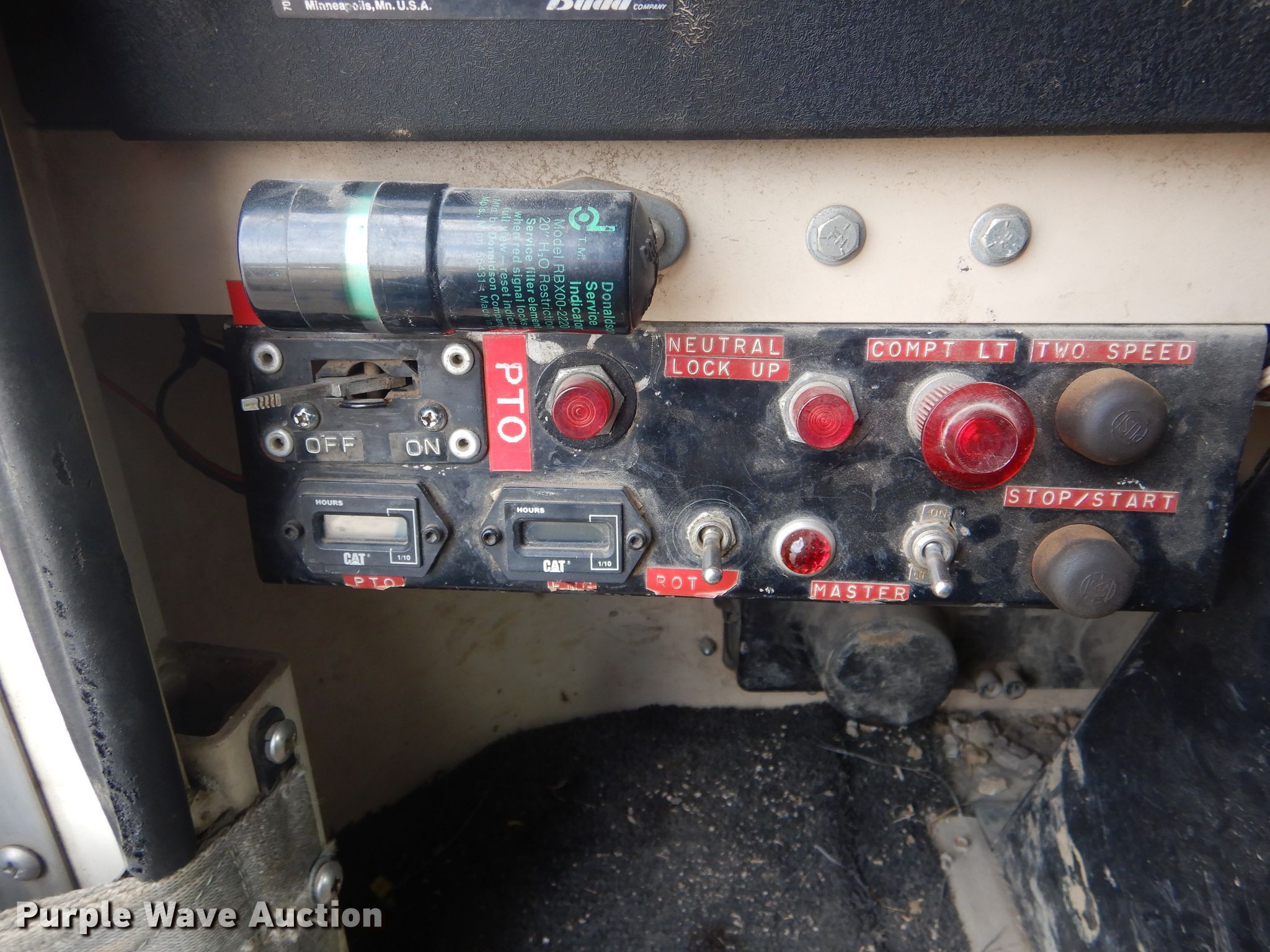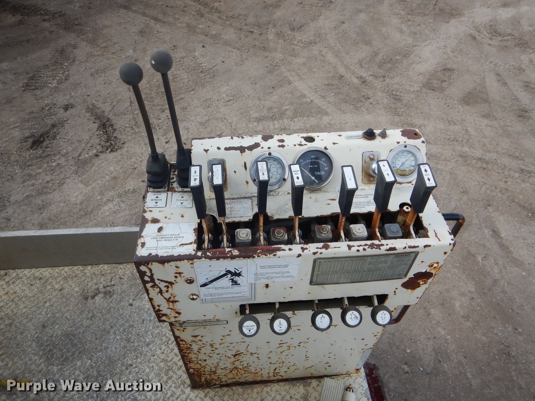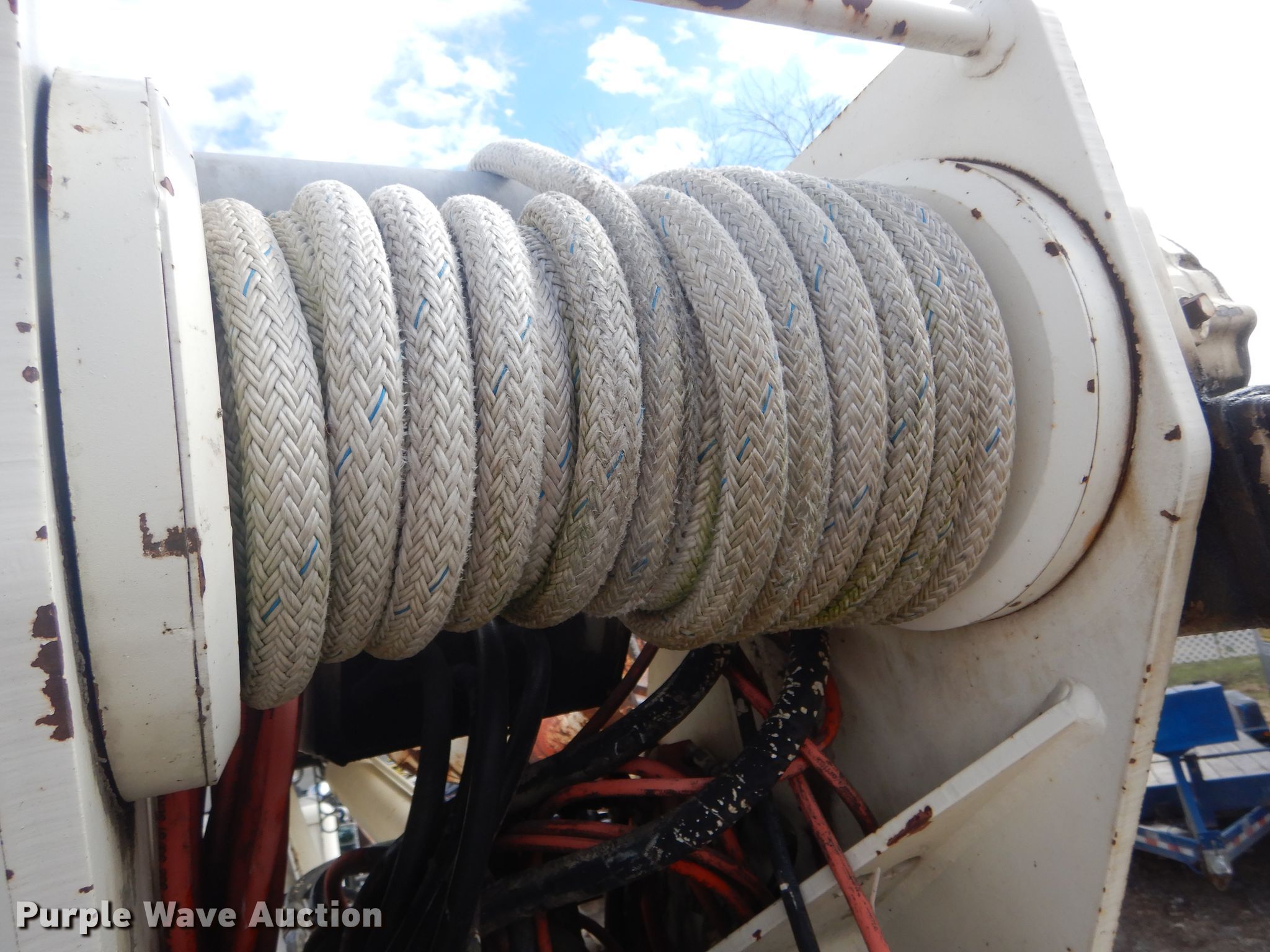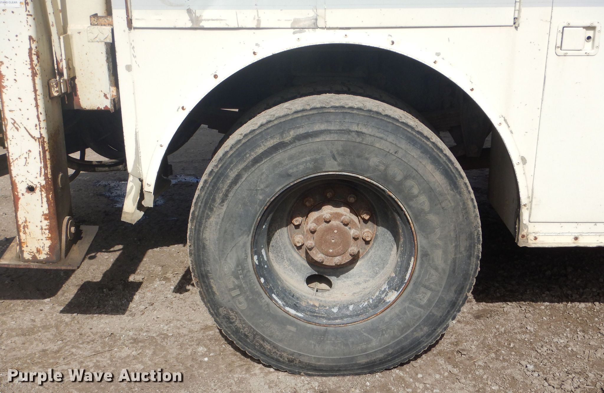 Purple Wave is selling a used Digger Derrick Truck in Iowa. This item is a 1988 Pierce digger derrick truck with the following: 75,480 miles on odometer, Caterpillar 3208 V8 diesel engine, Automatic transmission, Single axle, Four wheel drive, Heat, PTO, 11'L utility bed, Telect Commander 4500 telescopic boom, 14,350 lbs maximum lift capacity, 45' maximum lift height, Man basket, Platform and ground controls, Material handler, Pole guide, 20" diameter auger, 163" wheelbase, Spring suspension, Air brakes, 315/80R22.5 front tires, 12R22.5 rear tires, GVWR 36,400 lbs, Outrigger leak