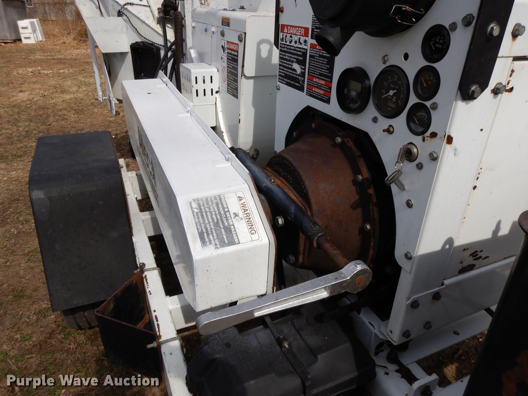 Purple Wave is selling a used Wood Chipper or Stump Grinder in Kansas. This item is a 2008 Altec DC-1217-CFD wood chipper with the following: 502 hours on meter, Kubota V3600T four cylinder diesel engine, Manual adjustable discharge chute, 12" chipper drum, 245/75R16 tires, GVWR 6,084 lbs