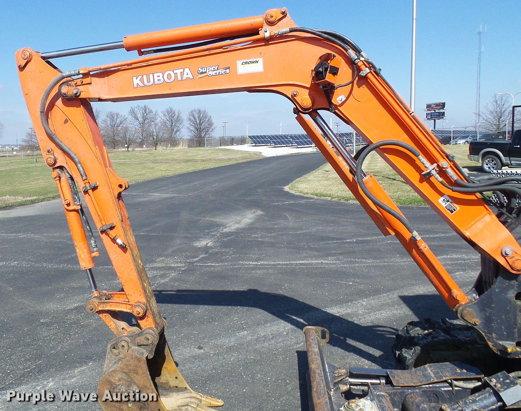Purple Wave is selling a used Mini Excavator in Missouri. This item is a Kubota KX121-3SS mini excavator with the following: 5,541 hours on meter, Kubota four cylinder diesel engine, Two speed hydrostatic transmission, Standard boom, Tag 16"W bucket, Bolt-on cutting edge, (4) teeth, Auxiliary hydraulics, 14" rubber tracks, Serial 31015
