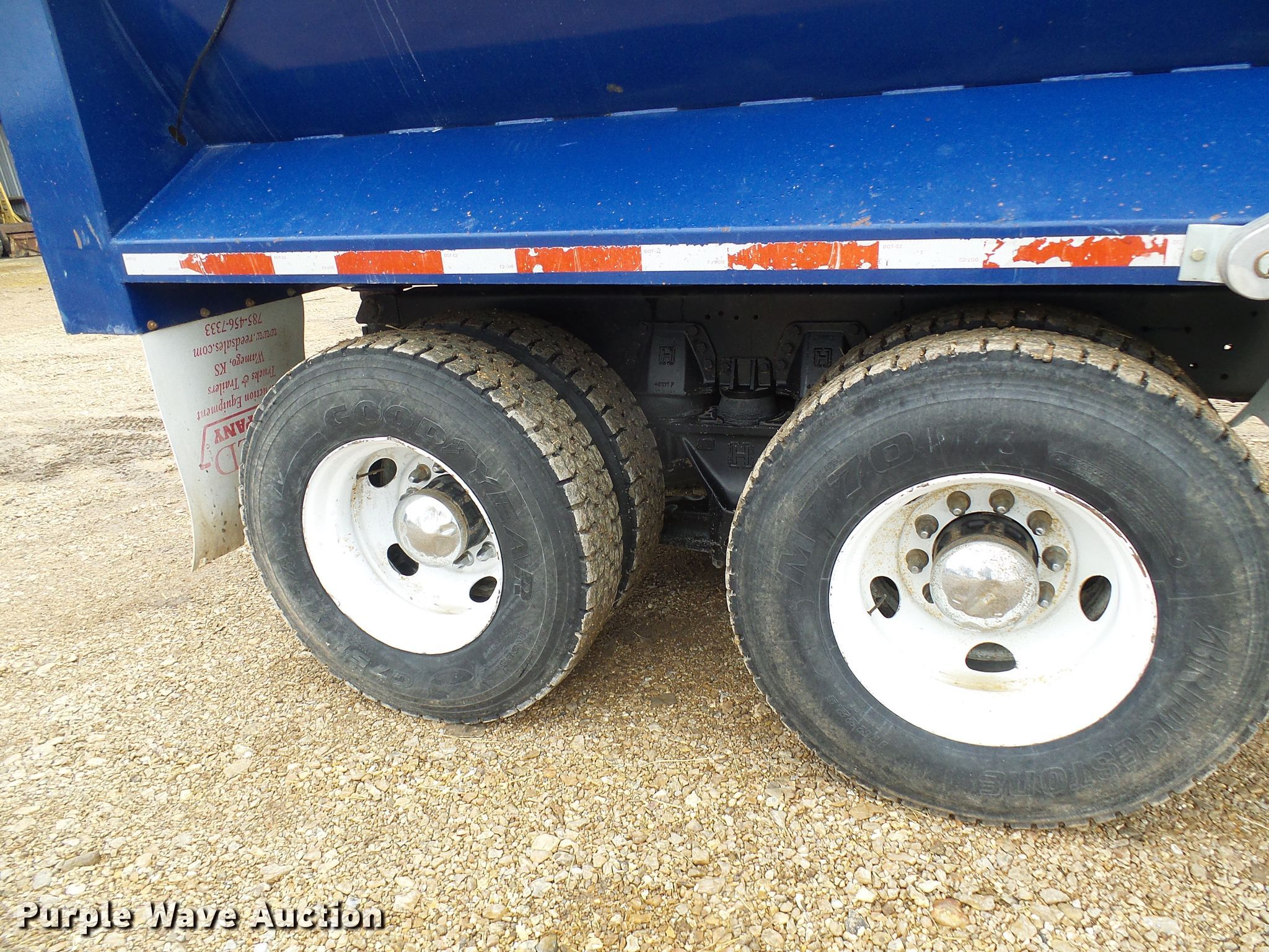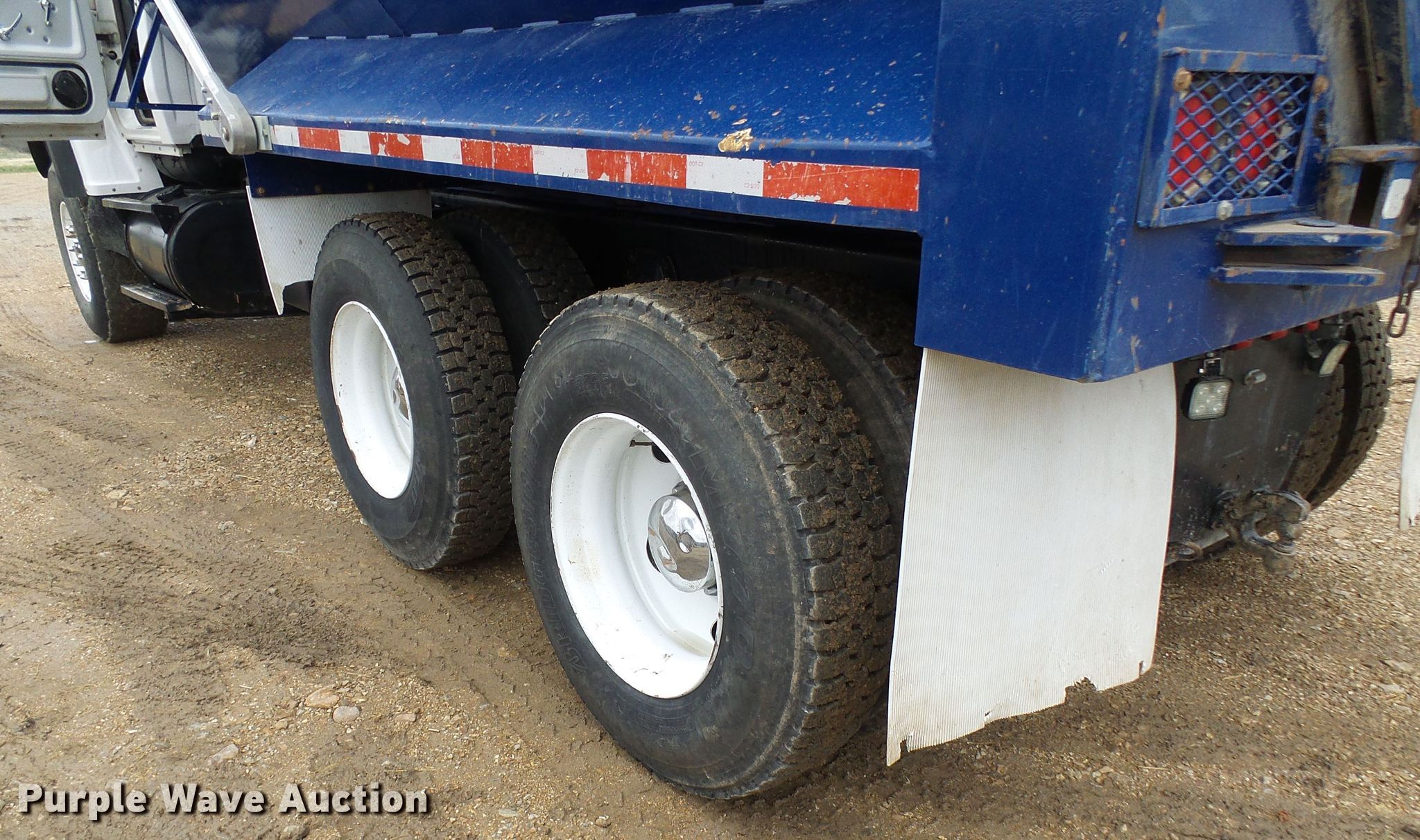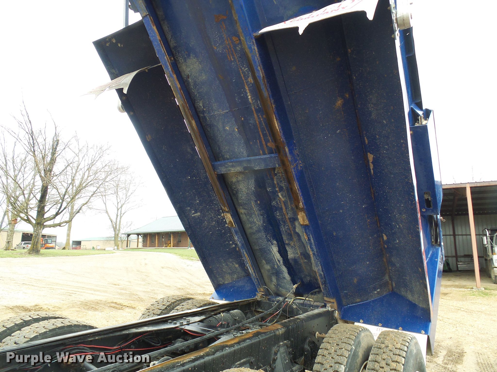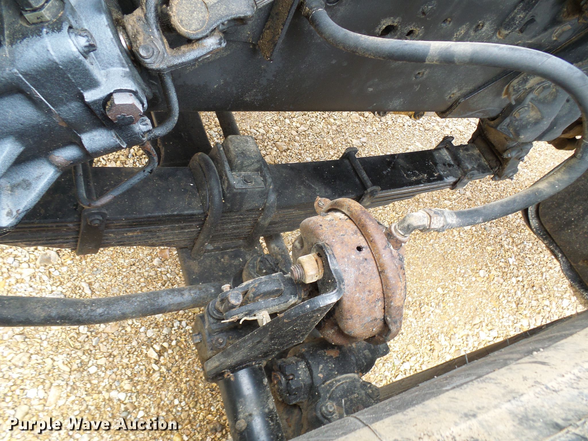 Purple Wave is selling a used Construction Dump Truck in Missouri. This item is a 1997 Ford L9000 dump truck with the following: 161,022 miles on odometer, Cateprillar 3306 10.5L L6 diesel engine, Eaton Fuller Road Ranger RTO-11708LL eight speed manual transmission, Lo-Lo, Tandem axle, Inter-axle differential lock, AC and heat, Brake controller, PTO, 16'L x 8'W steel barrel bed, 4' side height, Roll tarp, Single ram hoist, Air operated end gate, Spring over walking beam suspension, Air brakes, 425/65R22.5 front tires, 11R22.5 rear tires, Roll tarp needs to be replaced