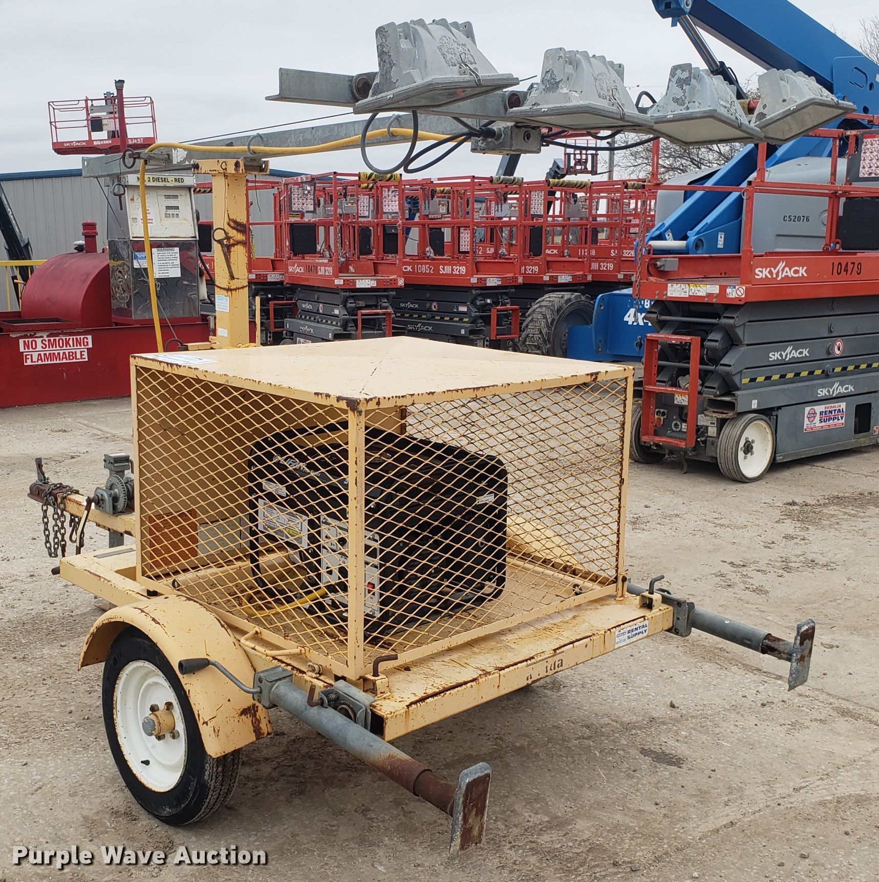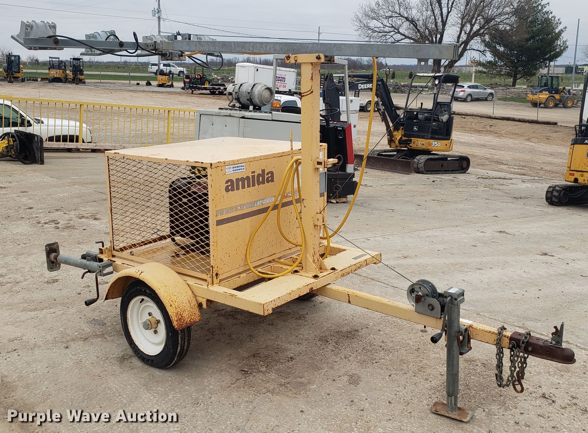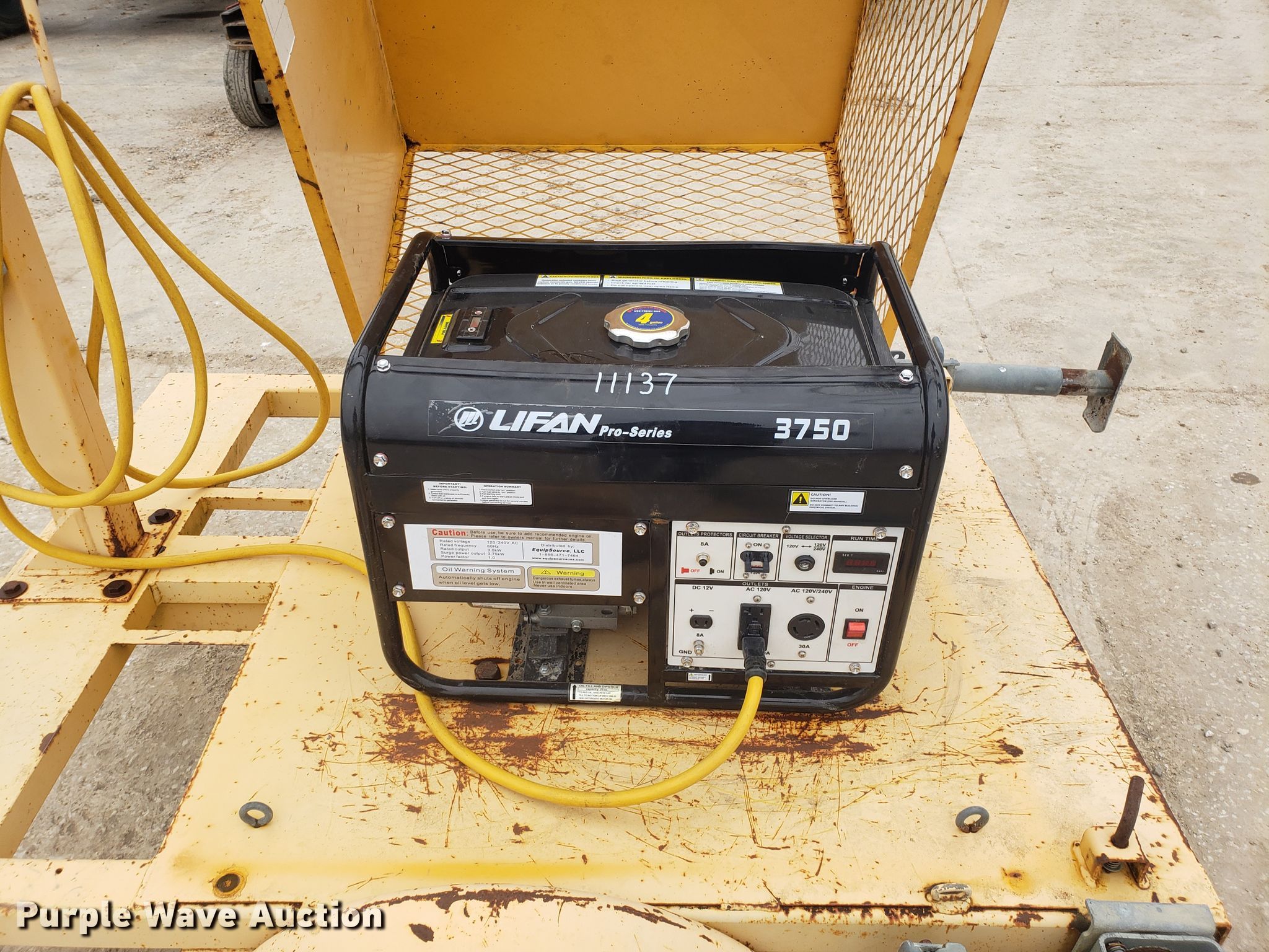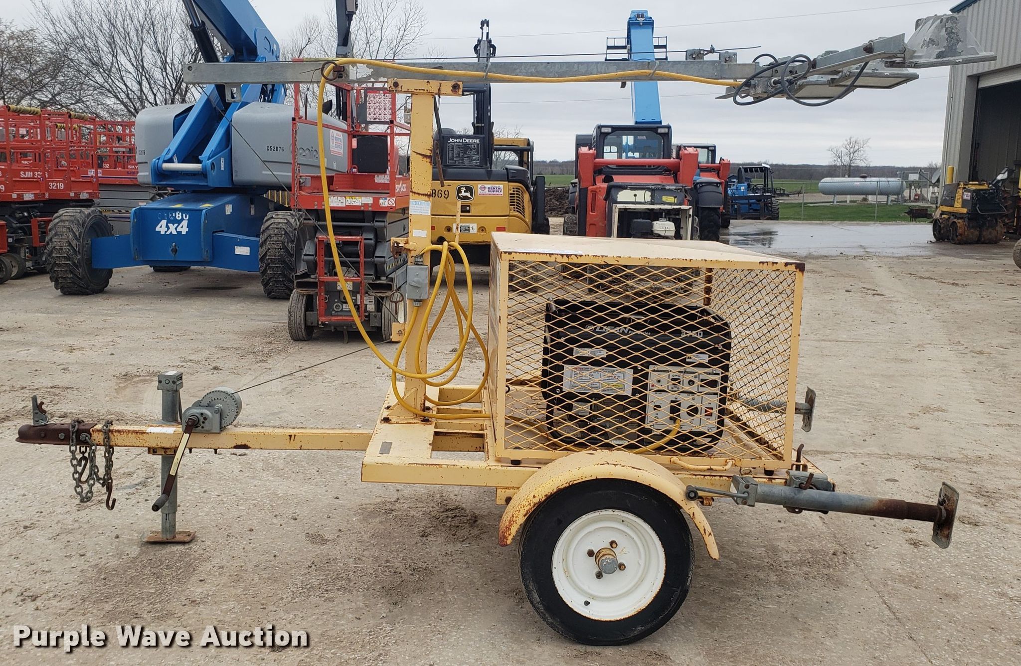 Purple Wave is selling a used Light Plant in Missouri. This item is a Amida light plant with the following: Lifan generator, 3,750 watts, Single phase, Fuel tank, (4) light bulbs, Manual tower hoist, 2" ball hitch, 4.80-12 tires, Serial 950429113