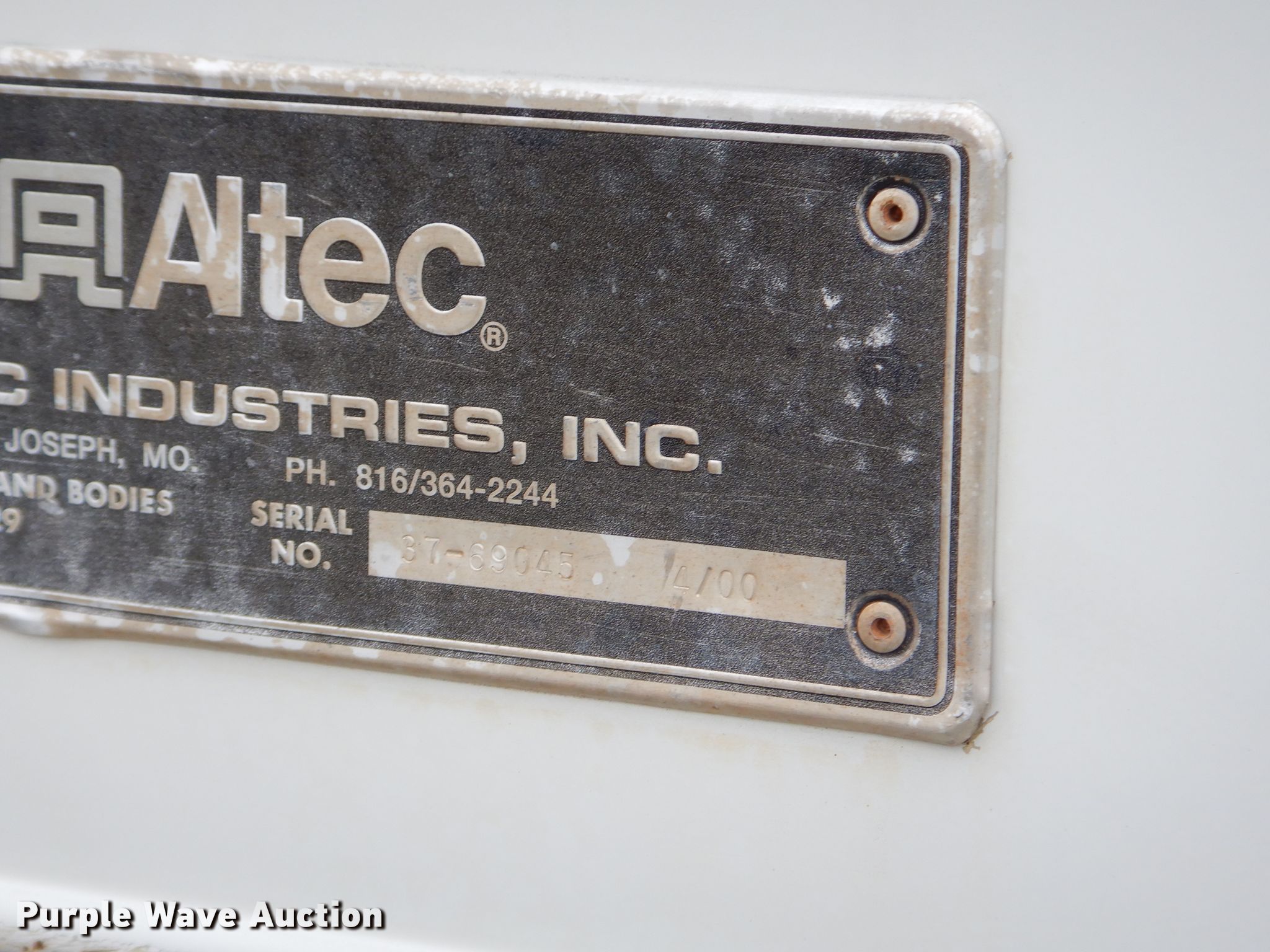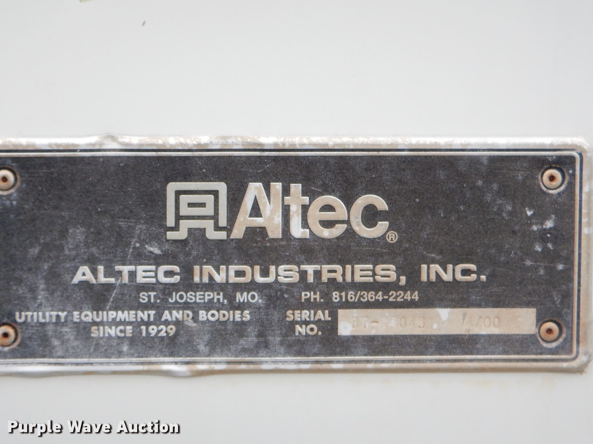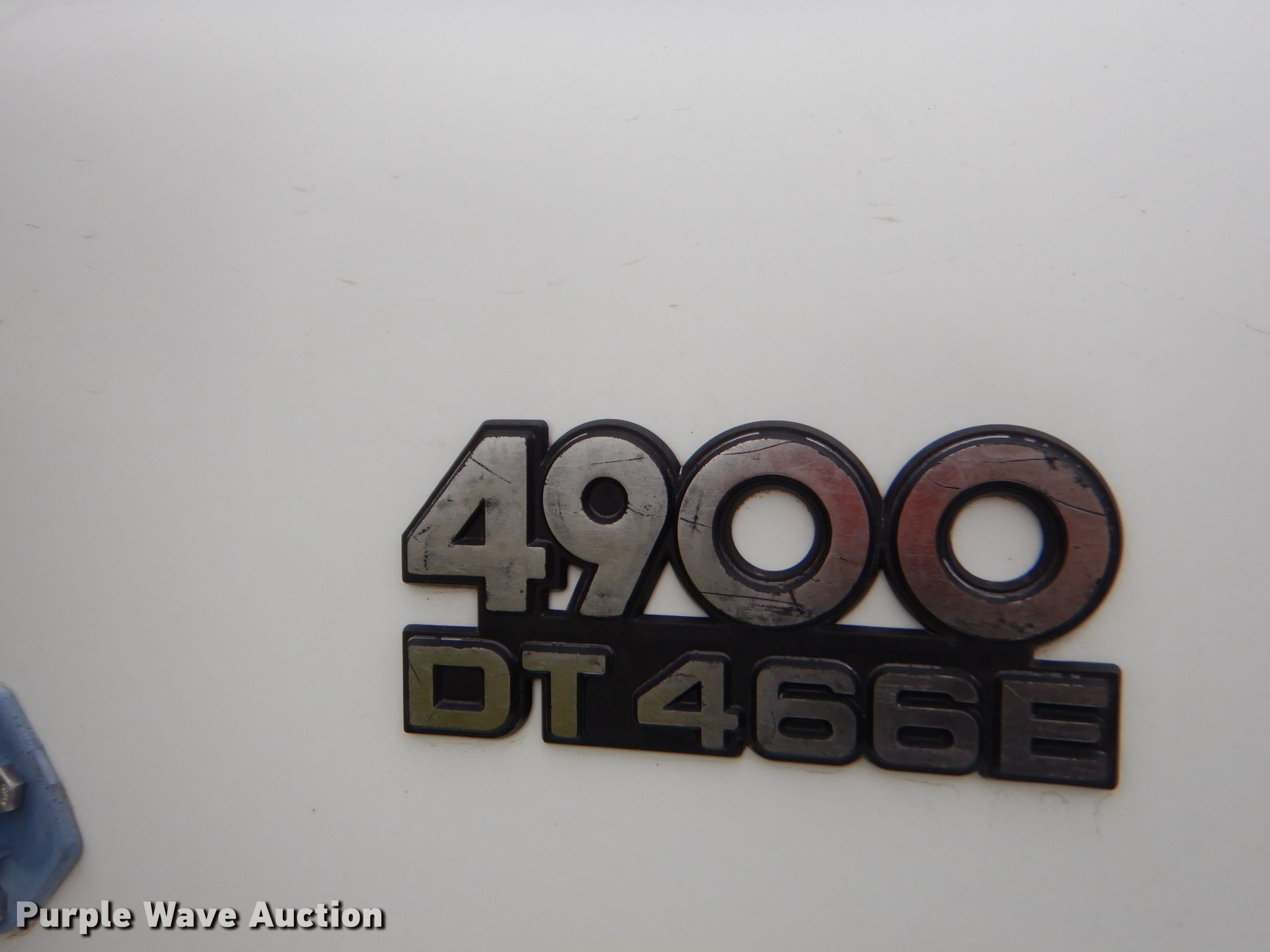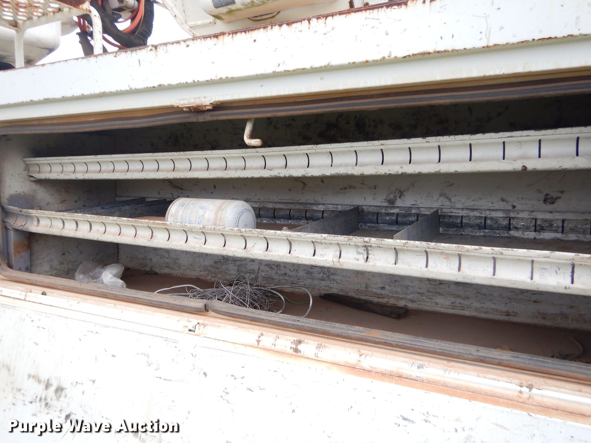 Purple Wave is selling a used Bucket Truck in Oklahoma. This item is a 2000 International 4900 bucket truck with the following: 101,054 miles on odometer, 7,108 hours on meter, International DT466E 7.6L L6 diesel engine, Allison automatic transmission, Single axle, AC and heat, PTO, Altec utility bed, 2000 Altec AM4855 insulated, telescopic boom, 700 lbs maximum lift capacity, 55' maximum lift height, Man basket, Platform and ground controls, Serial 37-62043, 188" wheelbase, Spring suspension, Air brakes, 11R22.5 tires
