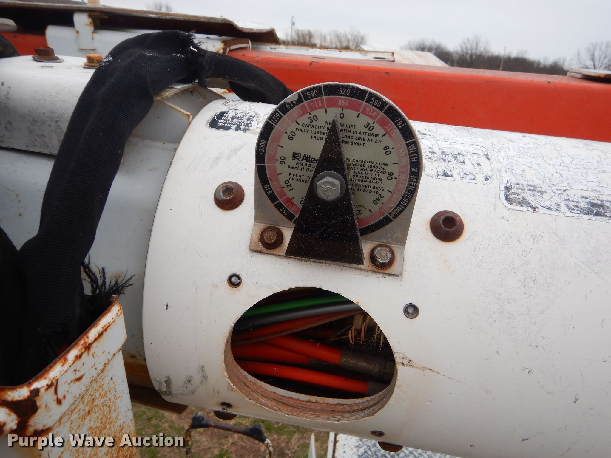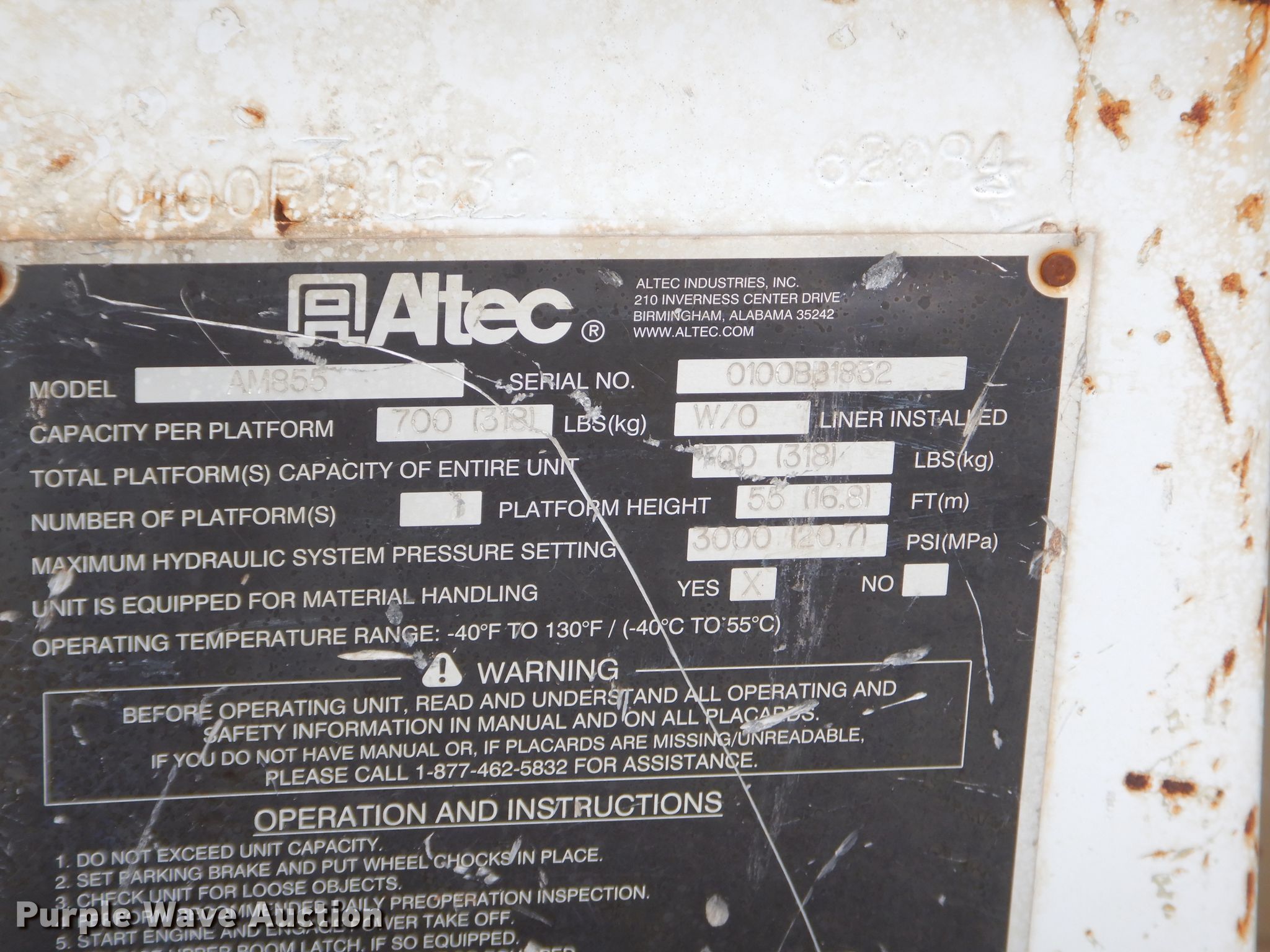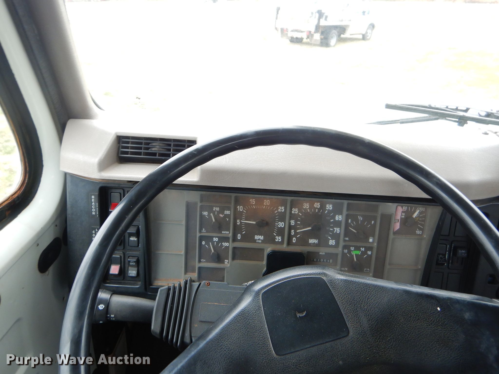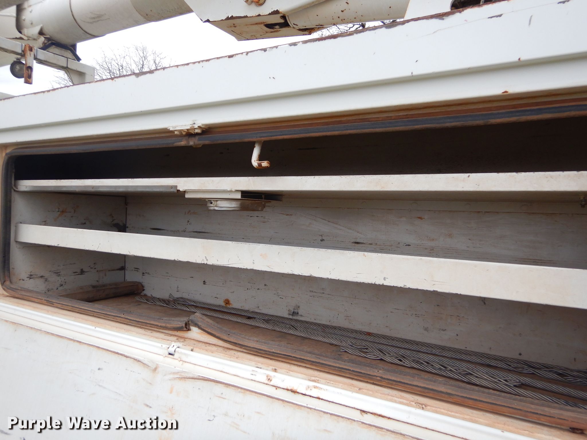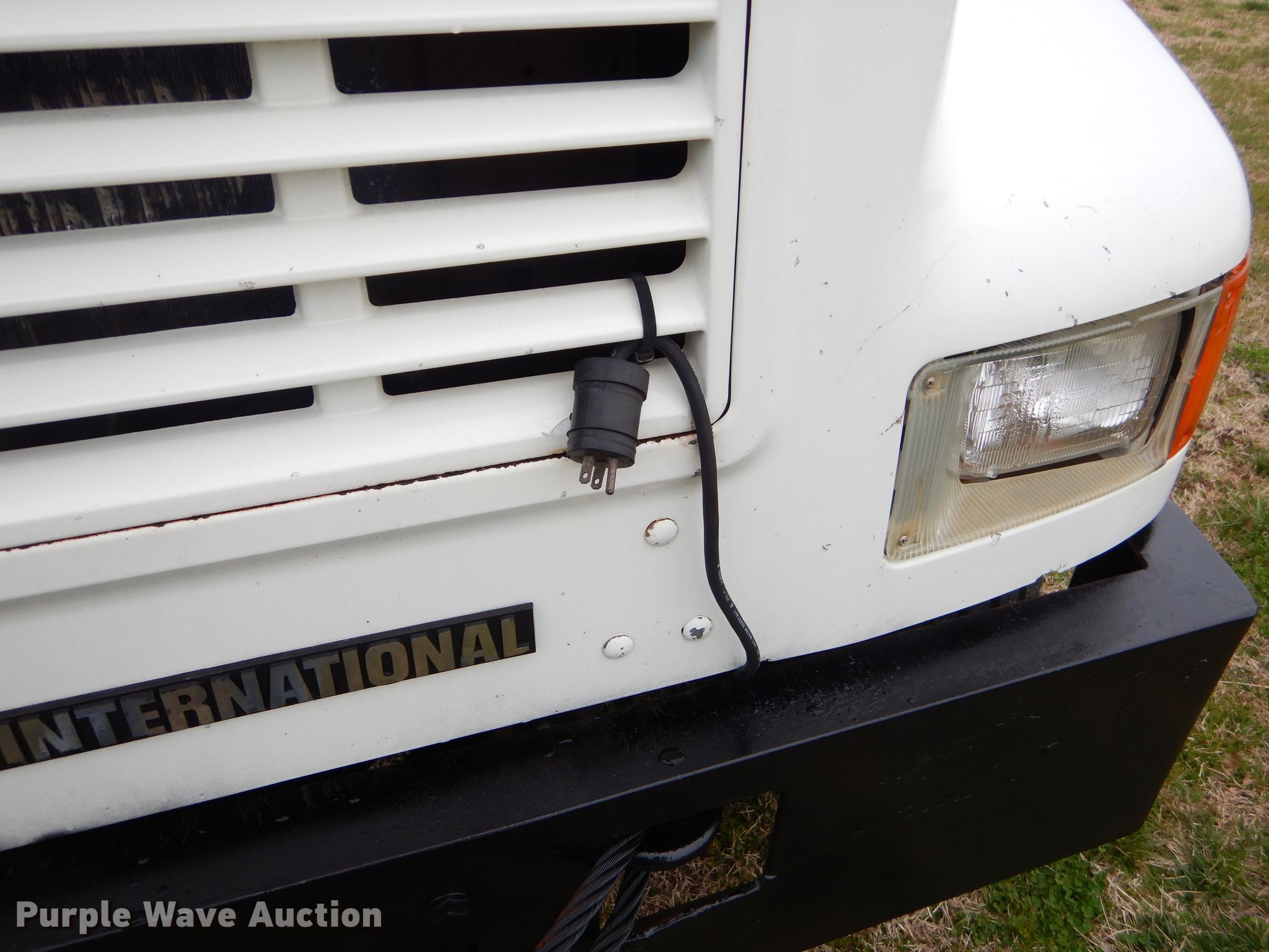 Purple Wave is selling a used Bucket Truck in Oklahoma. This item is a 2000 International 4900 bucket truck with the following: 101,054 miles on odometer, 7,108 hours on meter, International DT466E 7.6L L6 diesel engine, Allison automatic transmission, Single axle, AC and heat, PTO, Altec utility bed, 2000 Altec AM4855 insulated, telescopic boom, 700 lbs maximum lift capacity, 55' maximum lift height, Man basket, Platform and ground controls, Serial 37-62043, 188" wheelbase, Spring suspension, Air brakes, 11R22.5 tires