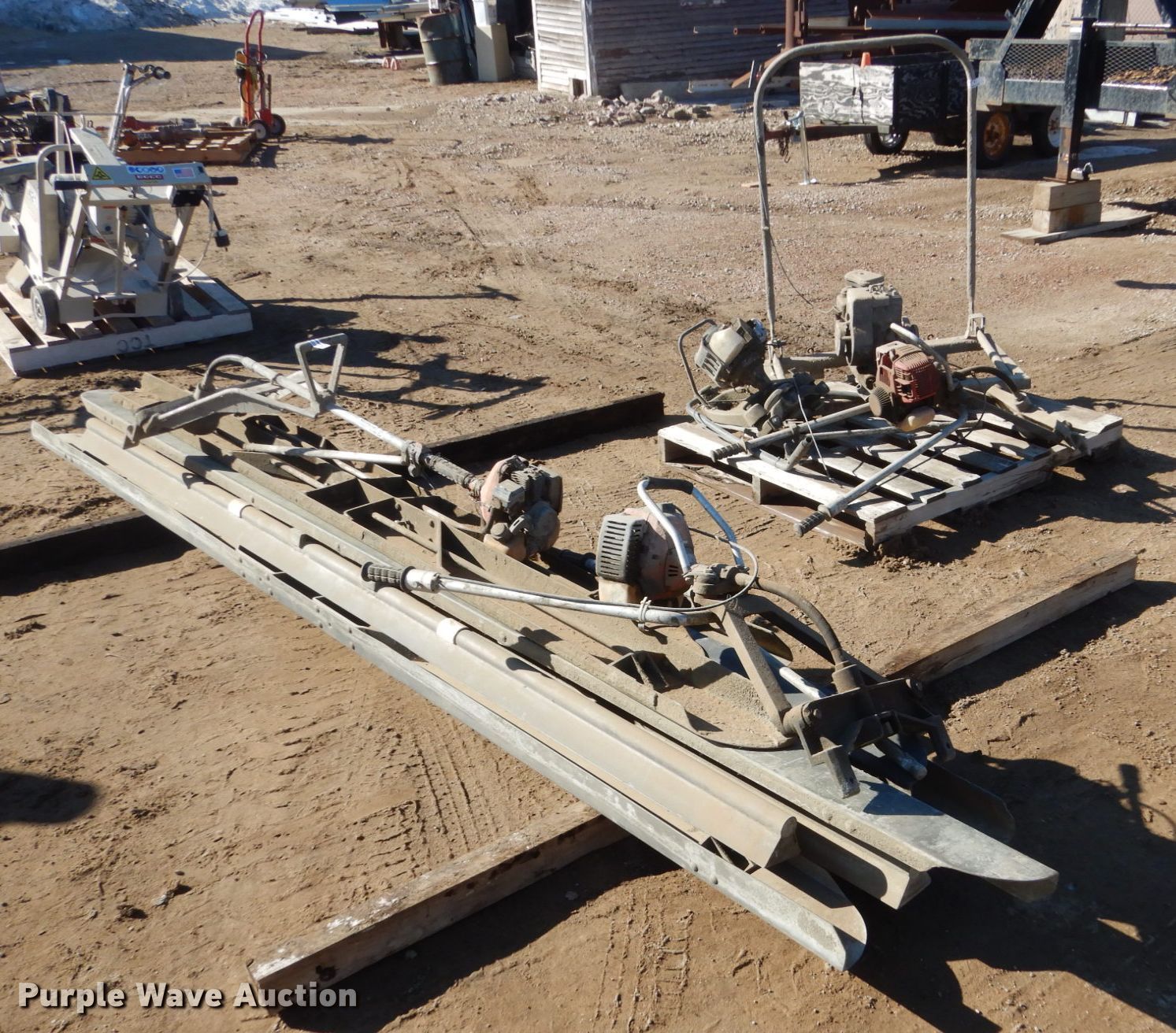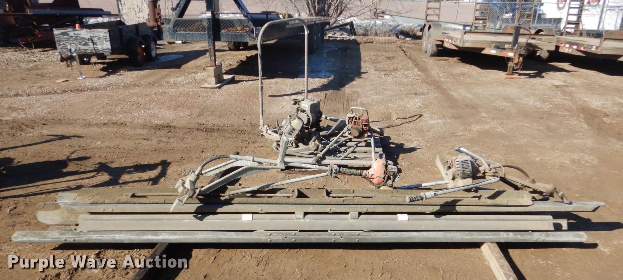 Purple Wave is selling a used Concrete Equip. or Acces. in South Dakota. This item is a Concrete screeds with the following: (4) 12', (4) 10', (5) vibratory heads, (8) aluminum screeds, Unknown operating condition