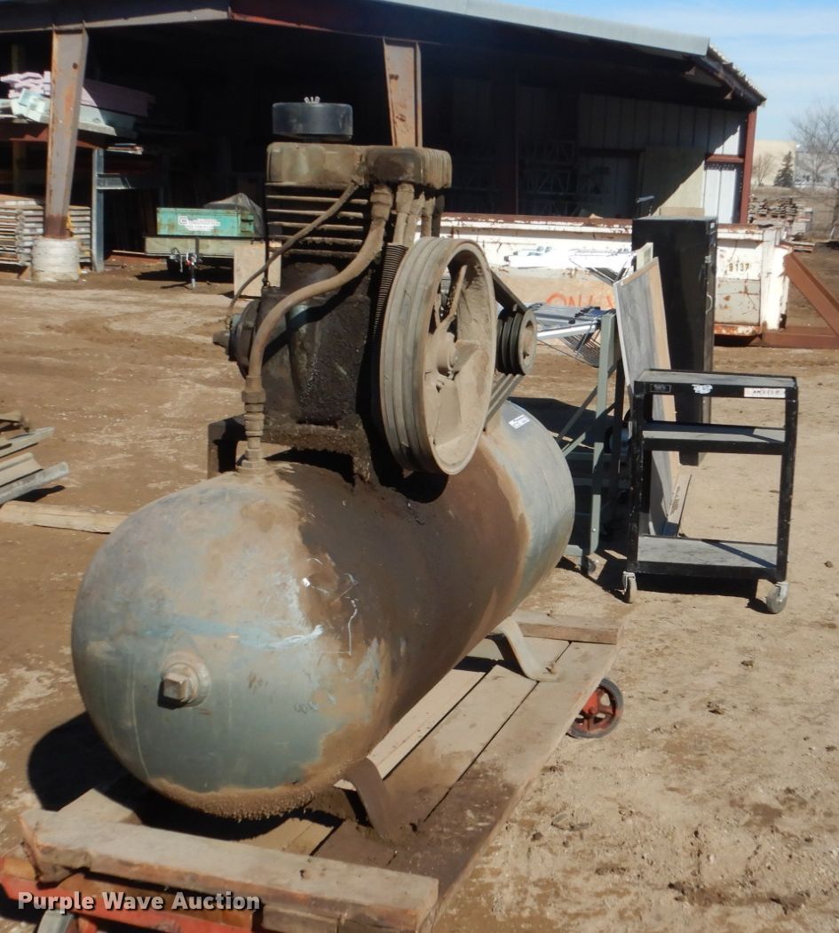 Purple Wave is selling a used Air Compressor in South Dakota. This item is a Pacemaker air compressor with the following: 5 HP electric motor, Single phase, 100 gallon tank