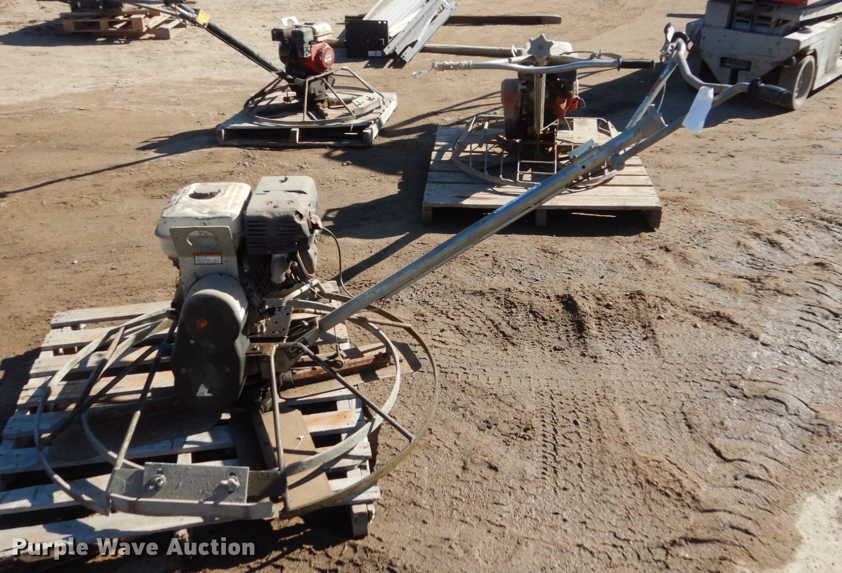 Purple Wave is selling a used Concrete Equip. or Acces. in South Dakota. This item is a (3) power trowels with the following: Honda single cylinder gas engine, 18" blades, Honda GX240 single cylinder gas engine, 14" blades, Honda GX160 single cylinder gas engine, 14" blades, Unknown operating condition
