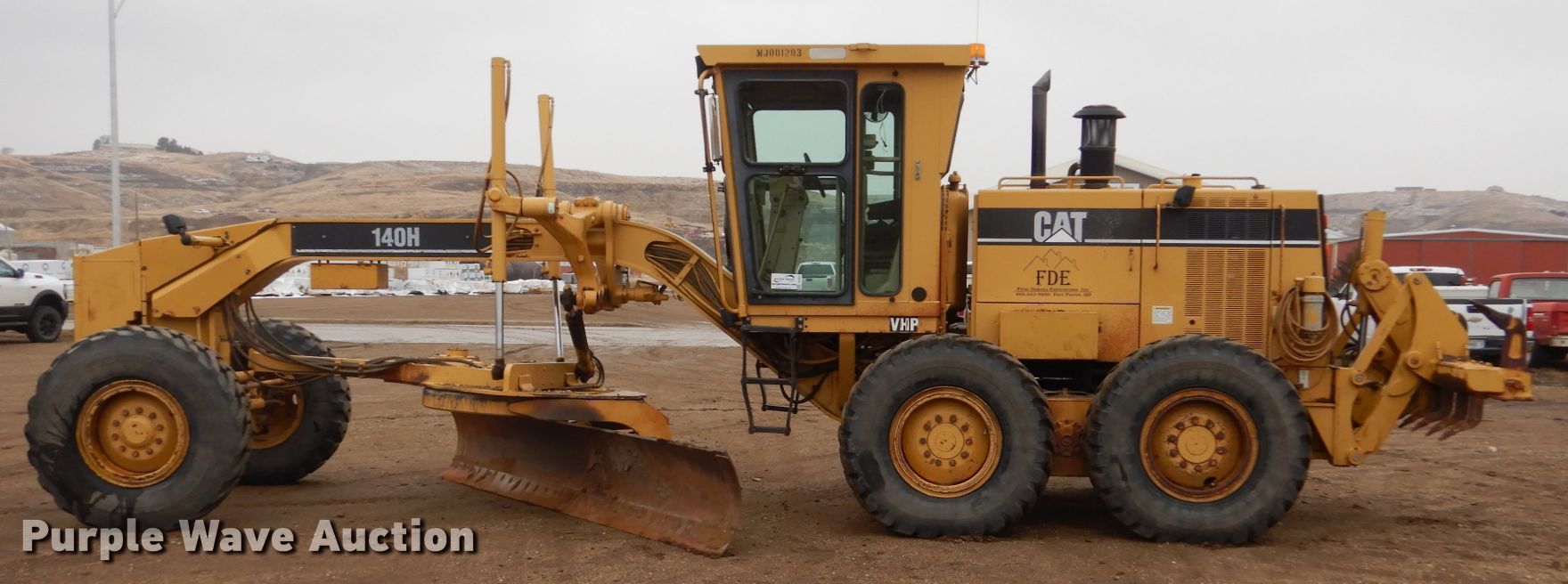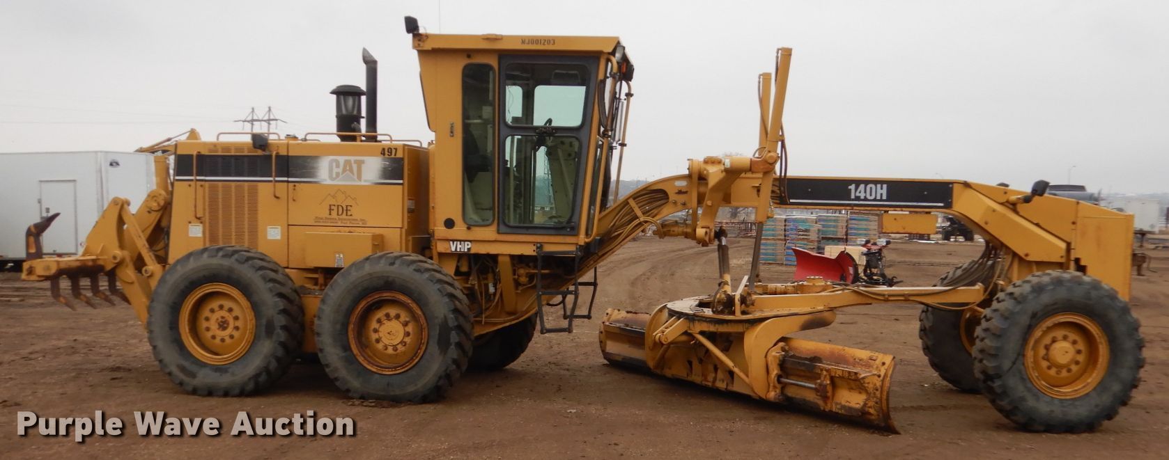 Purple Wave is selling a used Motor Grader in South Dakota. This item is a 2000 Caterpillar 140H motor grader with the following: 9,937 hours on meter, Caterpillar six cylinder diesel engine, Powershift transmission, 8F-6R gears, Differential lock, Enclosed cab, AC and heat, 14'W moldboard, Blade accumulators, Tip control, Side shift, Circle slip clutch, Front mounted push block, Rear ripper, (3) ripper shanks, (9) scarifier teeth, 14.00R24 tires, Serial 2ZK04953