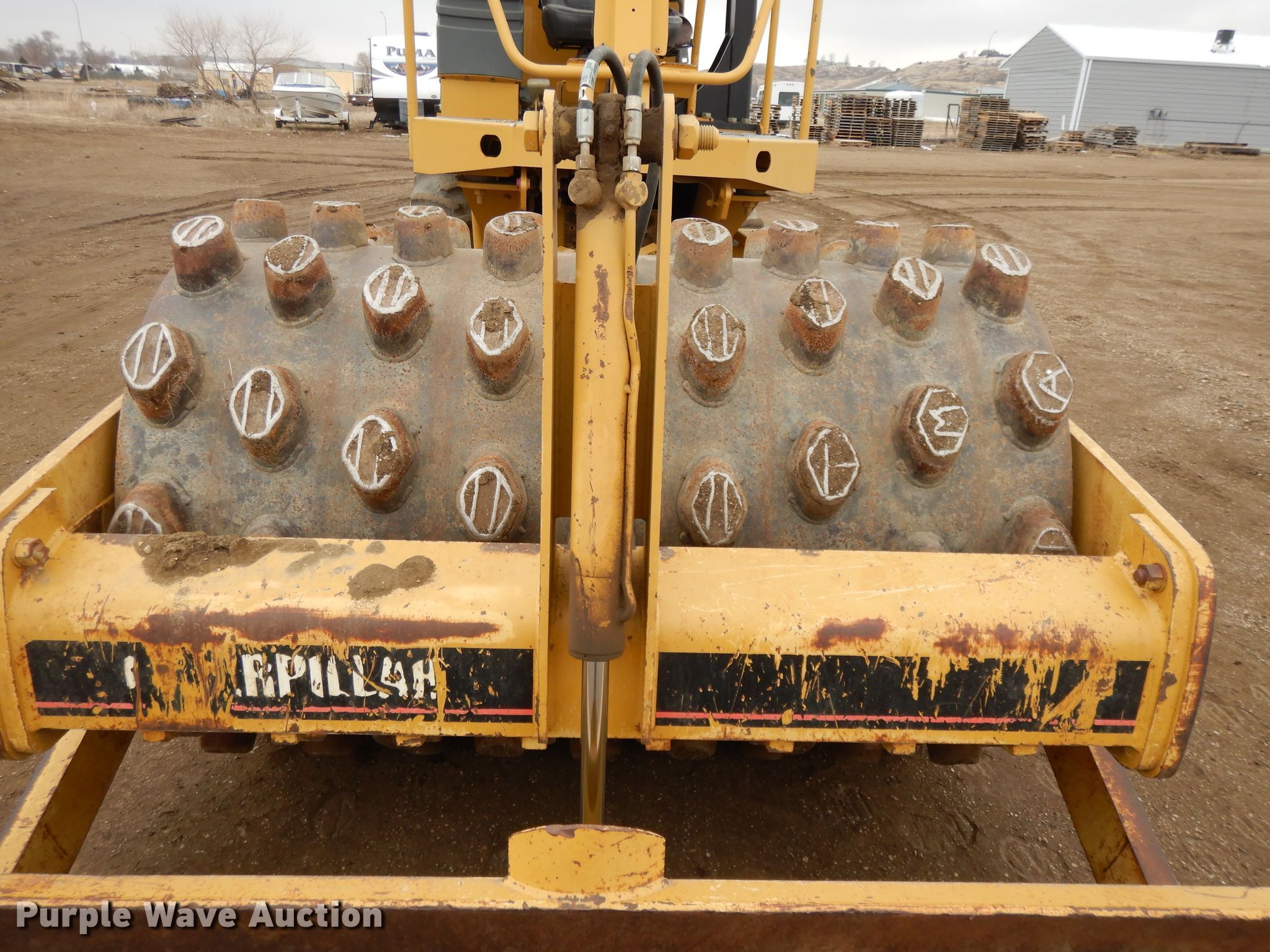 Purple Wave is selling a used Single Drum Roller Compactor in South Dakota. This item is a 2006 Caterpillar CP-433E single drum vibratory compactor with the following: 3,249 hours on meter, Caterpillar 4.4L four cylinder diesel engine, 74.5 kW, Hydrostatic transmission, OROPS, 66"W x 42" diameter padfoot drum, Front and rear drum scrapers, Single two speed vibratory system, 83"W front blade, 14.9-24 tires, Unknown operating condition of vibratory system, Serial CATCP433LASN00517, Unit# 485