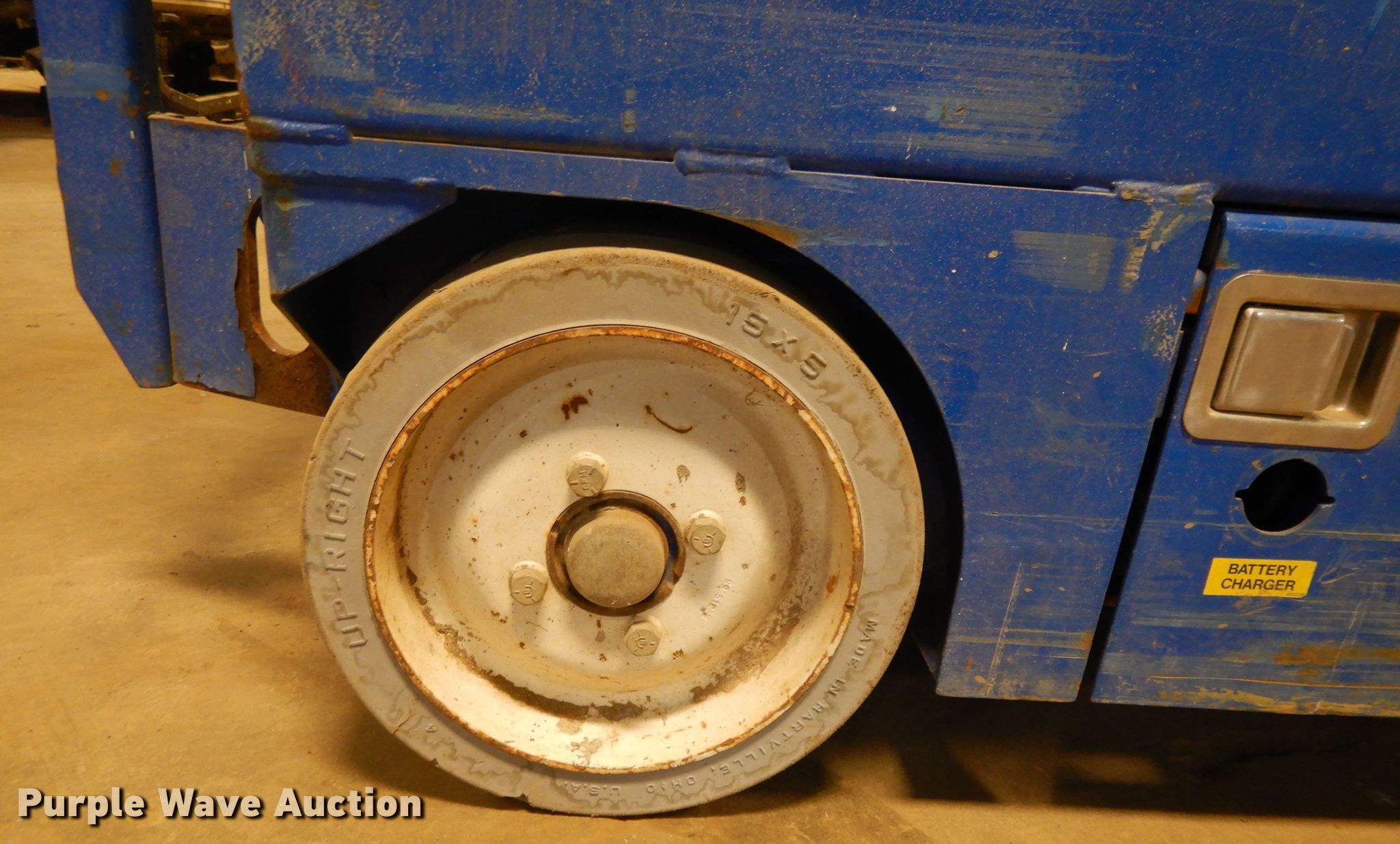 Purple Wave is selling a used Scissor or Vertical Lift in South Dakota. This item is a Up Right X20N scissor lift with the following: 216 hours on meter, Electric operation, 20' maximum lift height, 90"L x 32"W platform, Manual platform extensions, Remote control, 15 x 5 solid tires, Unit# 413
